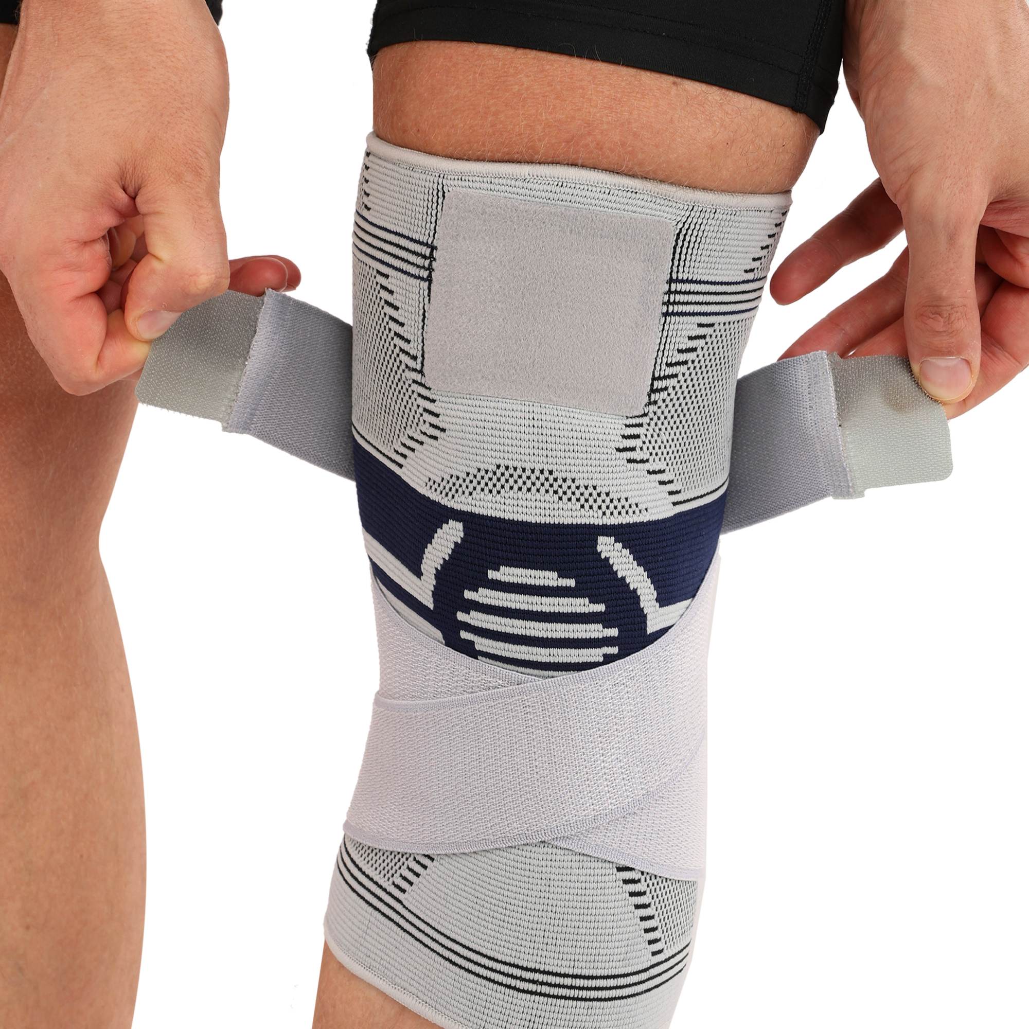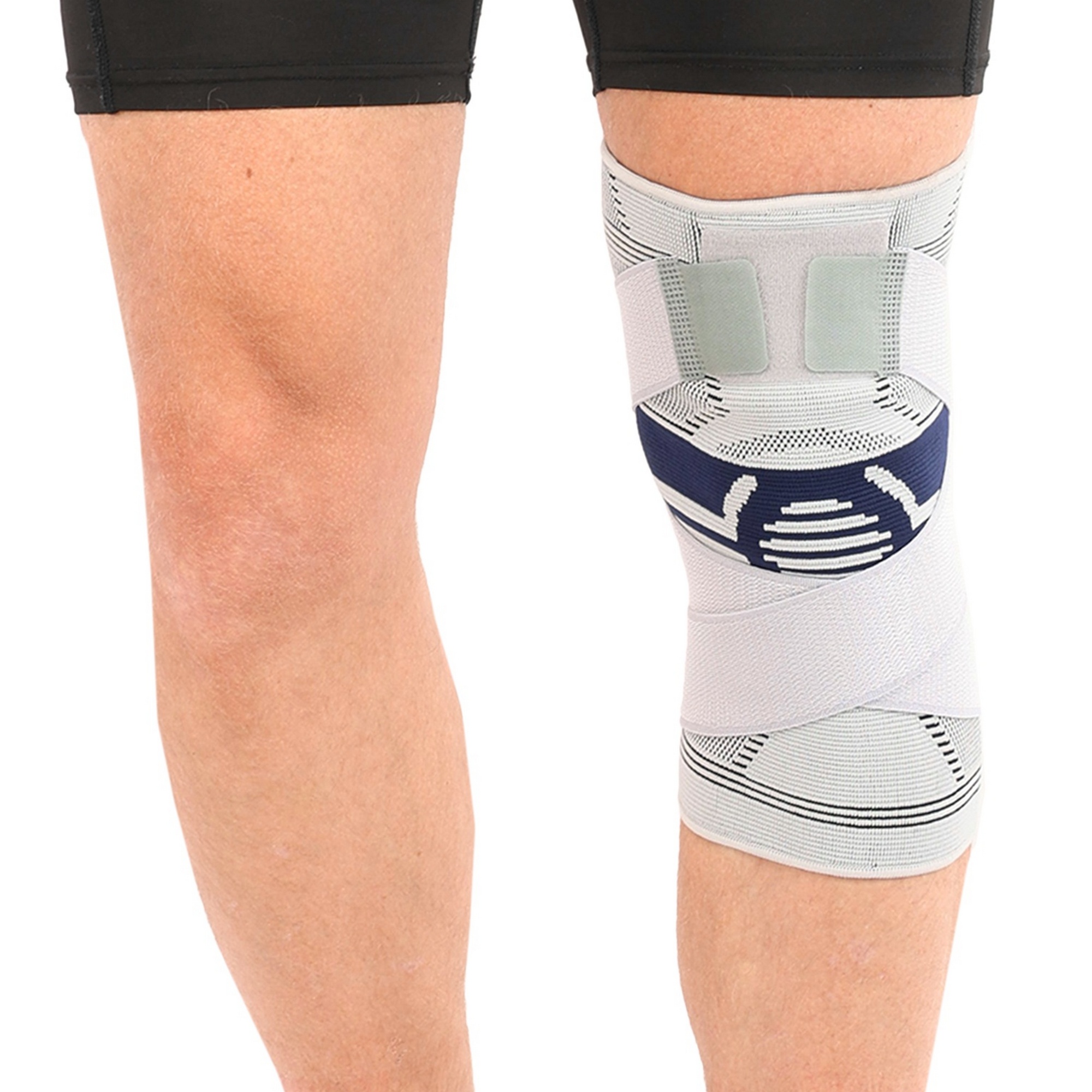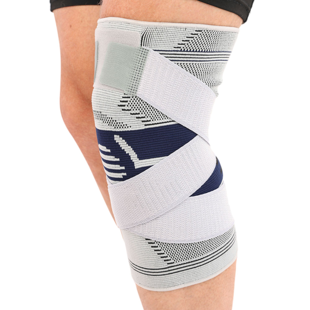 Наколенник спортивный эластичный компрессионный с фиксирующим ремнем STOLL LL-1012 S-L 1шт серый Код LL-1012