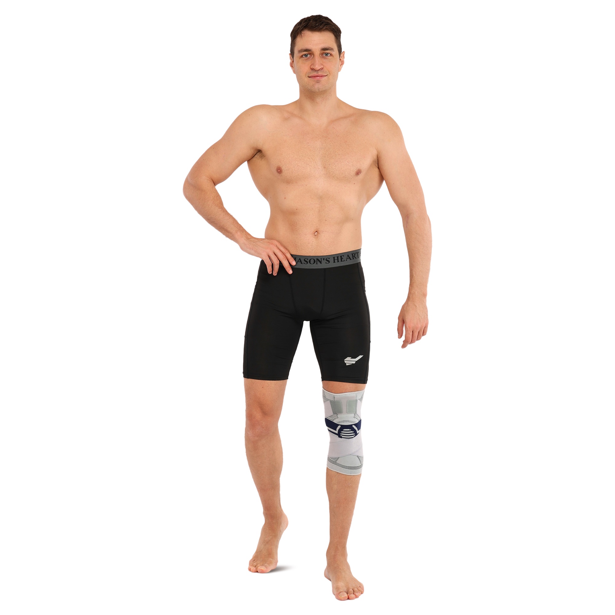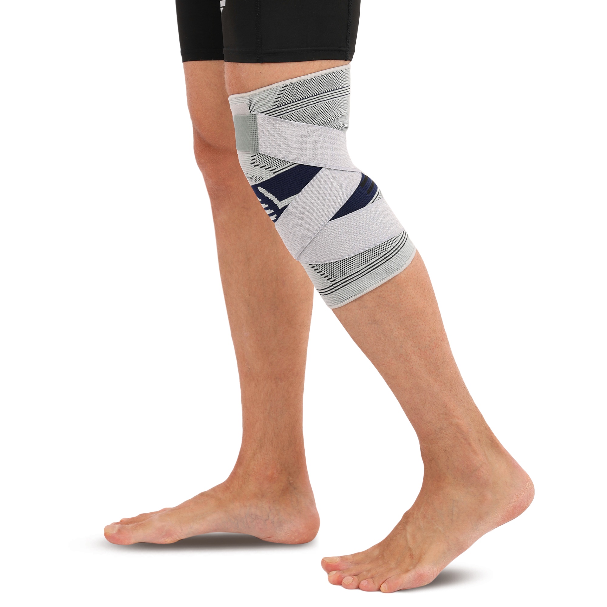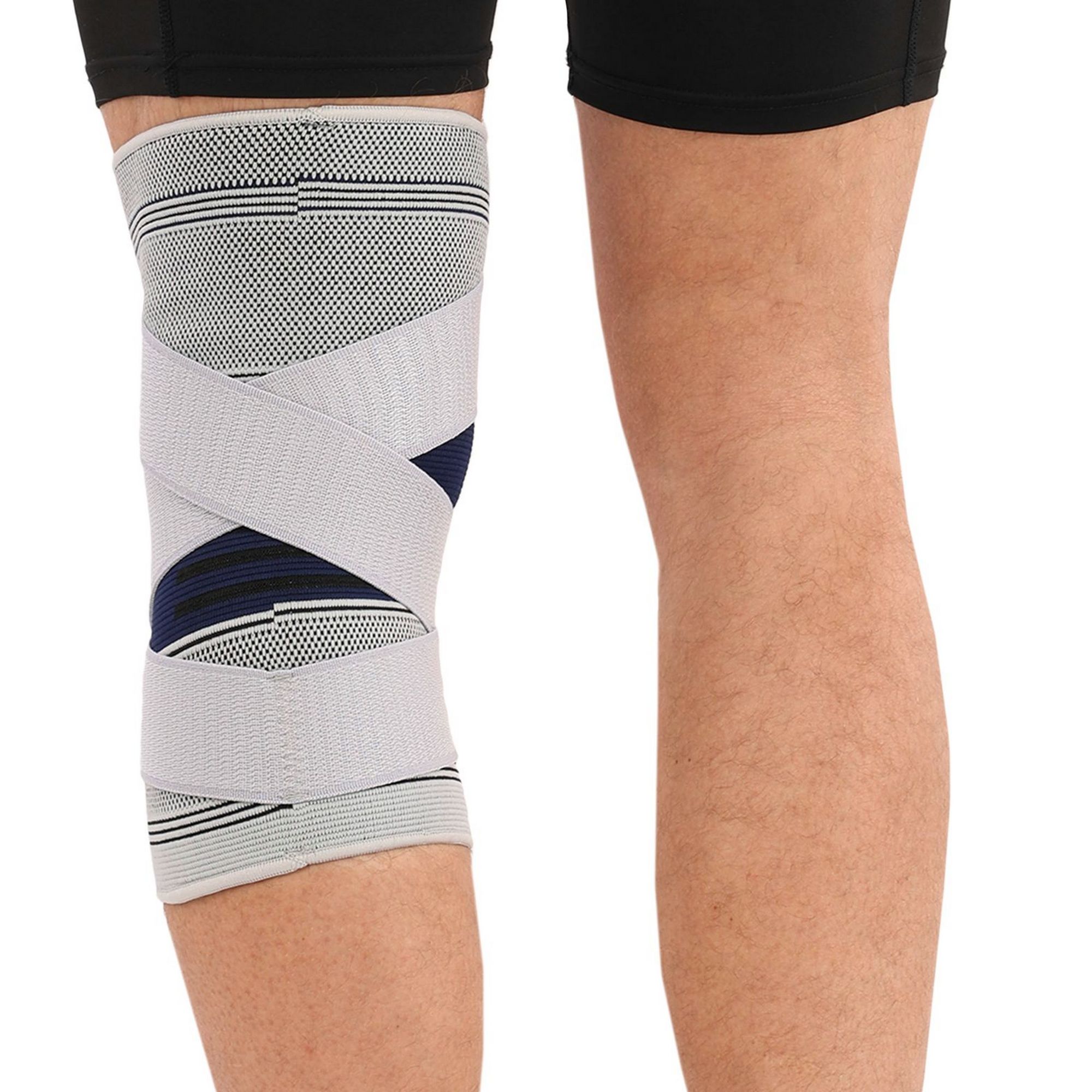 Наколенник спортивный эластичный компрессионный с фиксирующим ремнем STOLL LL-1012 S-L 1шт серый Код LL-1012