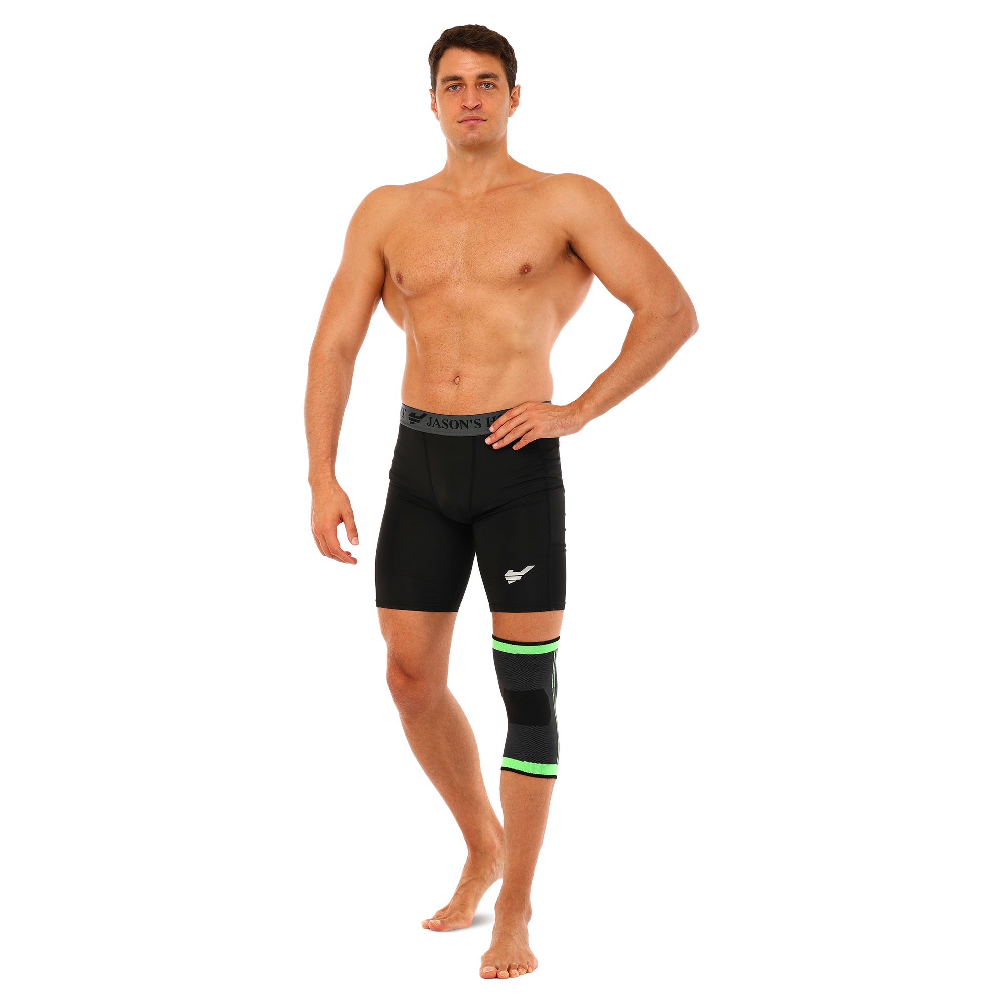 Наколенник бандаж эластичный SP-Sport ST-2501 S-XL 1шт серый-салатовый Код ST-2501