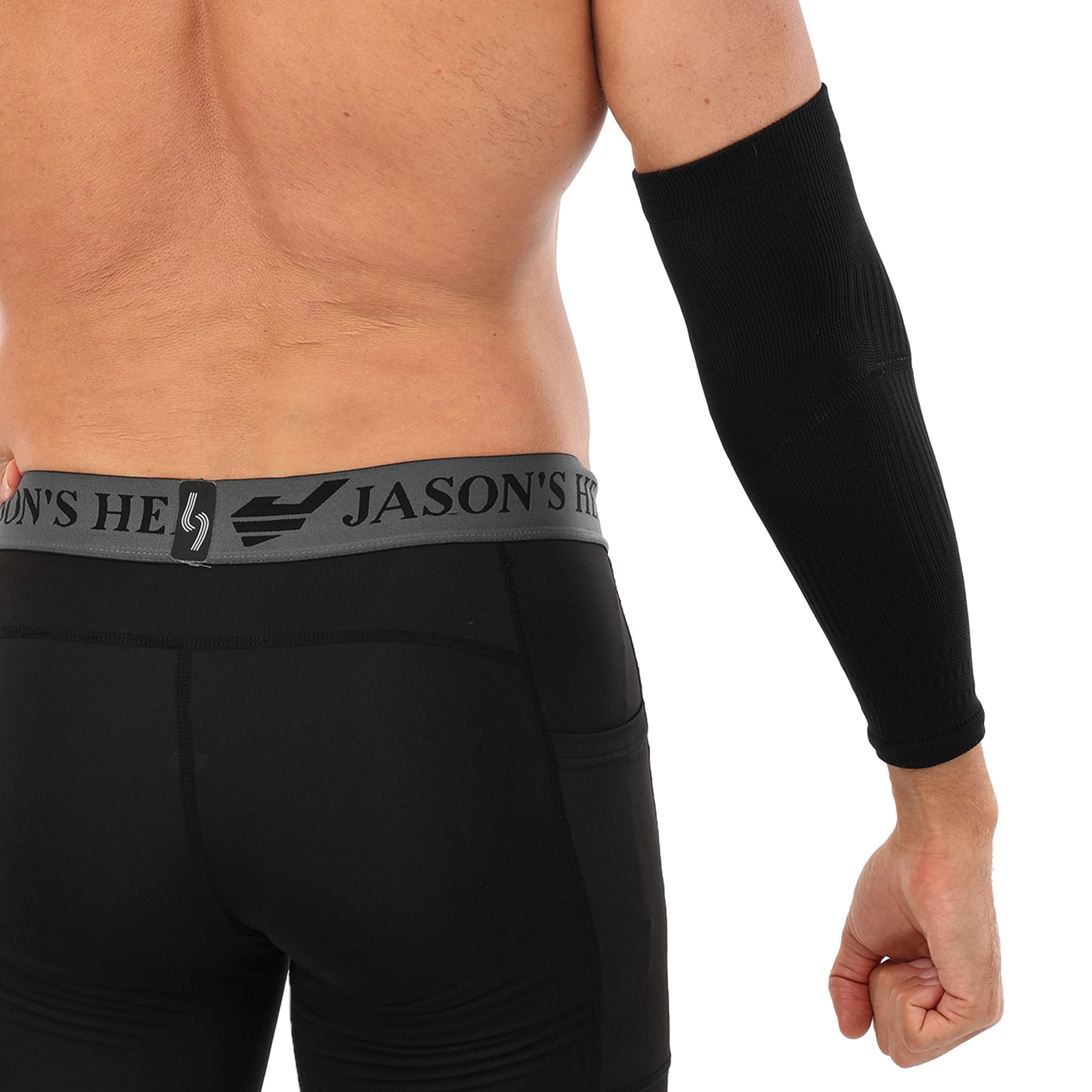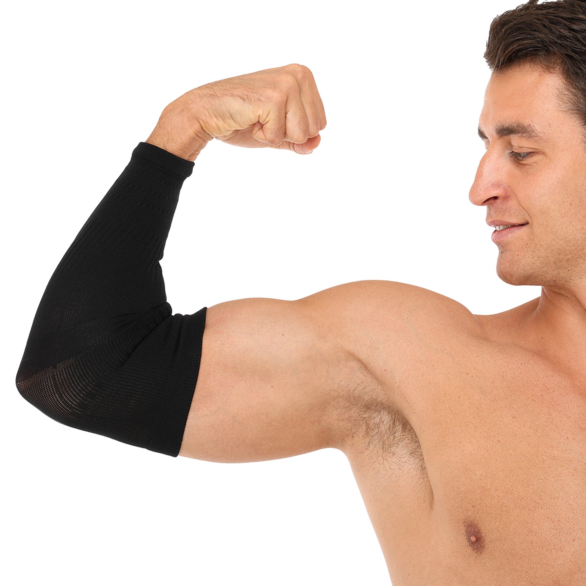 Благодаря компрессионному воздействию на мышцы и ткани руки, аксессуар улучшает кровообращение и доставку кислорода к мышцам. Это способствует более быстрому восстановлению после тренировки, уменьшает микротравмы и мышечную боль. Помимо того рукав помогает стабилизировать положение локтевого сустава и защищает кожу от мелких травм и раздражений. Изделие подойдет для езды на велосипеде, игры в баскетбол, волейбол, теннис и другой спортивной активности.