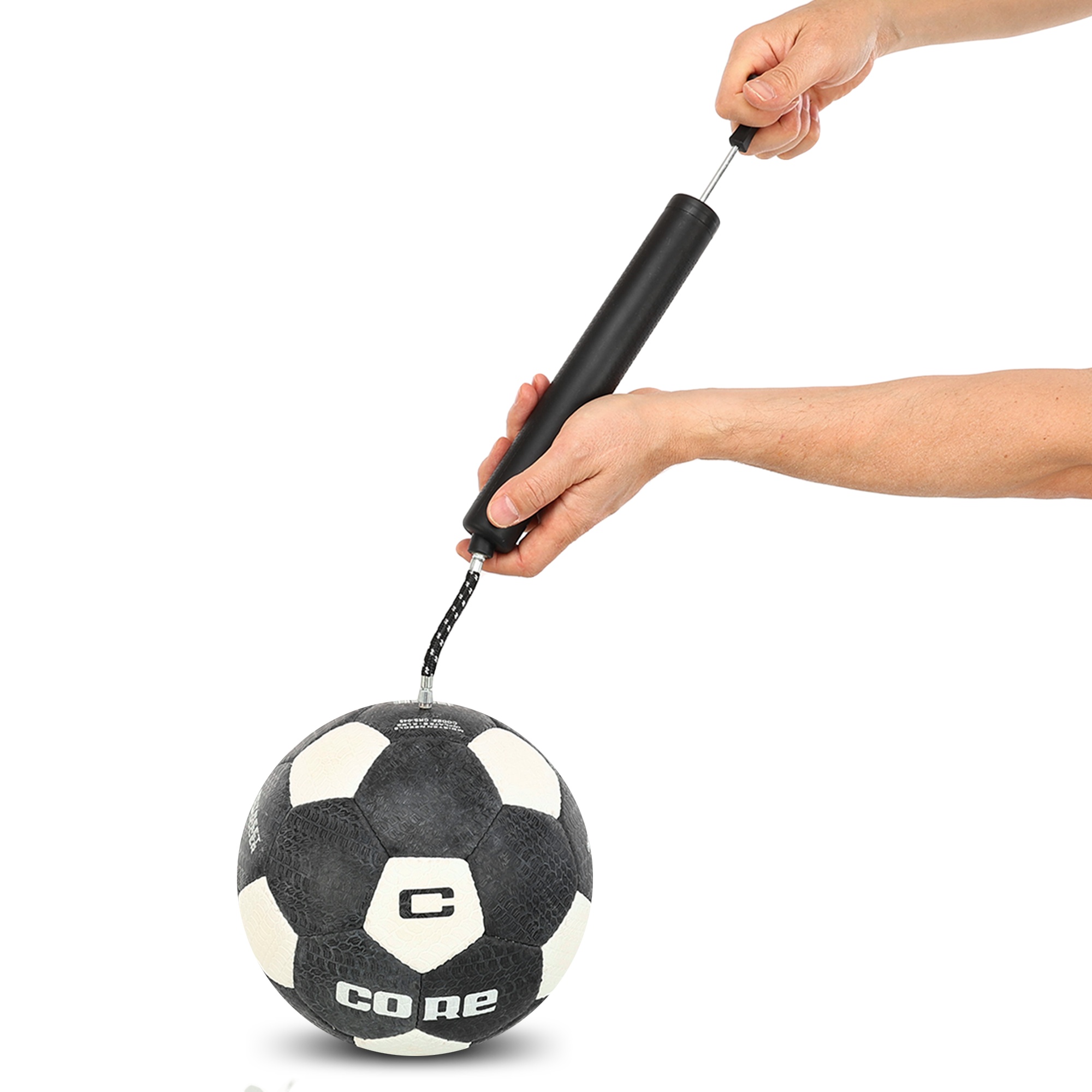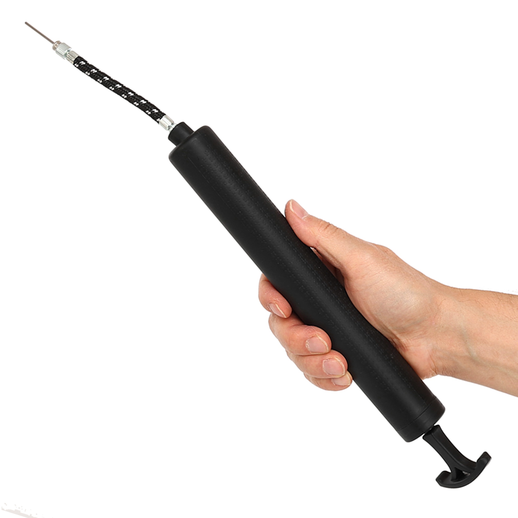 Насос предназначен для накачивания любых мячей — волейбольных, футбольных, баскетбольных и других. Чтобы накачать мяч, не требуется упирать насос в землю или использовать соединительную трубку. Конструкция максимально компактная и лёгкая. Чтобы накачать надувное изделие понадобиться специальный переходник.
