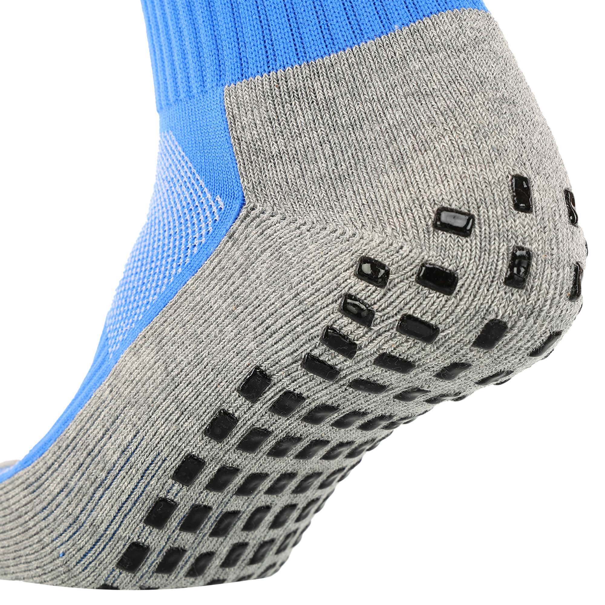 Мужские противоскользящие носки обеспечивают комфорт во время занятий спортом, в том числе футболом, и гарантируют оптимальное сцепление с обувью, что позволяет выполнять различные манёвры, рывки с места и тренироваться с максимальной отдачей. Высокие футбольные носки обеспечивают компрессионный эффект и способствуют оттоку венозной крови от ног. Это позволяет бороться с отёчностью и усталостью ног после тренировок. Носки имеют продуманный дизайн и изготовлены из синтетической эластичной ткани с добавлением хлопка. Резинка надёжно фиксирует их на месте. На носках имеются противоскользящие силиконовые подушки, именно благодаря им обеспечивается идеальное сцепление с обувью.