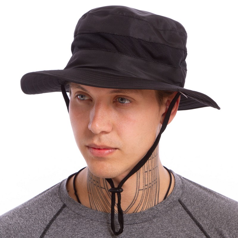 Внешне панама похожа на шляпу с широкими мягкими полями и тульей средней высоты. Для её изготовления используют высококачественный полиэстер – прочную, устойчивую к износу ткань, которая хорошо стирается и быстро сохнет. Чтобы панама надёжно держалась на голове и не потерялась, например, во время бега, предусмотрена специальная подбородочная тесёмка с фиксирующей застёжкой. В тулье панамы имеется вставка из сетчатого материала, что обеспечивает голове пользователя хорошую вентиляцию, что немаловажно во время жары.Преимущества:
