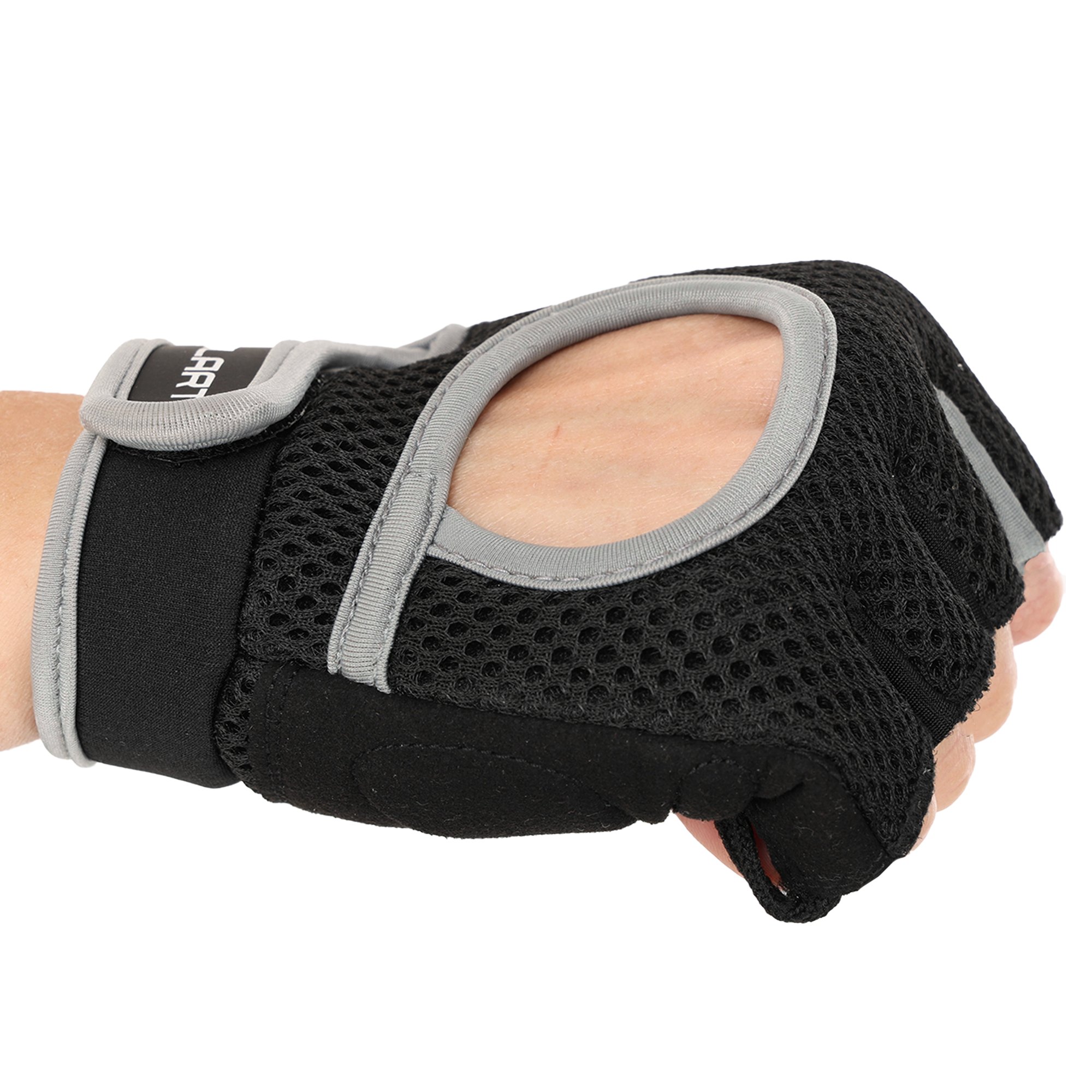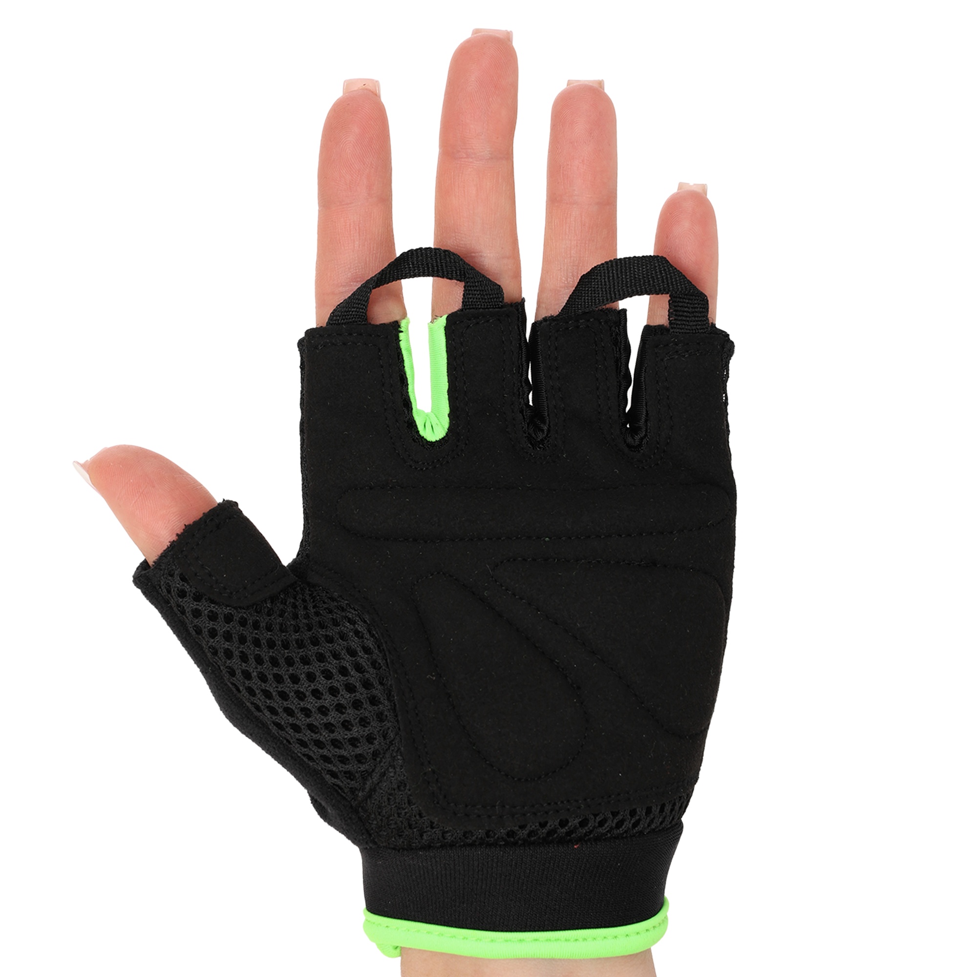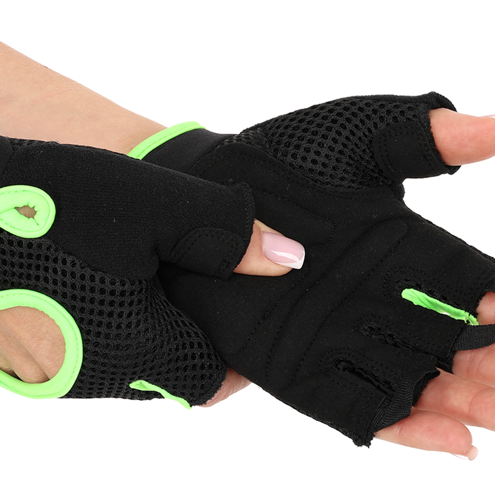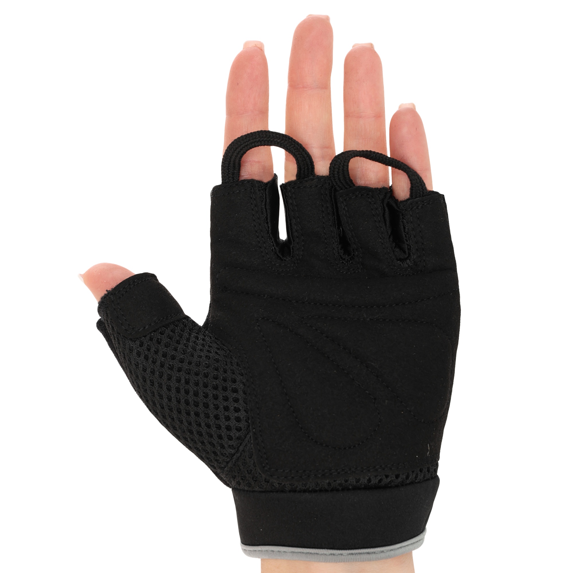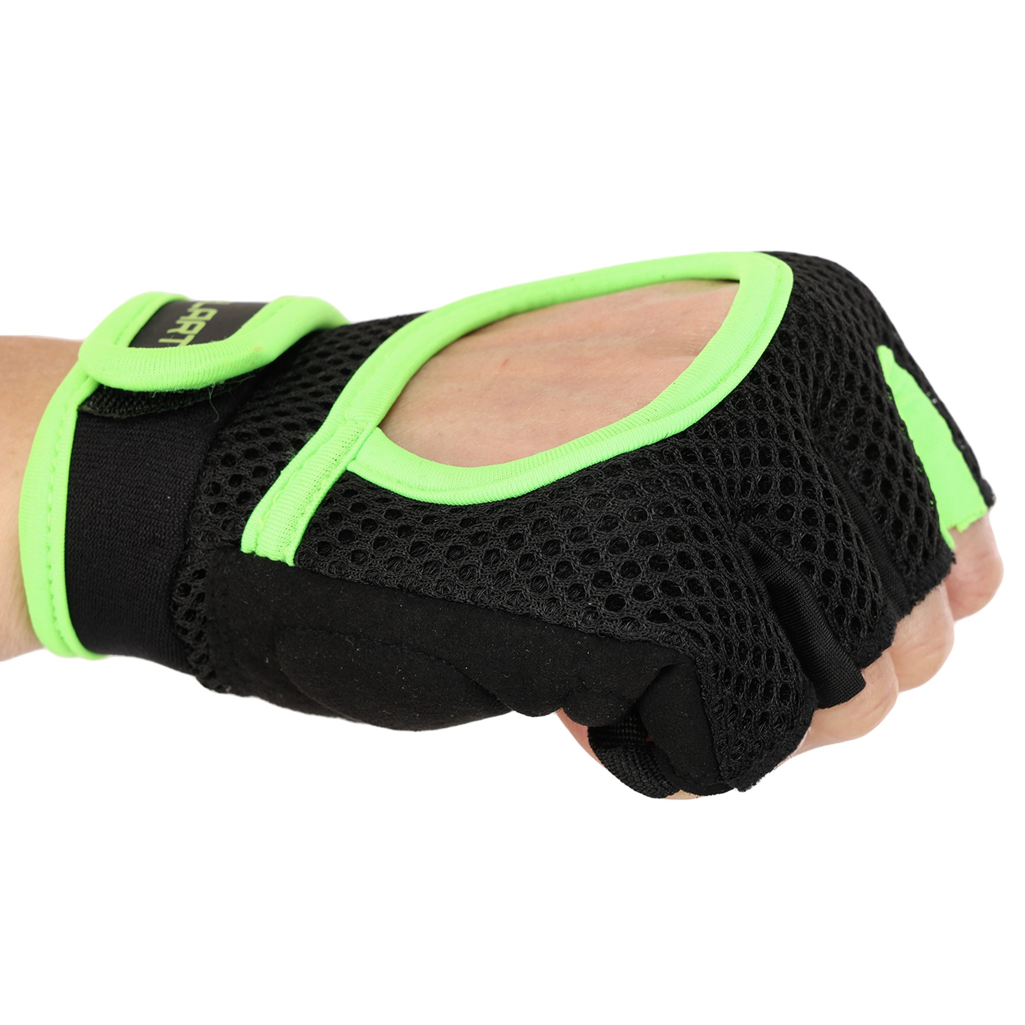 Благодаря использованию перчаток для фитнеса и тренировок вы сможете защитить ладони от натирания, появления ран и сухости кожи. Перчатки имеют открытые пальцы, что делает их удобными для захвата инвентаря, позволяет делать замок пальцами, а также способствует дополнительному охлаждению рук. Производитель позаботился о доступе свежего воздуха к рукам: тыльная сторона перчатки выполнена из воздухопроницаемого материала. Петли на пальцах позволяют быстро снять перчатки при необходимости. Надёжную фиксацию на запястье обеспечивает липучка.