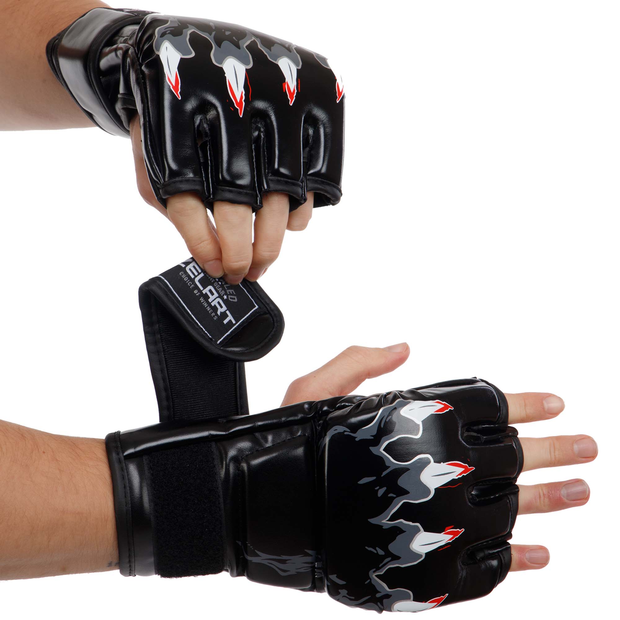 Перчатки для смешанных единоборств с «обрезанными» пальцами еще называют шингартами. Их основное назначение – защищать руки во время работы по мешкам и лапам. Однако нередко спортсмены их надевают и для спаррингов по боям без правил или боевому самбо. В этом случае они надежно берегут руки самого бойца, при этом совершенно «не беспокоясь» о внешности противника. Если он вовремя не увернется, то вполне может получить ушибы, рассечения и даже перелом носа.Описание