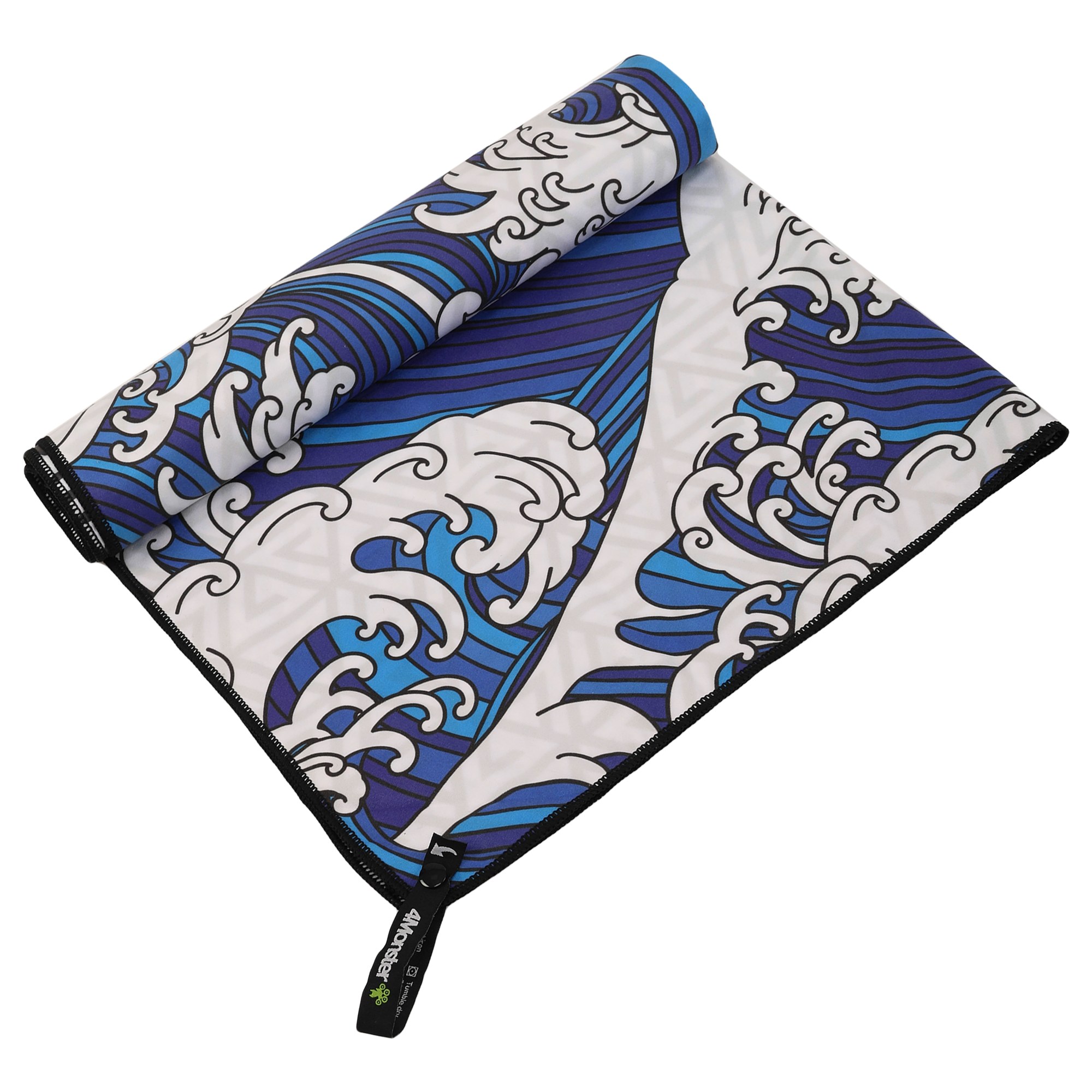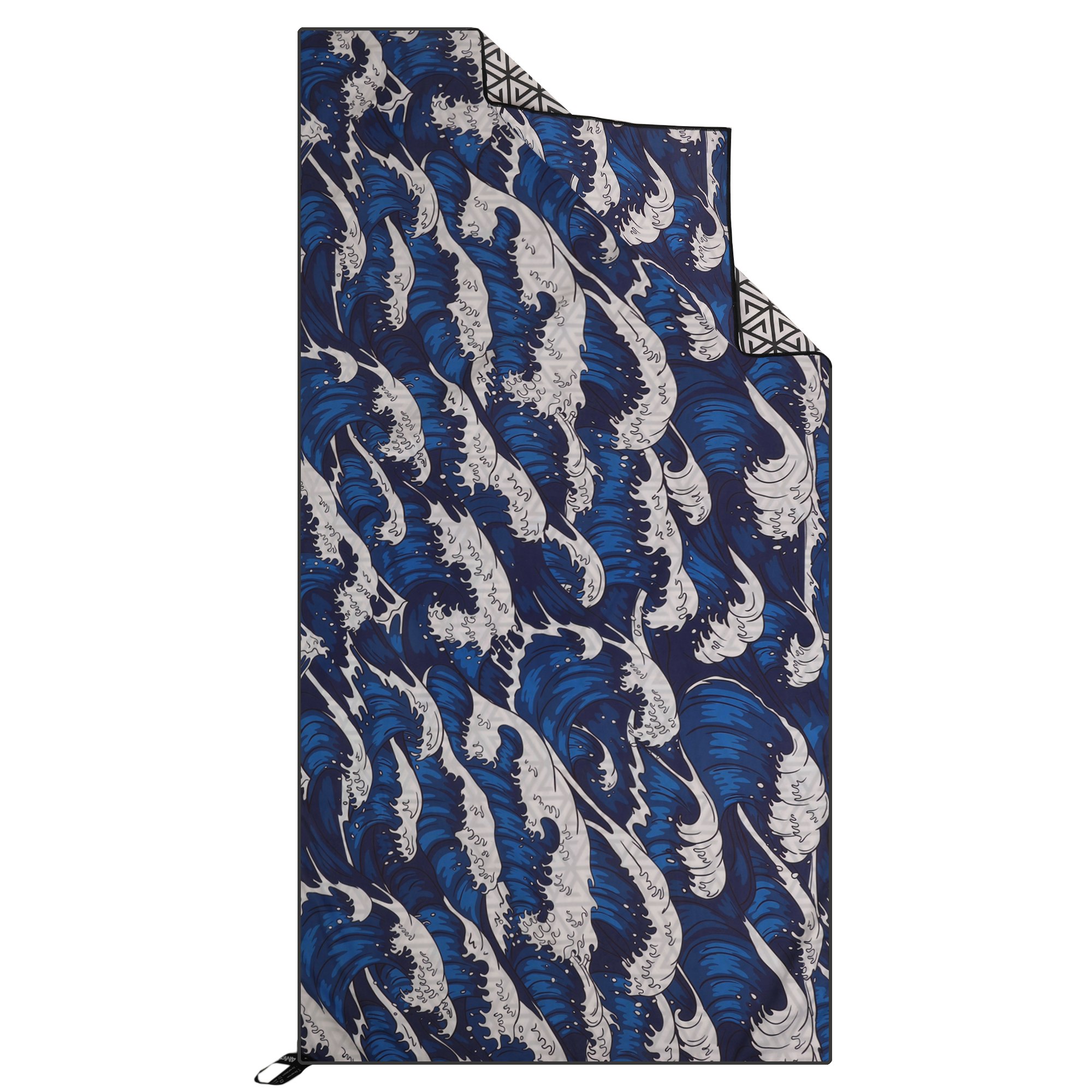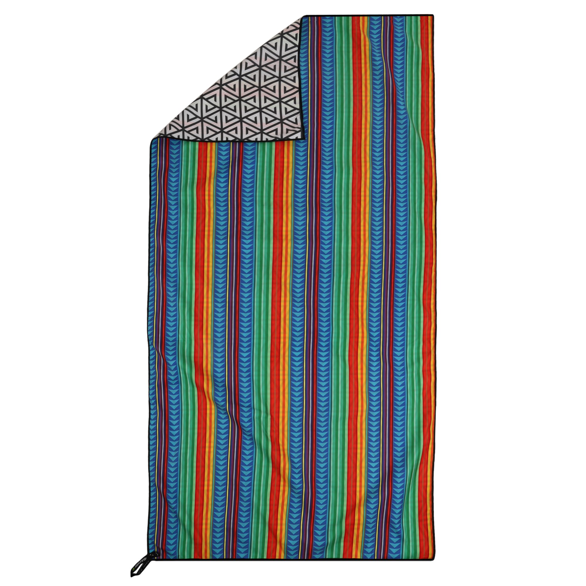 Полотенце имеет размер 160×80 см. При этом в сложенном виде размеры полотенца куда меньше и составляют 22,5×8 см. Это позволяет легко собрать его в небольшой чехол на стяжках и поместить в любую пляжную сумку. Изготовленное из микрофибры полотенце быстро высыхает после намокания, не впитывает неприятный запах и остаётся мягким на ощупь даже после длительного использования.