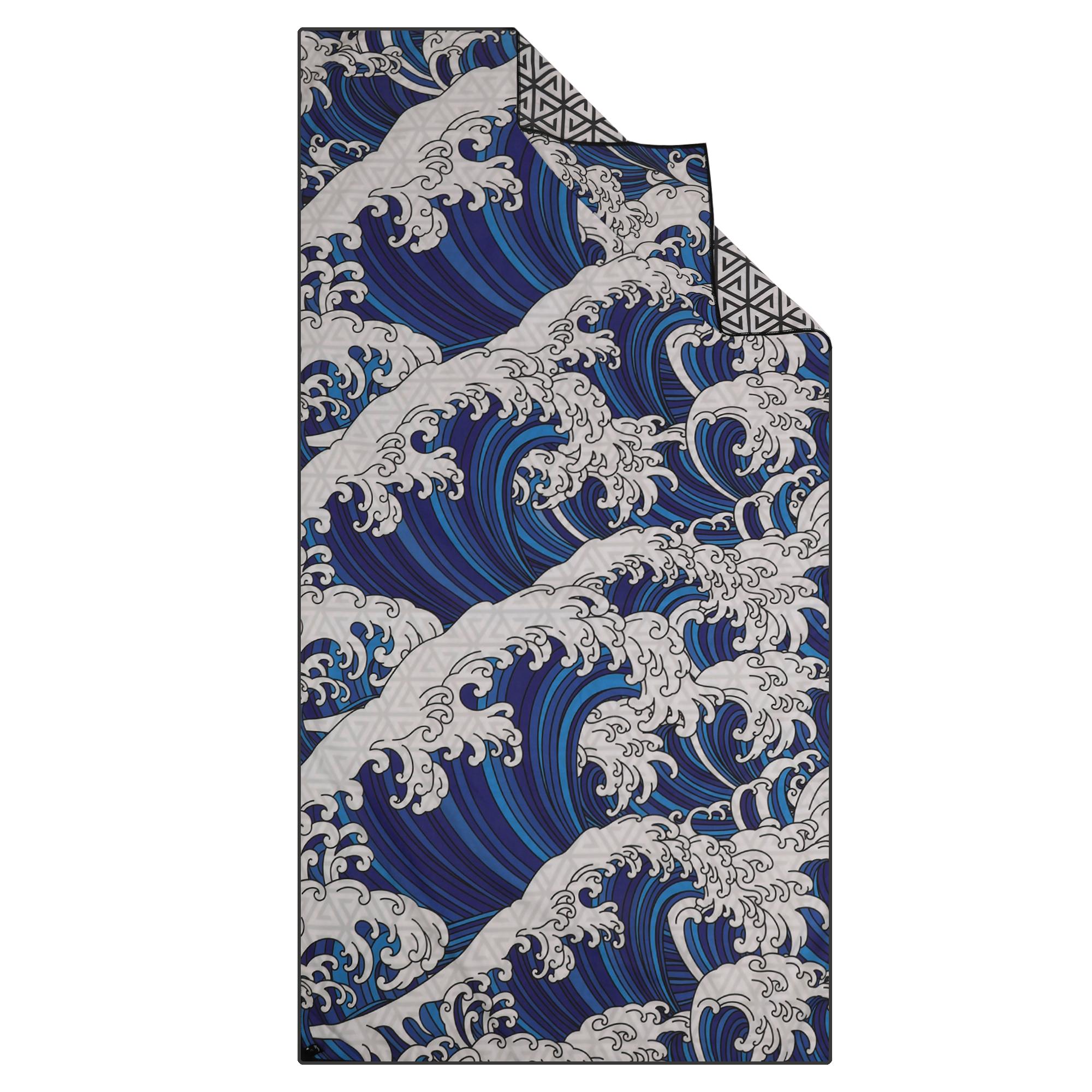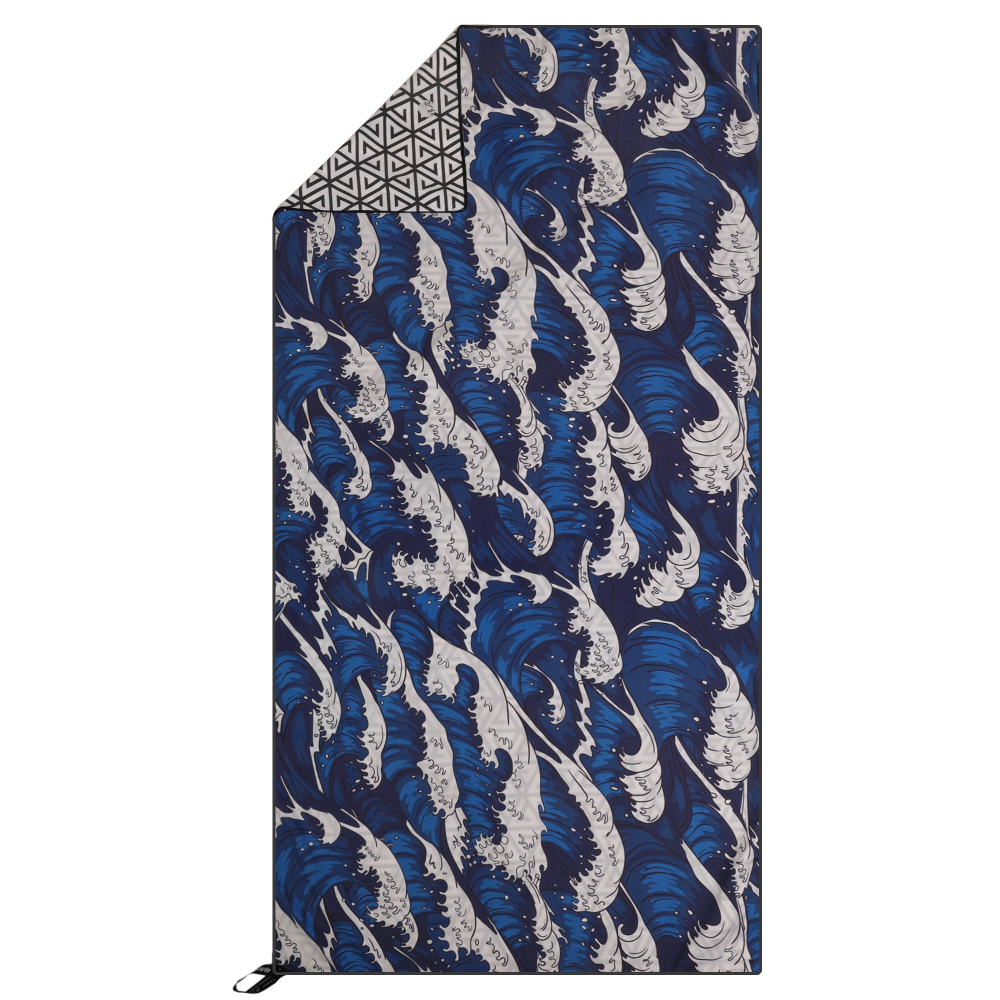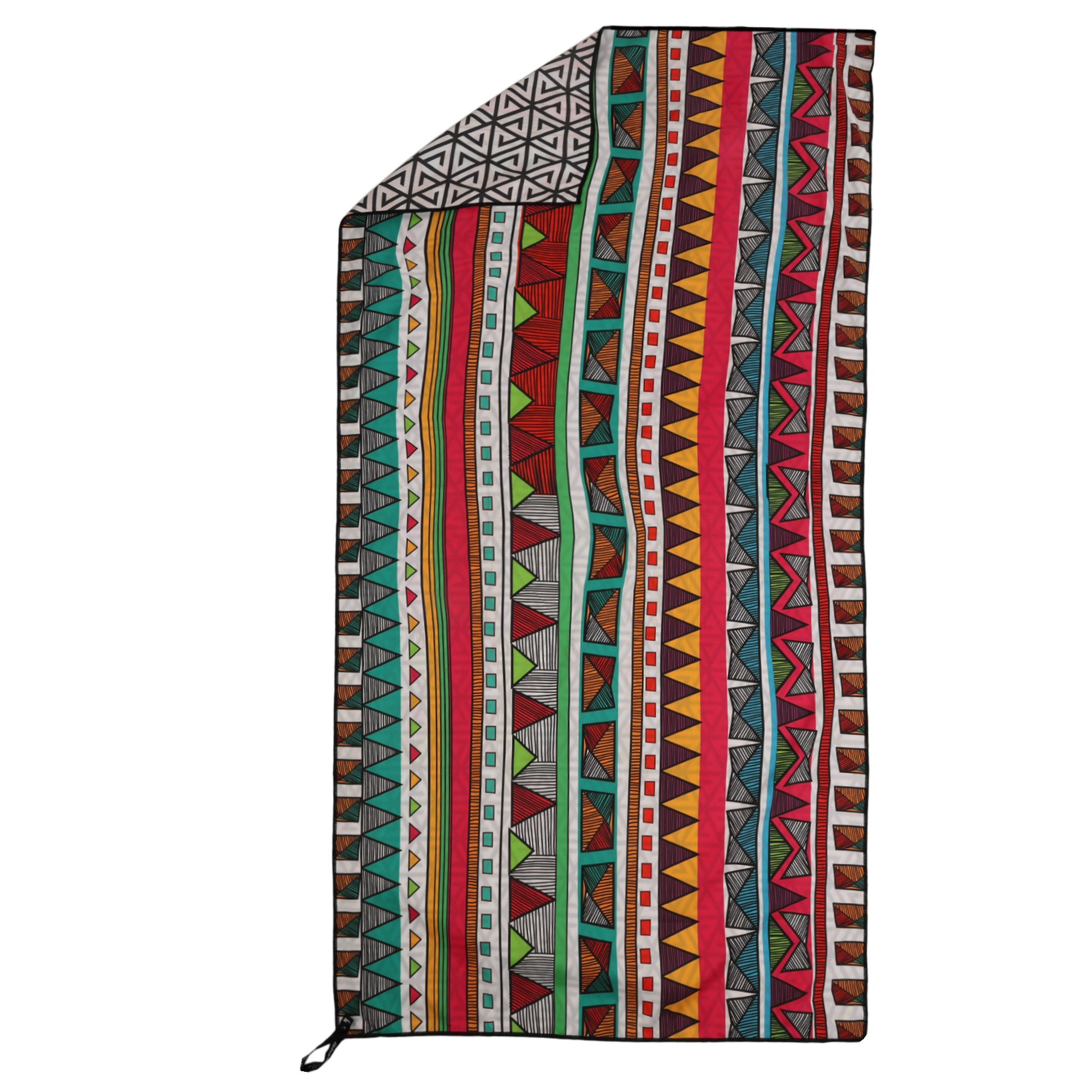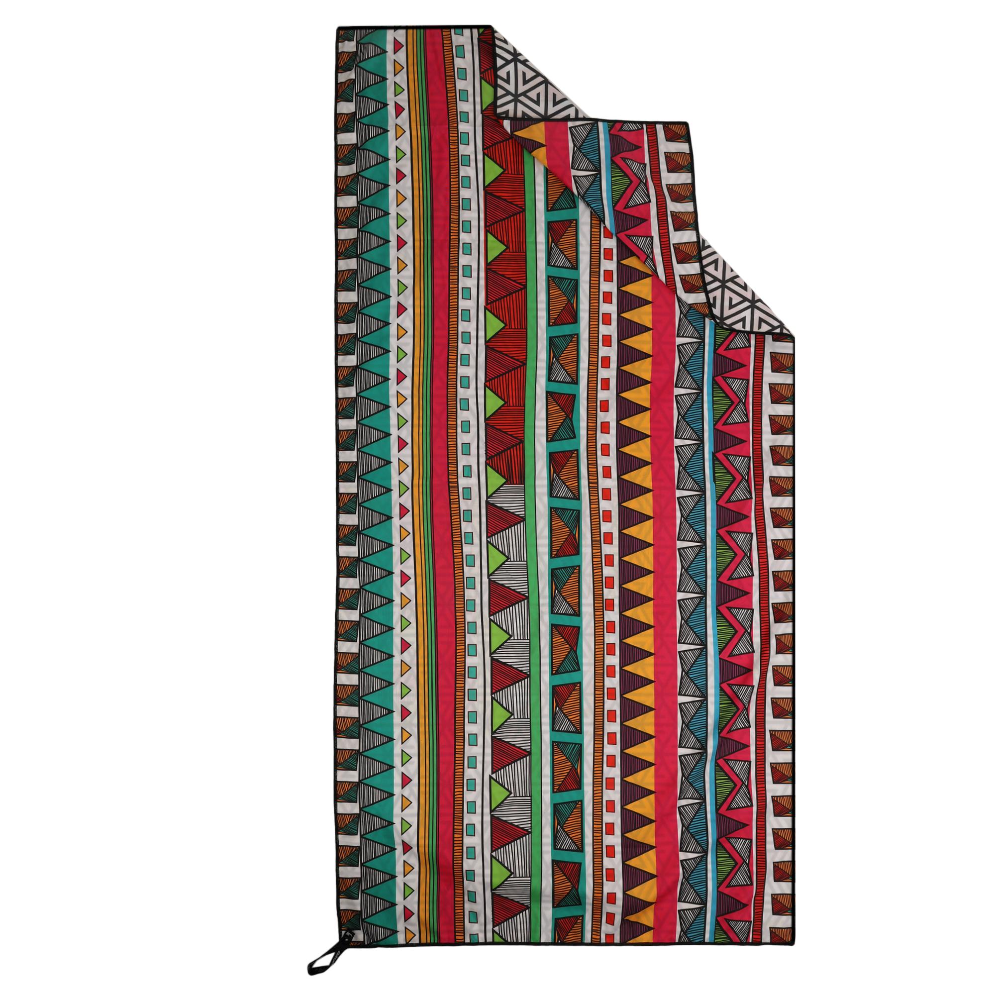 Полотенце имеет размер 160×80 см. При этом в сложенном виде размеры полотенца куда меньше и составляют 22,5×8 см. Это позволяет легко собрать его в небольшой чехол на стяжках и поместить в любую пляжную сумку. Изготовленное из микрофибры полотенце быстро высыхает после намокания, не впитывает неприятный запах и остаётся мягким на ощупь даже после длительного использования.