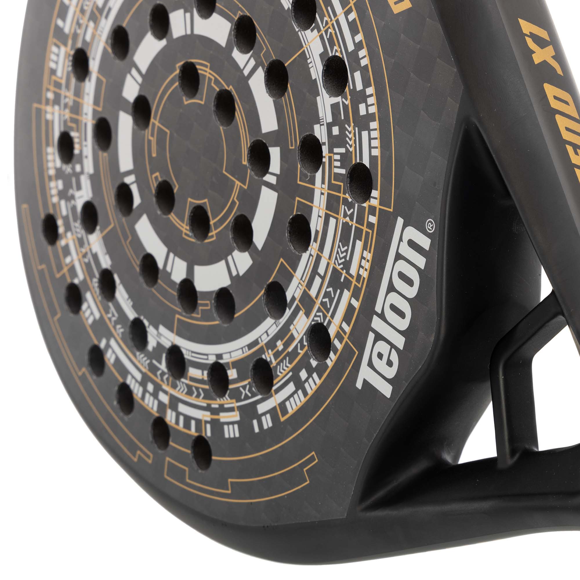 Если во время игры в падел-теннис вы цените контроль и максимальную точность, то вам стоит обзавестись ракеткой TELOON. Ракетка от данного бренда изготовлена из современных материалов премиум-качества и имеет продуманную геометрию, которая обеспечивает возможность одинаково эффективно вести оборонительные действия и позиционную игру. Ракетка изготовлена из карбона и имеет сердцевину из EVA. Такое сочетание материалов обеспечивает отличную амортизацию мяча и снижает вибрации. Карбон обеспечивает необходимую жёсткость конструкции. В ракетке имеется 49 отверстий. Идеальный контроль обеспечивает большая площадь ударной поверхности, которая достигается за счет каплевидной форме головы. Толщина ракетки составляет 38 мм.