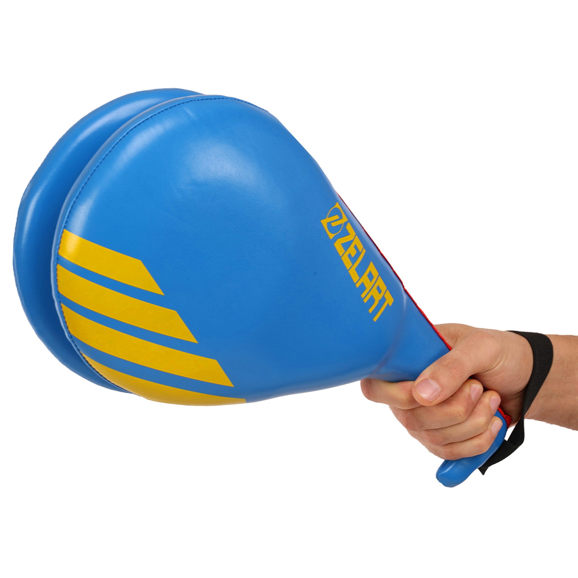 Назначение: для отработки ударов ногами.Ракетка ZELART BO-1421 состоит из двух половинок и визуально напоминает флажок каплевидной формы. Этот снаряд был разработан для бойцов тхэквондо и получил широкое распространение в других видах боевых искусств, практикующих удары ногами. При точном, хлёстком ударе половинки снаряда ударяются друг о друга, издавая хлопок – это даёт представление бойцу о том, насколько точно и эффективно он провёл атаку.