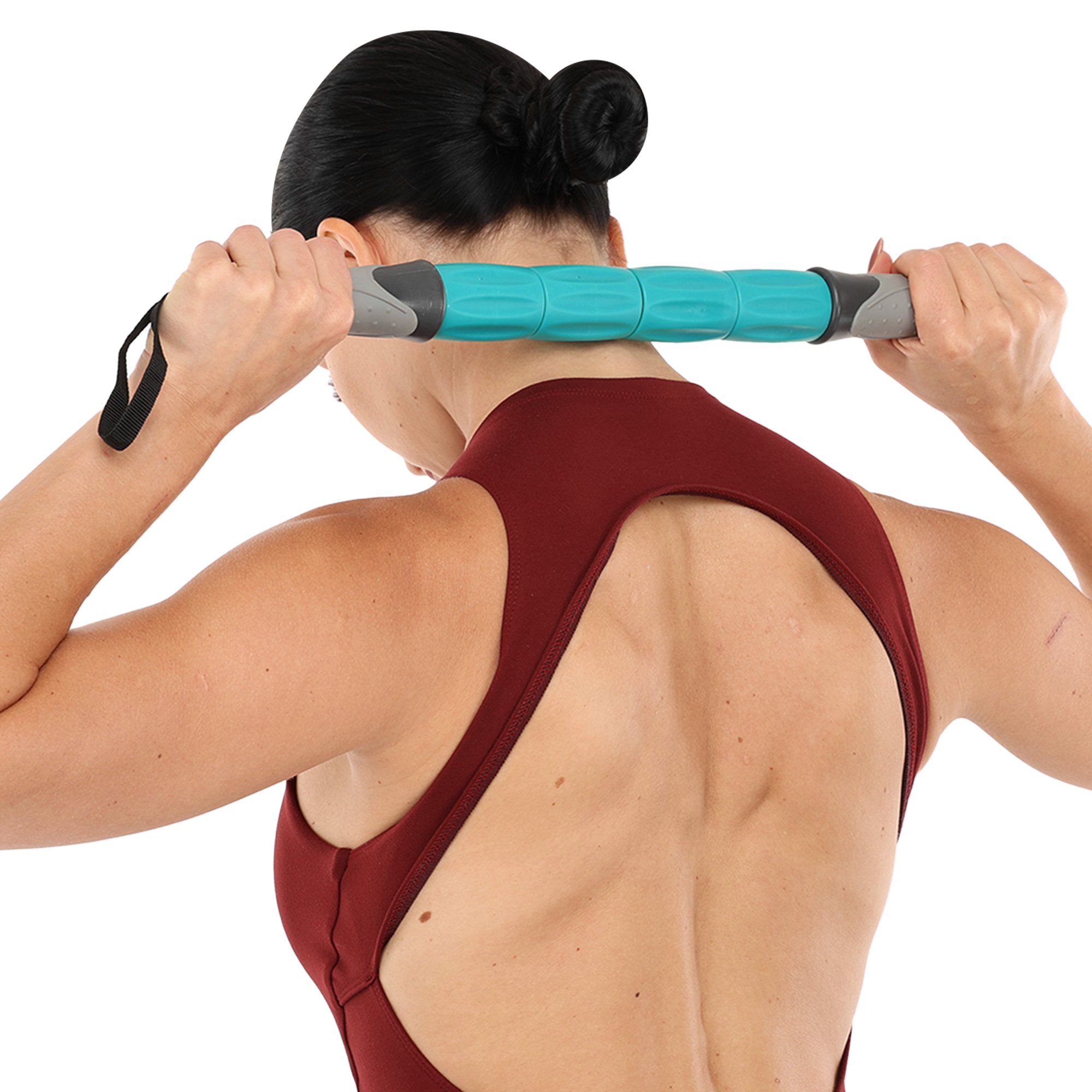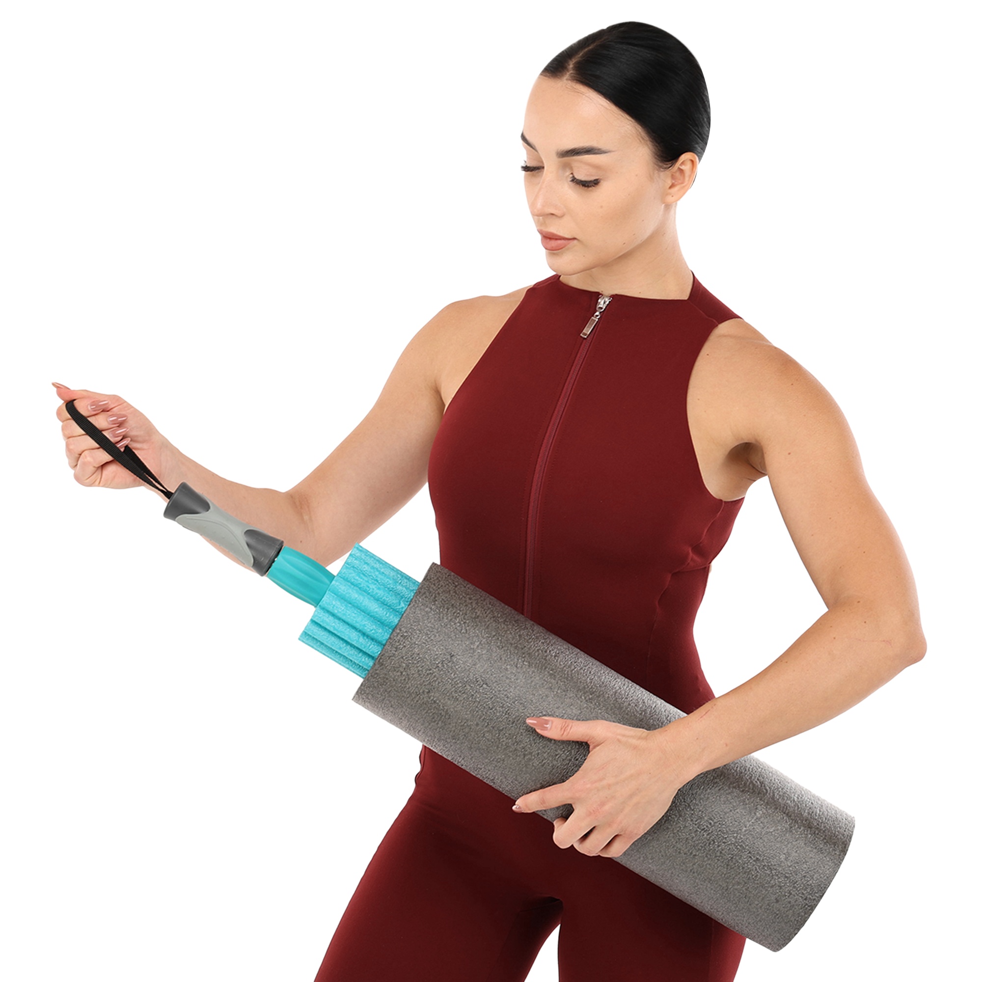 Массажная палка — третий элемент в наборе — идеально подходит для точечной проработки и самомассажа рук, ног, шеи. А благодаря прорезиненным рельефным ручкам и удобной петле, пользоваться ей максимально комфортно: она не выскальзывает, легко ложится в руку и доставляется даже из плотно собранного комплекта без усилий.