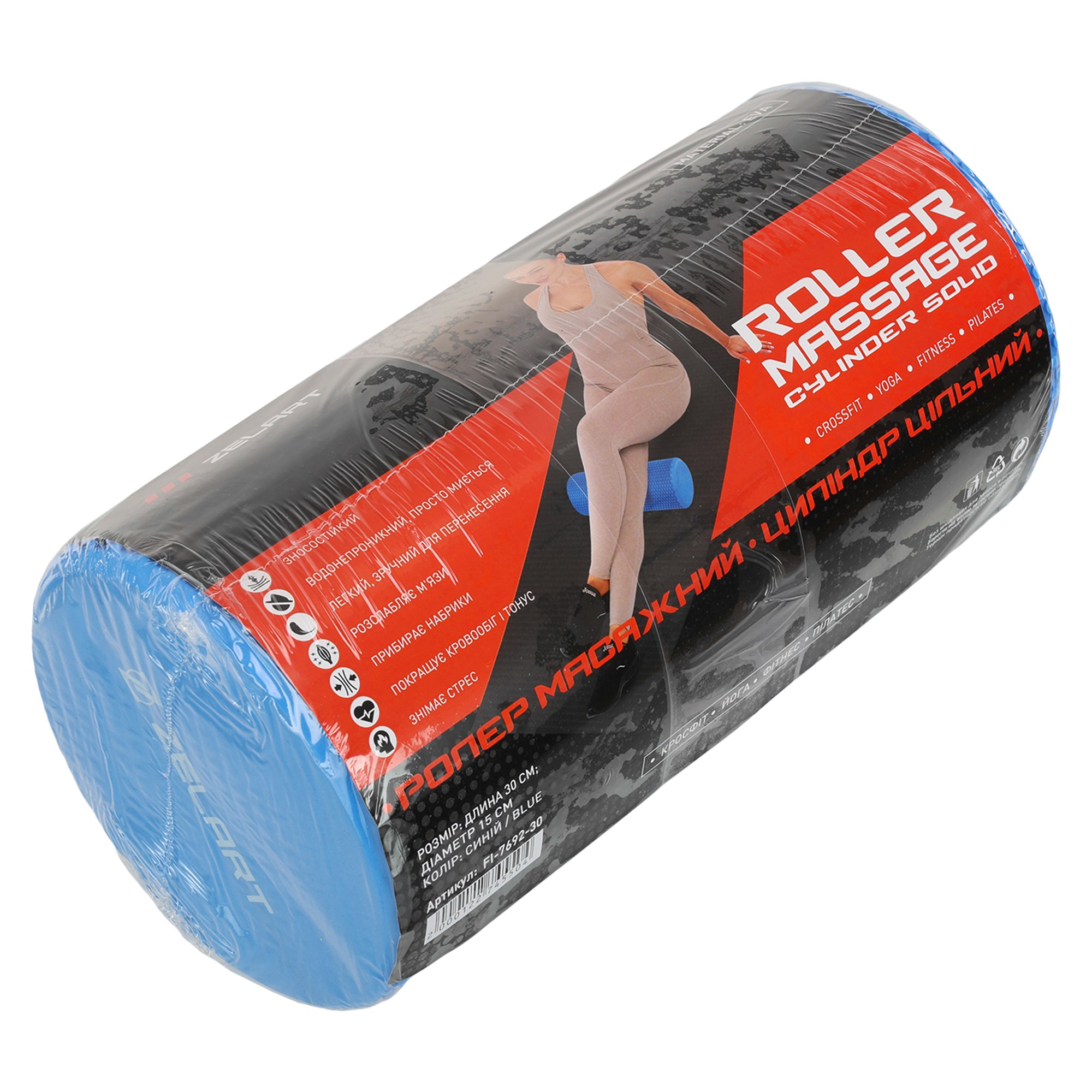 Роллер массажный цилиндр цельный 30см Zelart FI-7692-30 синий Код FI-7692-30