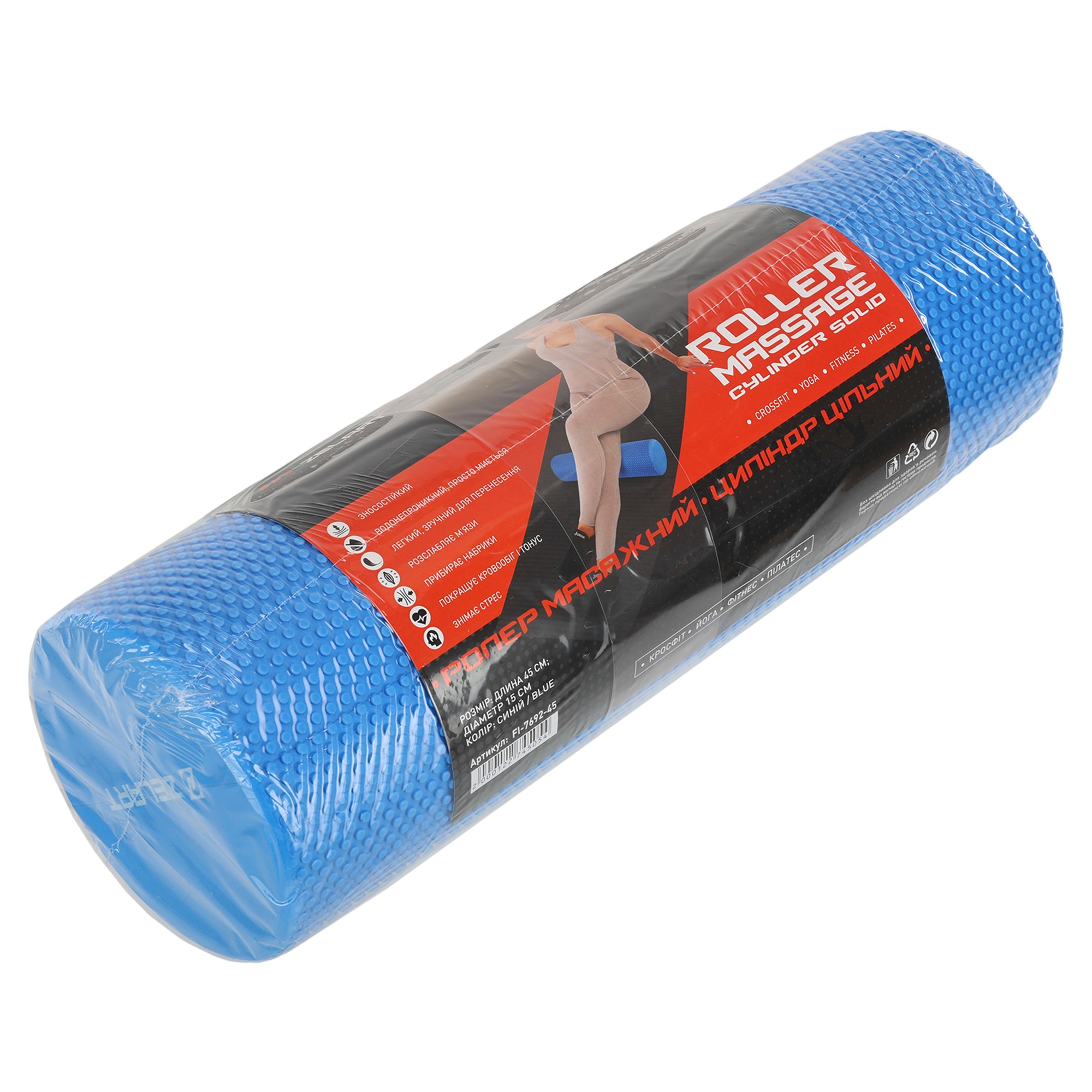 Роллер массажный цилиндр цельный 45см Zelart FI-7692-45 синий Код FI-7692-45