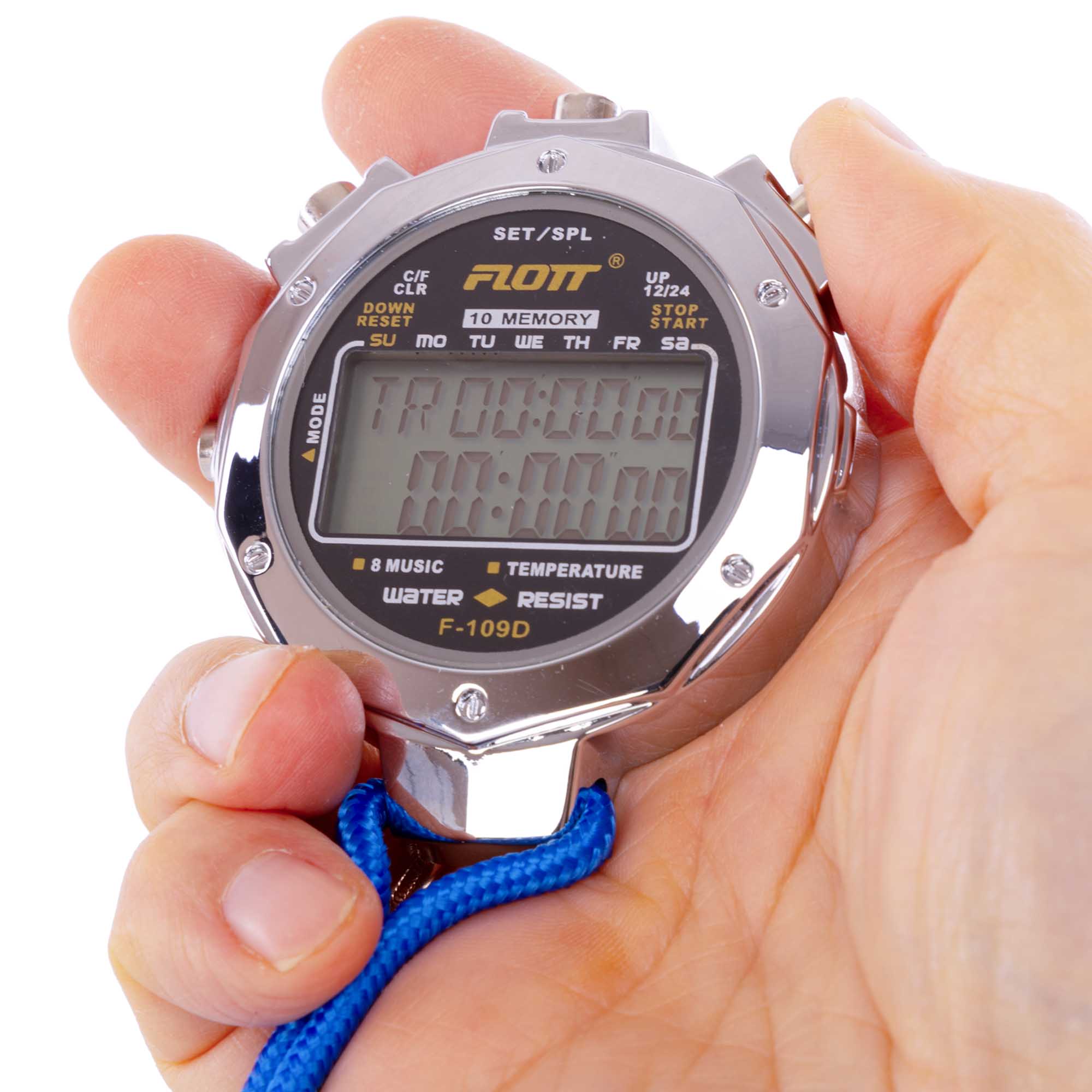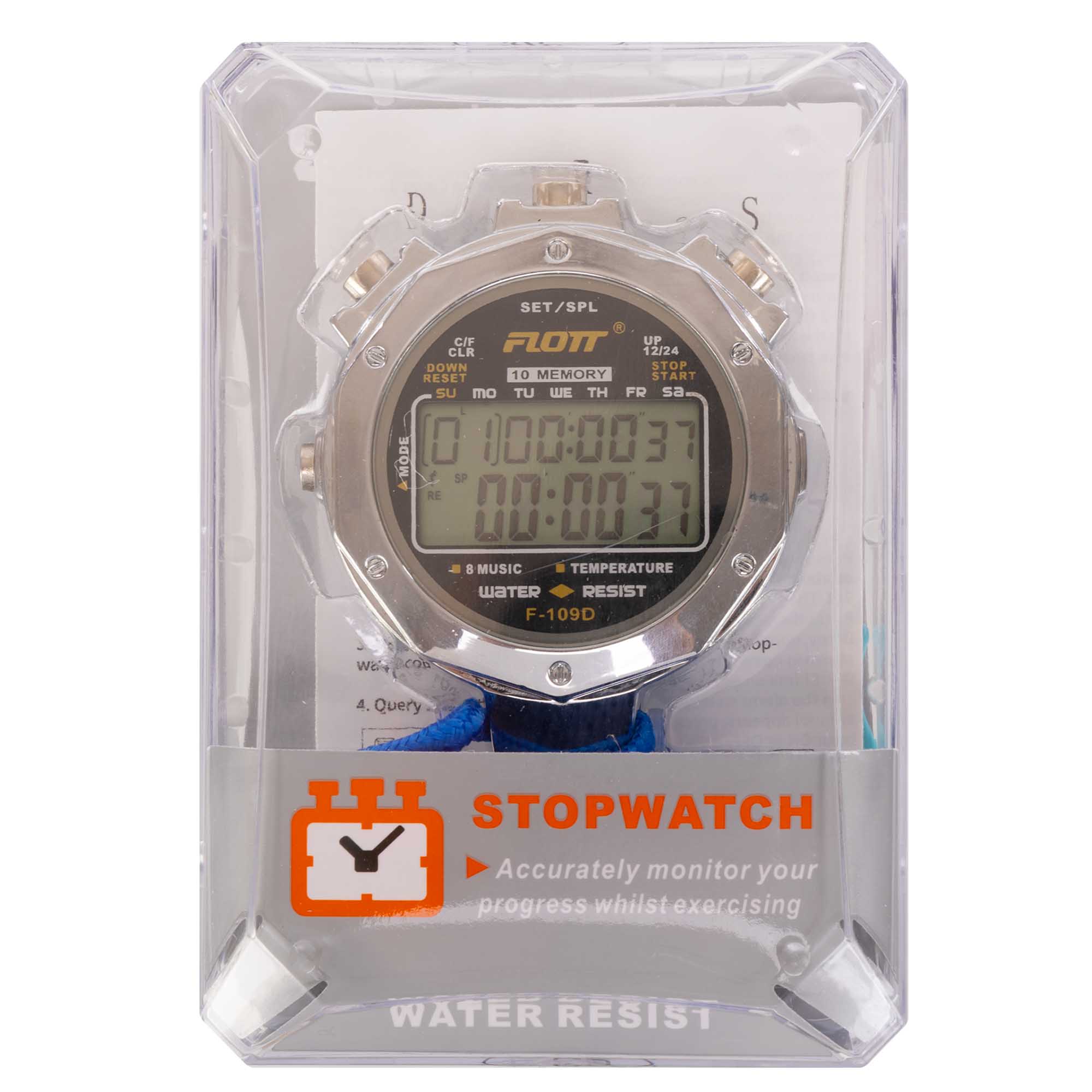 Секундомер спортивный электронный 10 результатов памяти двухстрочный FLOTT F-109D серебряный Код F-109D