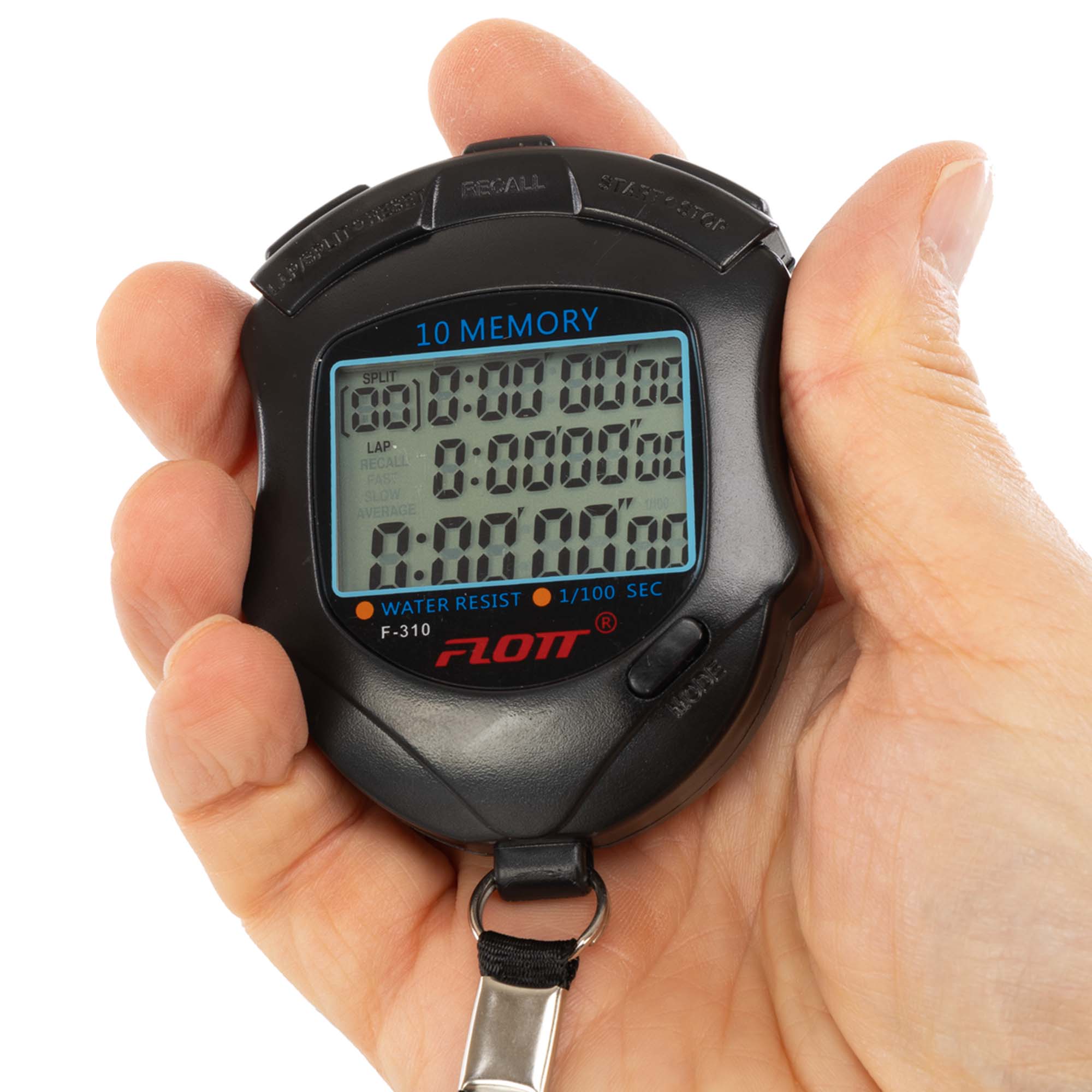Секундомер спортивный электронный 10 результатов памяти трехстрочный FLOTT F-310 черный Код F-310