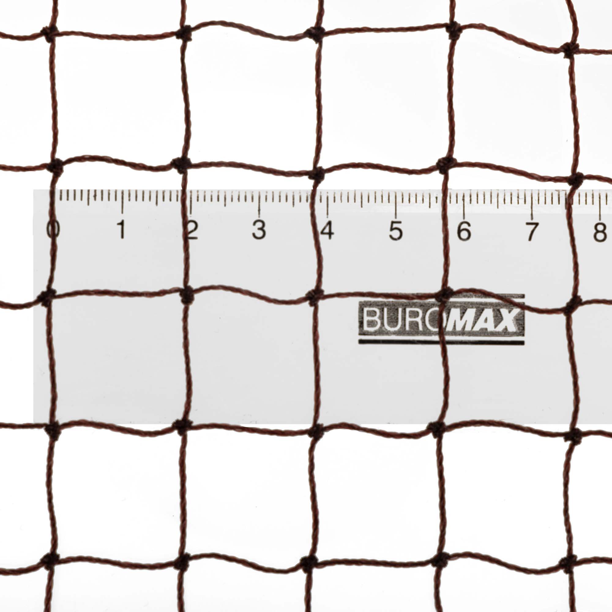 Плетение выполнено узловым методом из полиэстеровой нити толщиной 0,7 мм. Полотно сетки не растягивается, его сложно разорвать или повредить, материал не боится влаги. Размер ячейки составляет 2х2 см, что позволяет эффективно останавливать волан, с какой бы скоростью он не летел. По периметру сетка обшита прочным тканевым кантом белого цвета. Контрастная расцветка делает разделение более заметным для игроков, судей и зрителей. По углам расположены люверсы для надежной фиксации сетки на стойках.