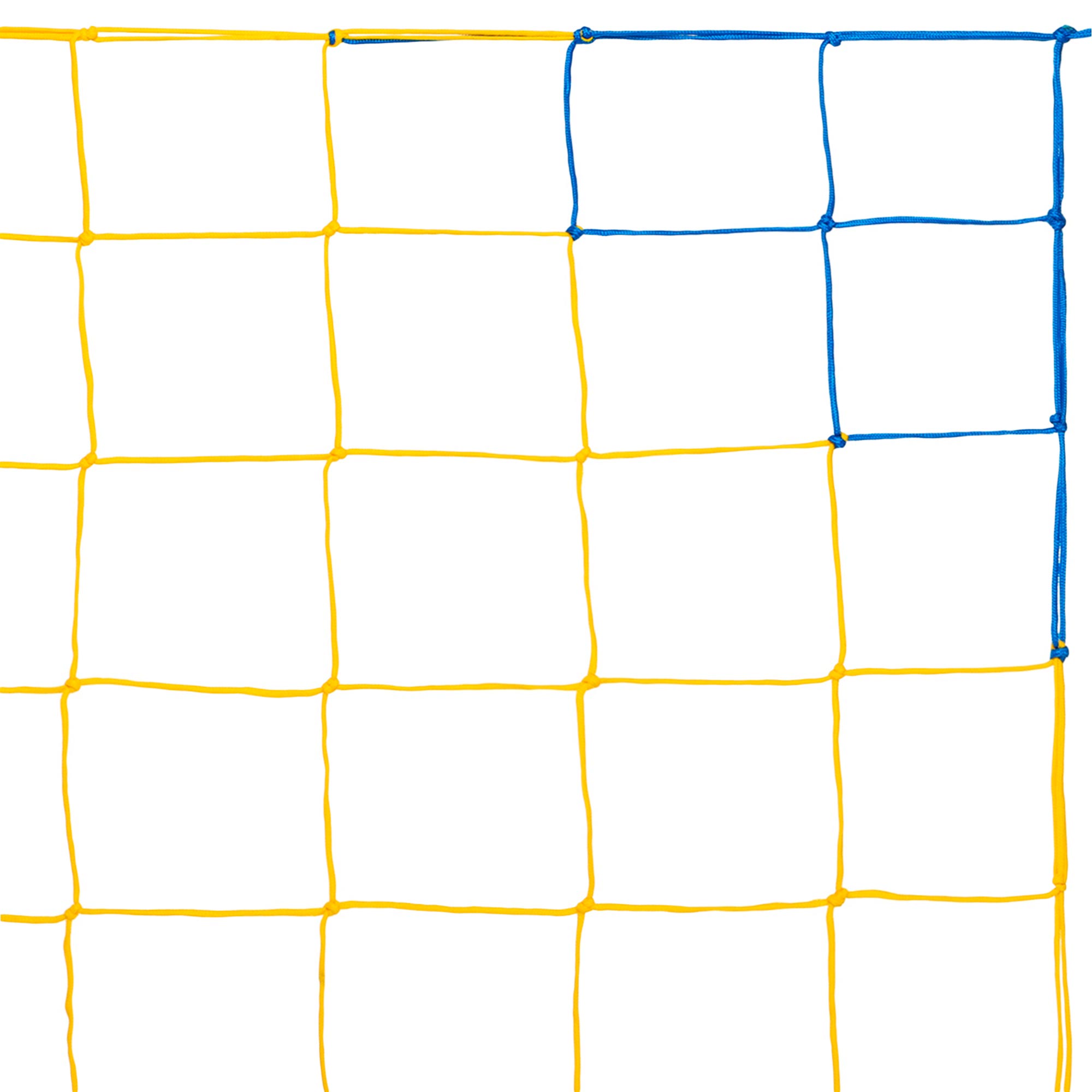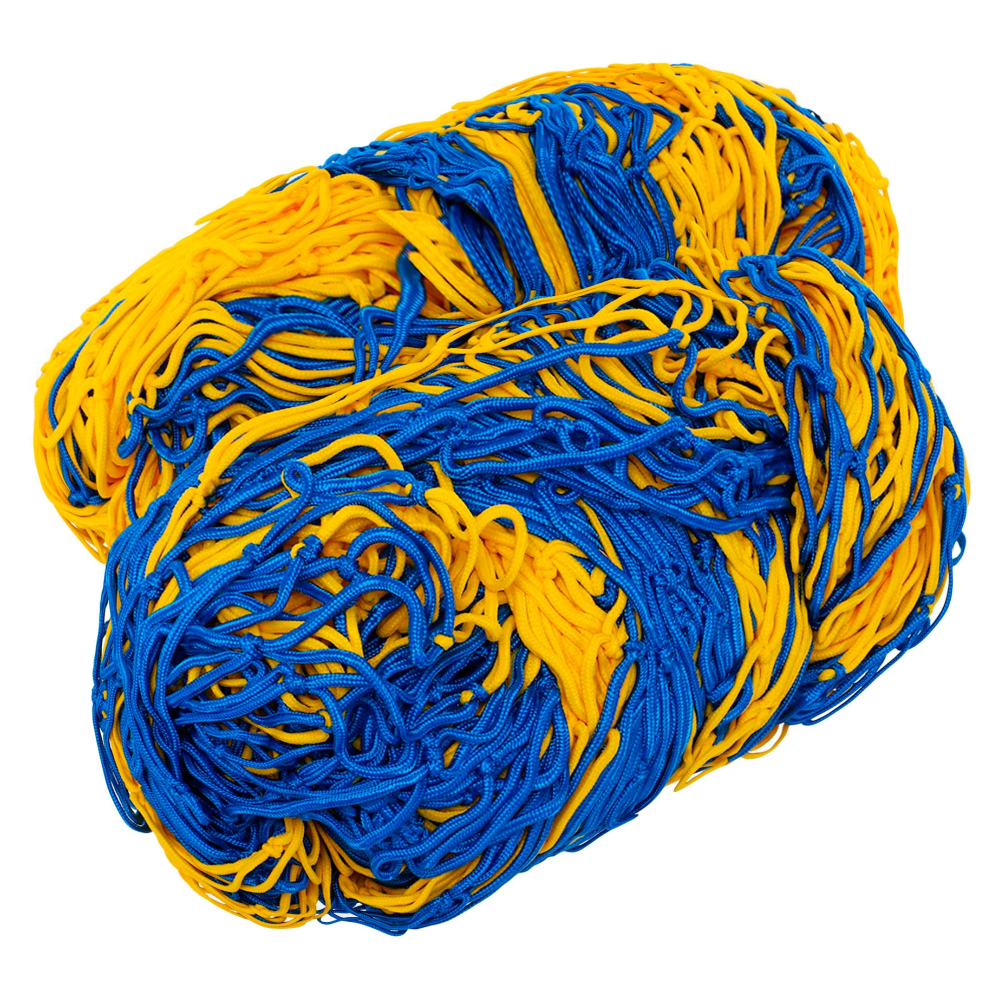 Сетка Стандарт 1,5 предназначена для установки на футбольные ворота и может использоваться при любых погодных условиях. Сетка имеет стандартный размер и изготовлена в сине-желтых цветах. Ячейки размером 15x15 см изготовлены методом узлового плетения. Высокую прочность на разрыв обеспечивает использование полипропиленового шнура толщиной 3 мм при изготовлении сетки. Полипропилен не меняет своих свойств в процессе эксплуатации, не впитывает влагу и невосприимчив к воздействию прямых солнечных лучей.