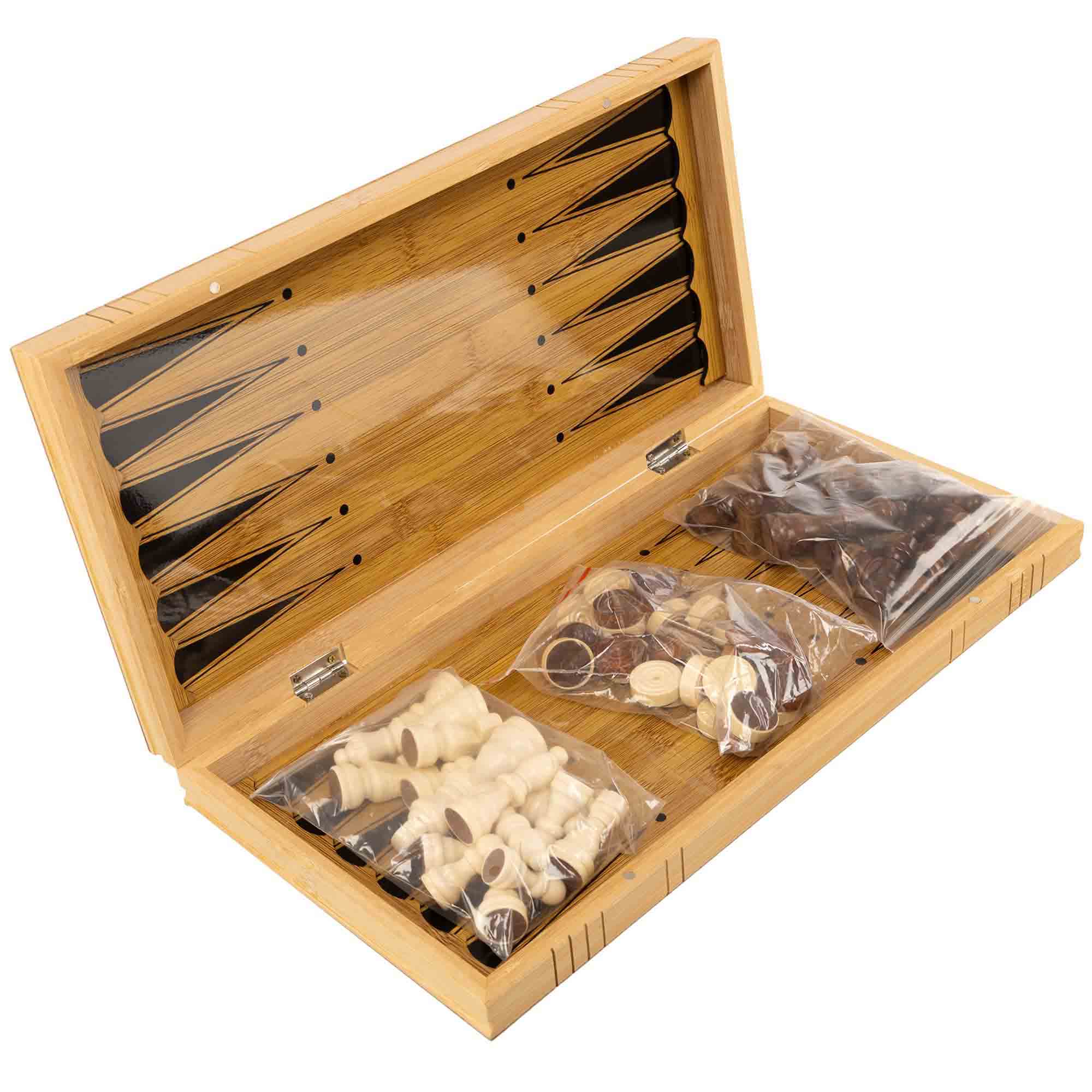 Шахматы шашки нарды 3 в 1 набор настольных игр из бамбука SP-Sport A3140 размер 39x39см Код A3140