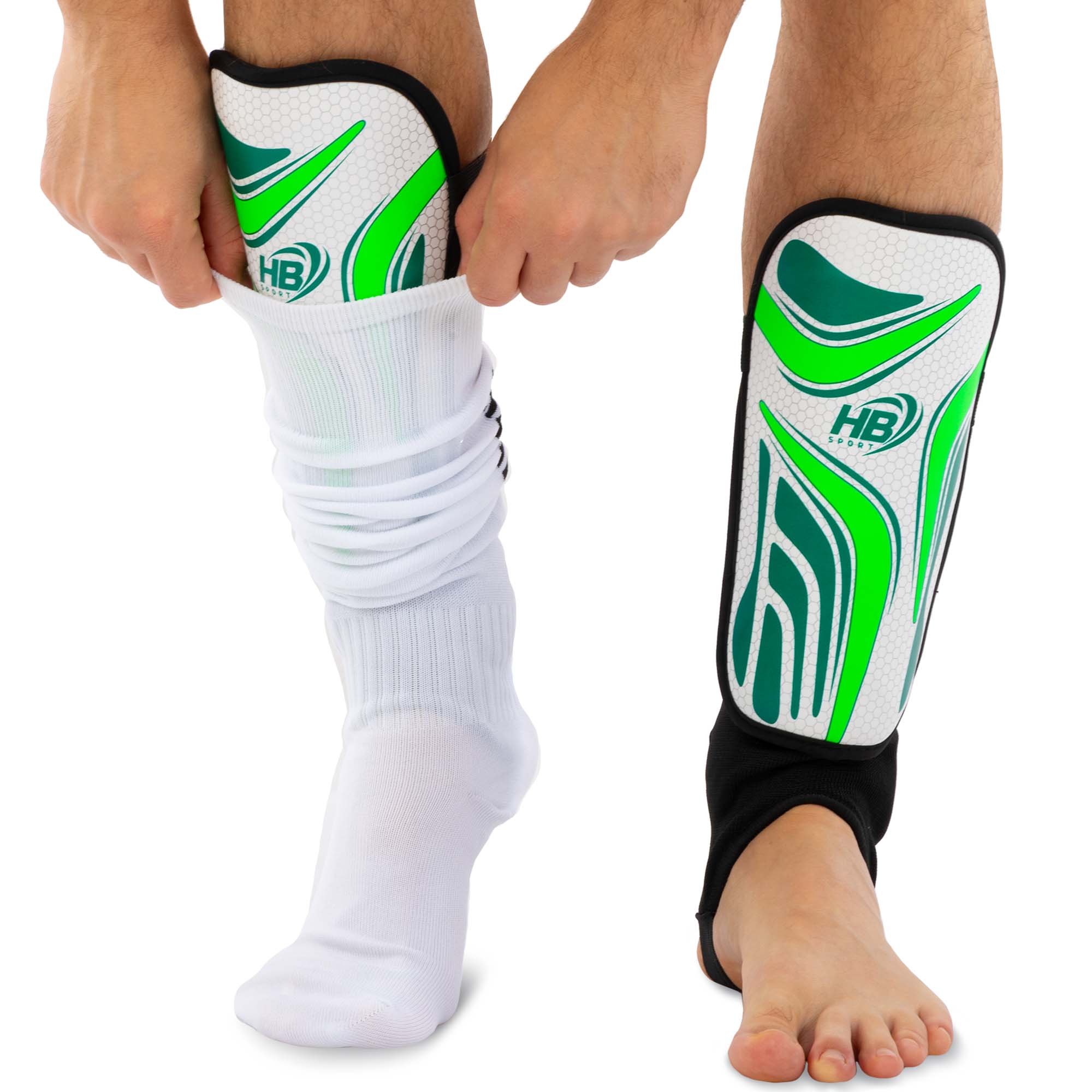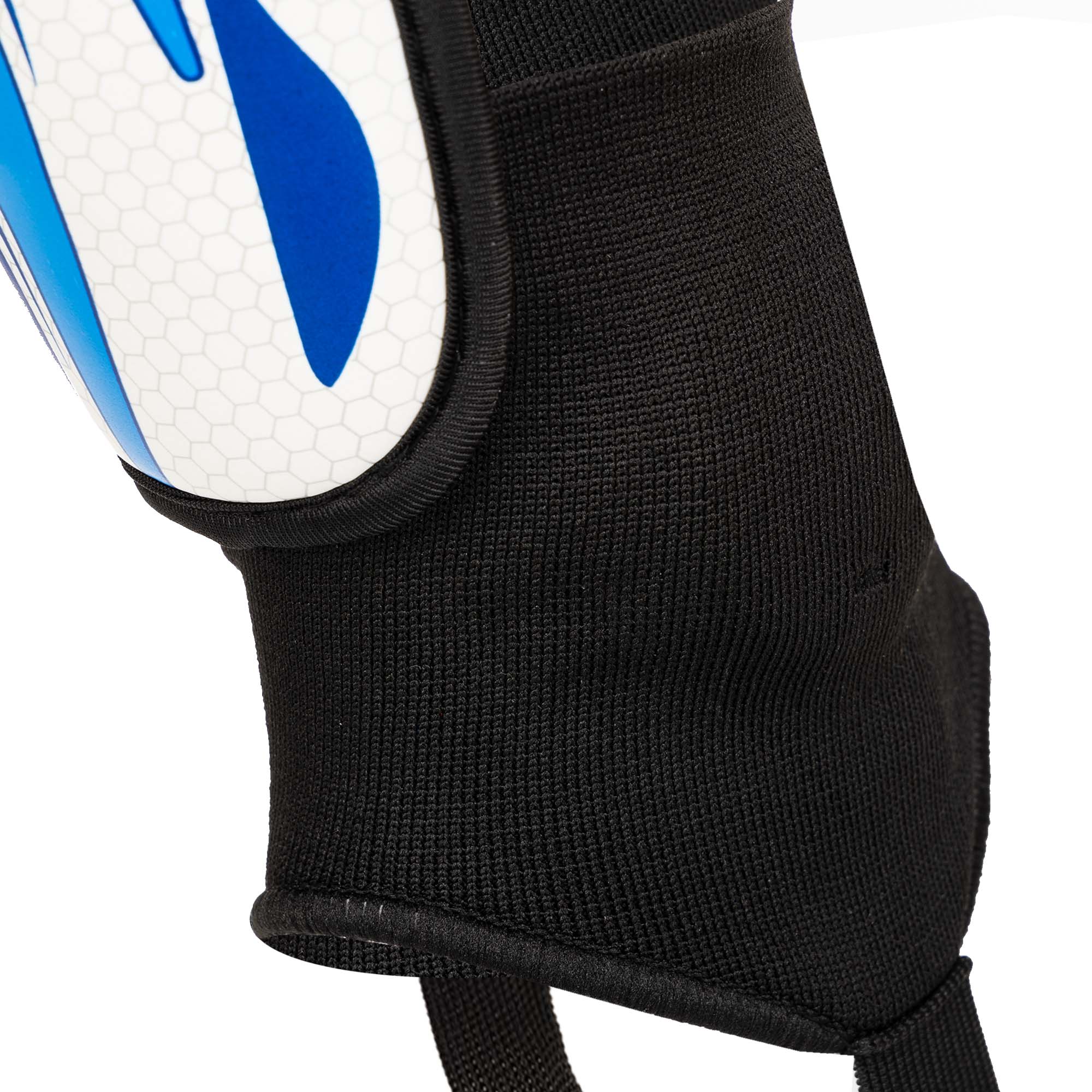 Футбольные щитки с голеностопом обеспечивают максимальную защиту наиболее уязвимых участков ног и суставов. Конструкция защитной экипировки состоит из самих щитков и ремня на застёжке Velcro сверху. Внешняя часть щитка жёсткая и хорошо противостоит ударам. Для амортизации ударов под полипропиленовой накладкой расположен подкладочный слой. В нижней части расположена защита голени - манжета из компрессионного материала. Такие щитки не только обеспечивают более высокую степень защиты по сравнению с обычными накладными, но и не смещаются в процессе игры. При этом они дают полную свободу движений.
