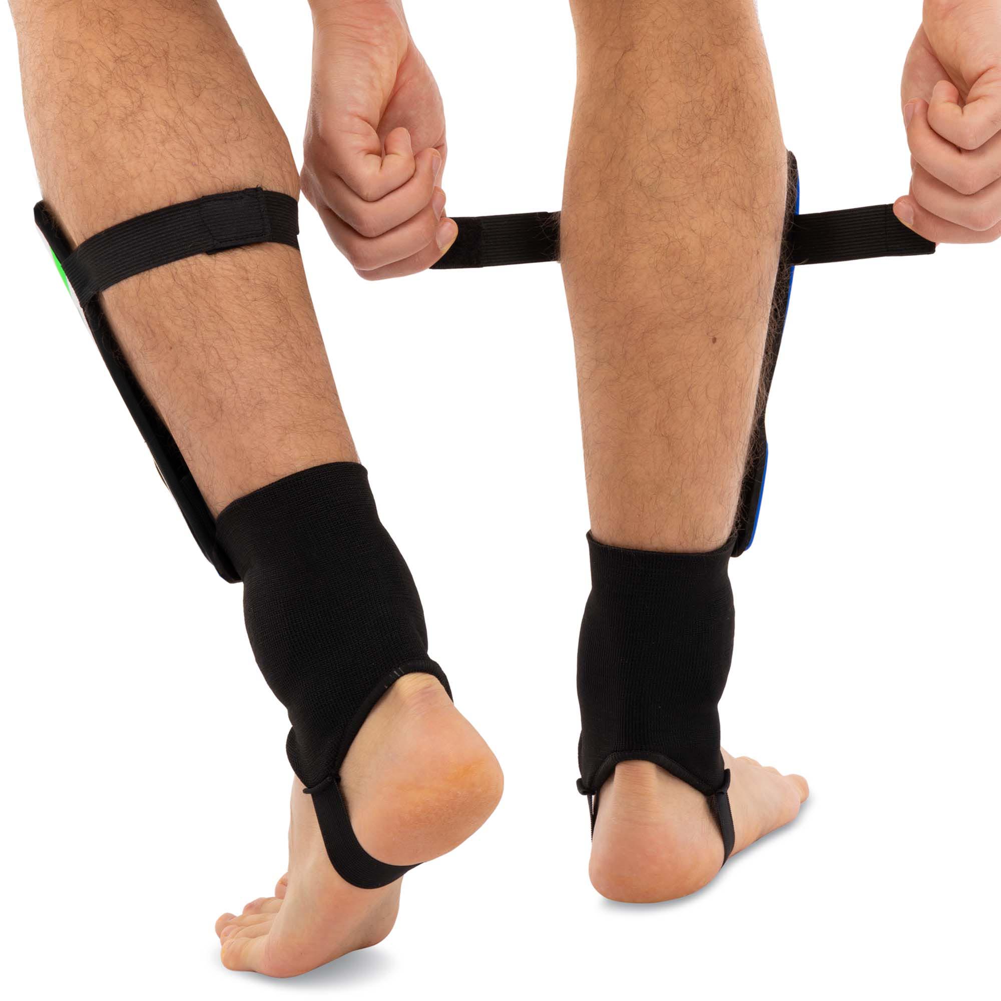 Футбольные щитки с голеностопом обеспечивают отличный уровень защиты и хорошо подходят как для взрослых, так и для детей. Это хорошая возможность избежать серьёзных травм и сохранить комфорт во время игр. Экипировка не требует использования компрессионных чулков для фиксации и отлично держится на ногах. Эргономичная форма щитков обеспечивает плотное прилегание к ногам.
