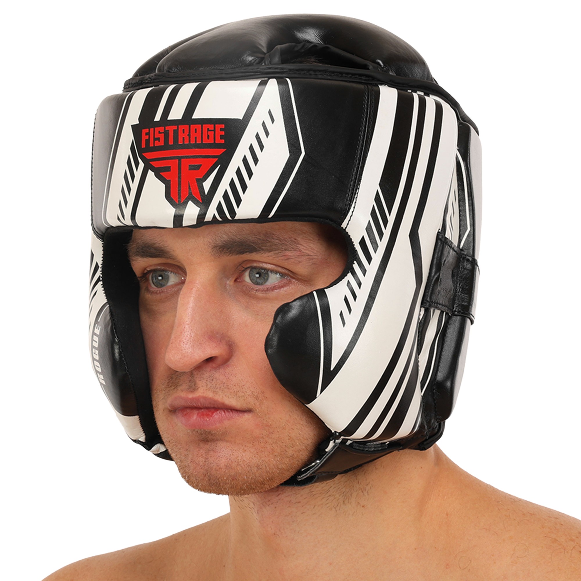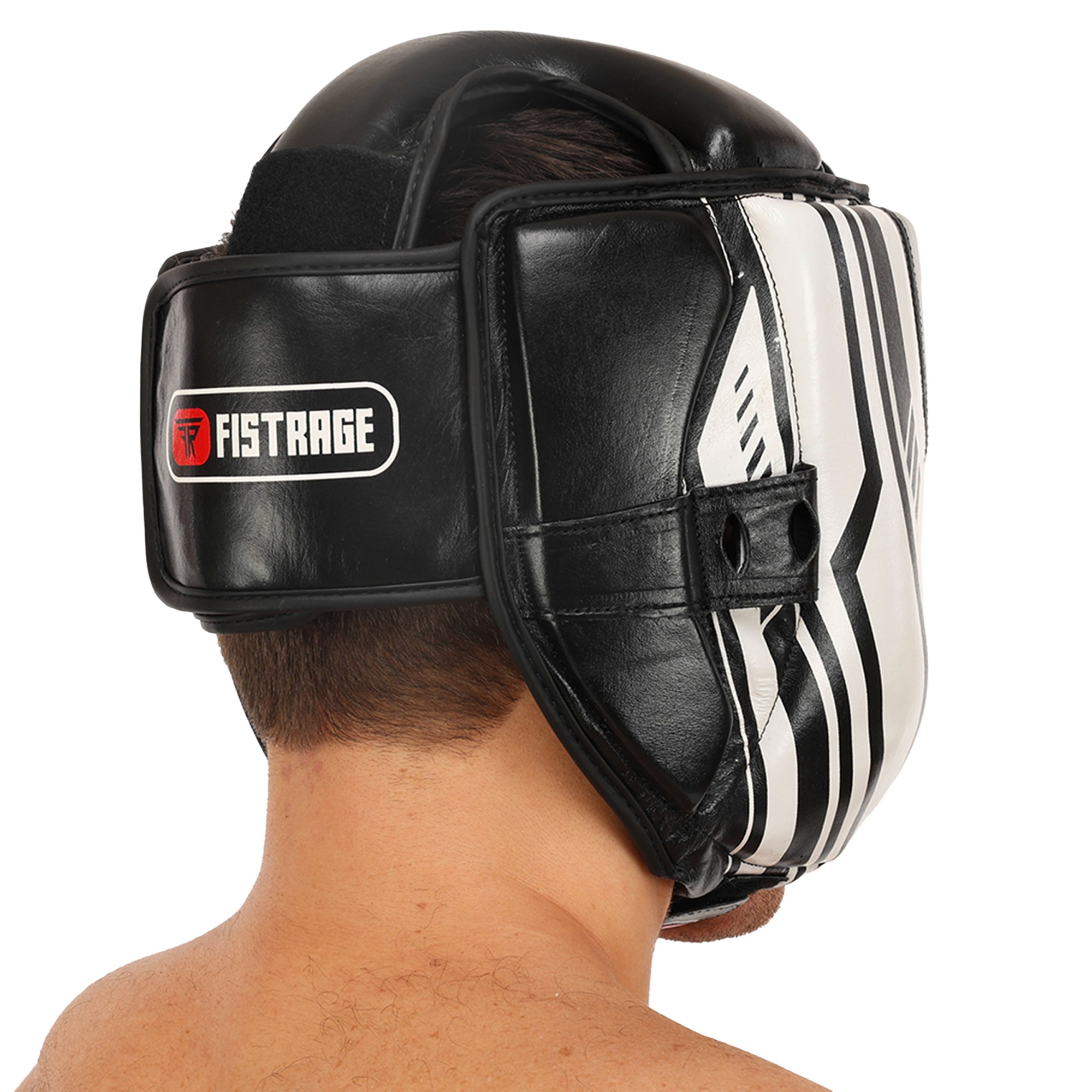 Шлем боксерский в мексиканском стиле кожаный FISTRAGE VL-7874 S-XL черный-белый Код VL-7874