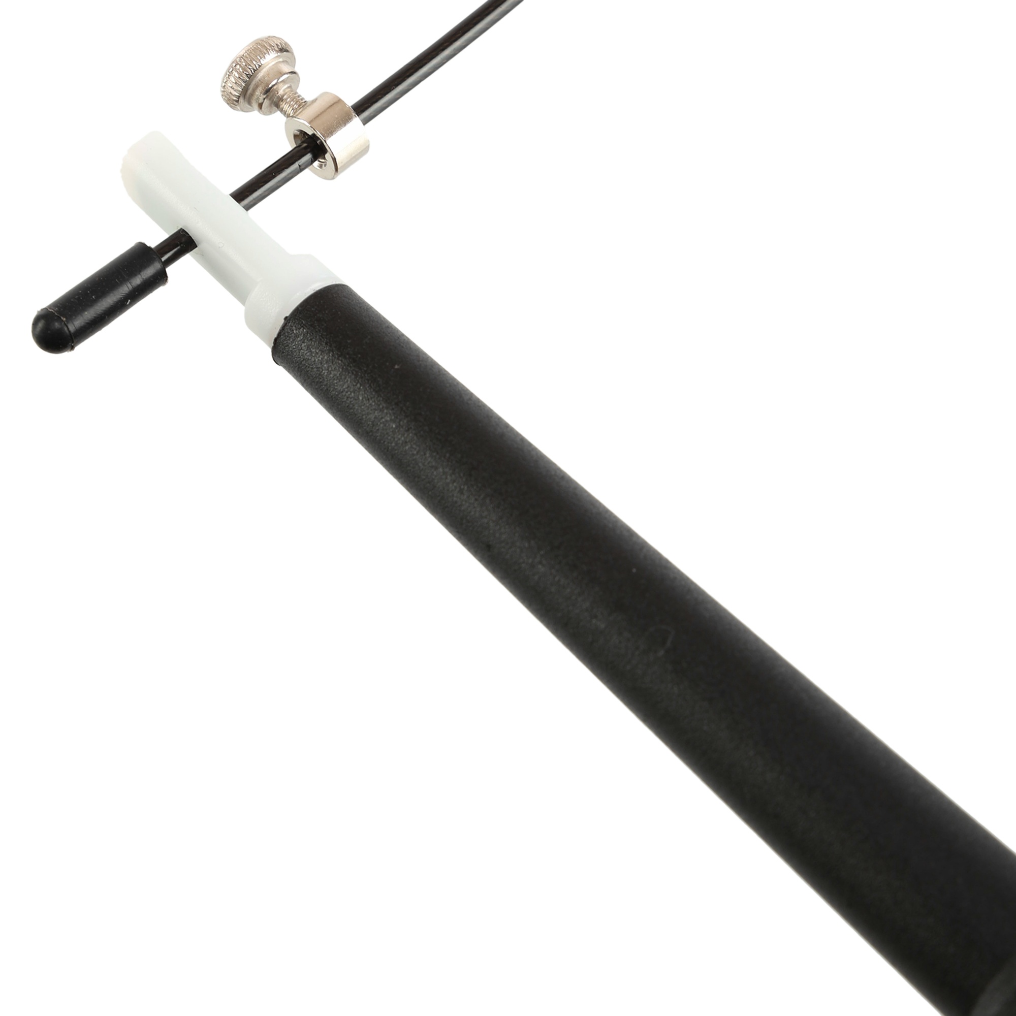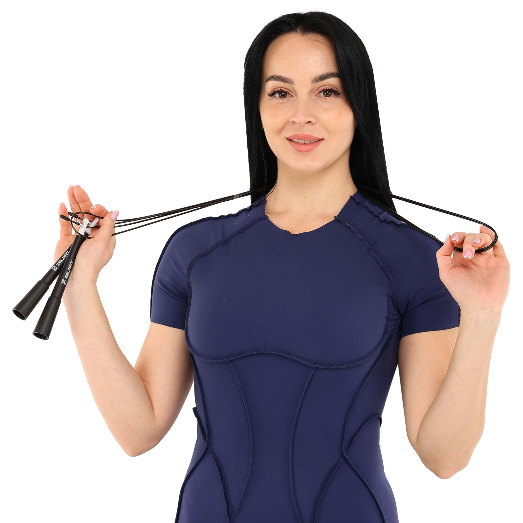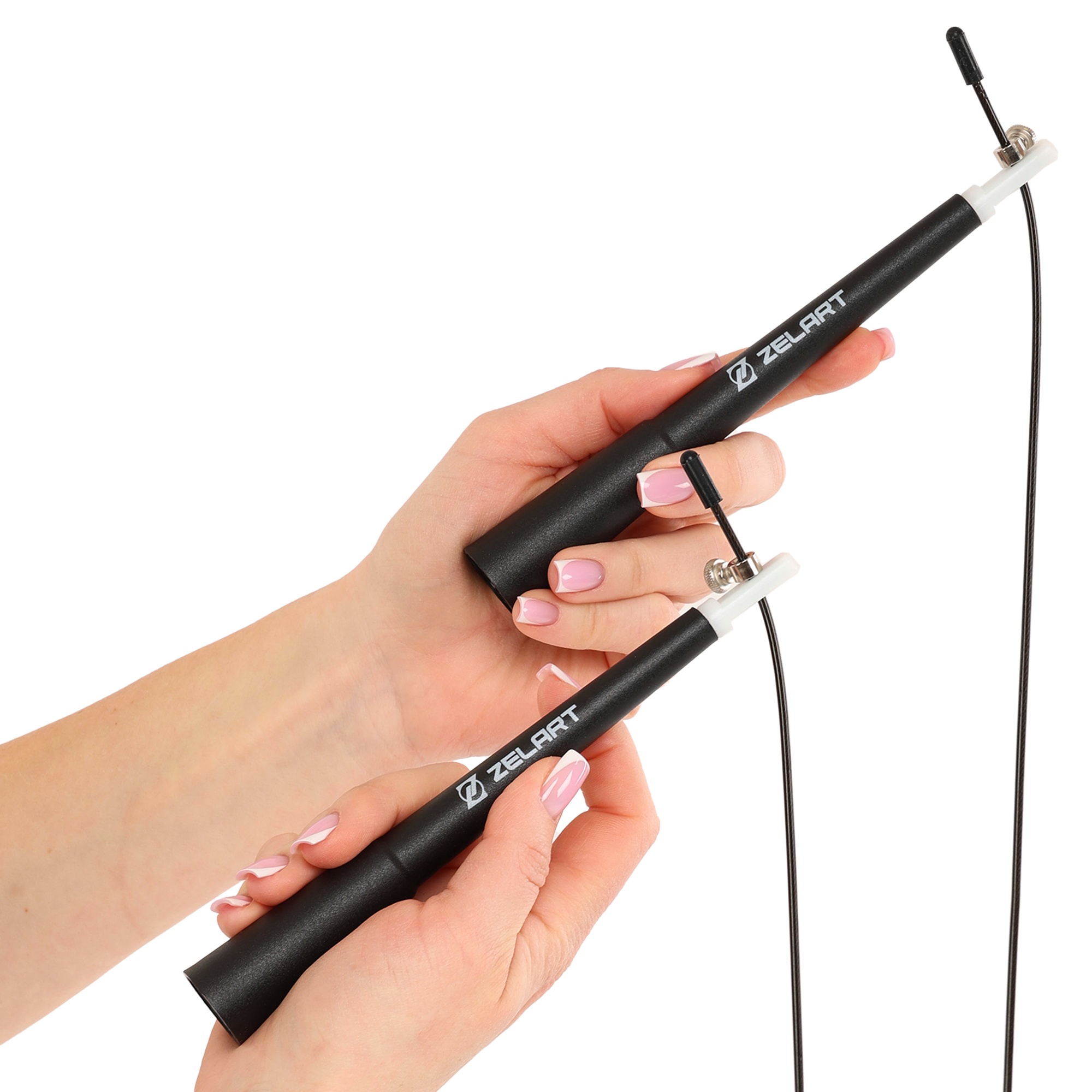 Скоростная скакалка имеет диаметр жгута всего 2,5 мм и благодаря своей конструкции позволяет выполнять прыжки с максимальной скоростью. Жгут скакалки выполнен из стальной проволоки. На концах проволоки имеются металлические зажимы, которые позволяют отрегулировать длину скакалки с высокой точностью. Способ крепления жгута к ручке в сравнении с классическими скакалками отличается. Именно это позволяет добиться максимально быстрого вращения жгута. Ручки изготовлены из полипропилена, материал не скользит в руках. Их форма обеспечивает комфортный захват и помогает удобно удерживать инвентарь во время выполнения упражнений.