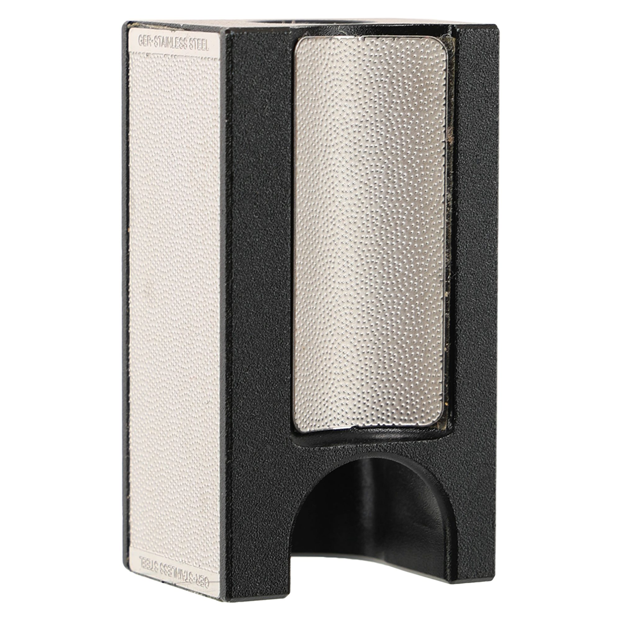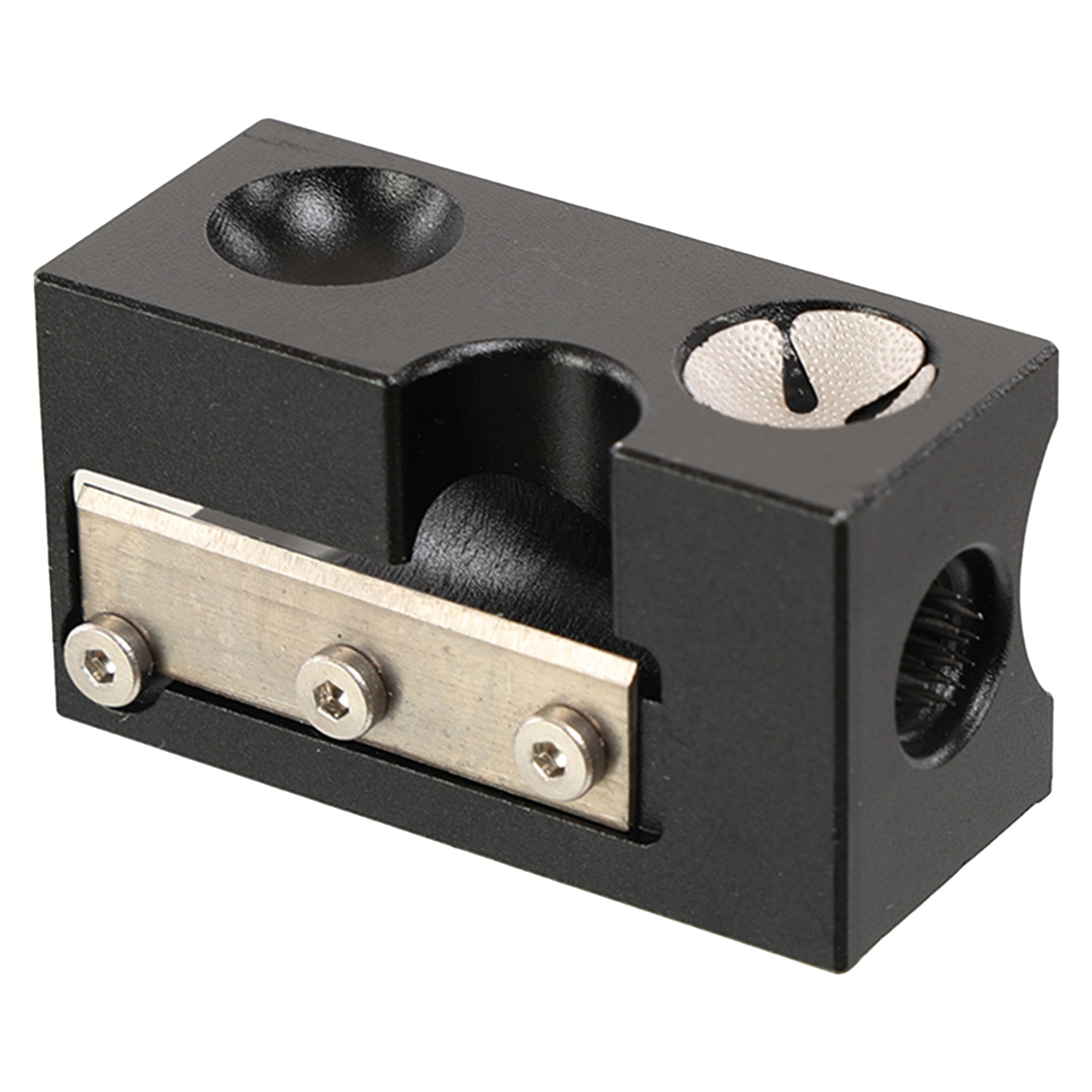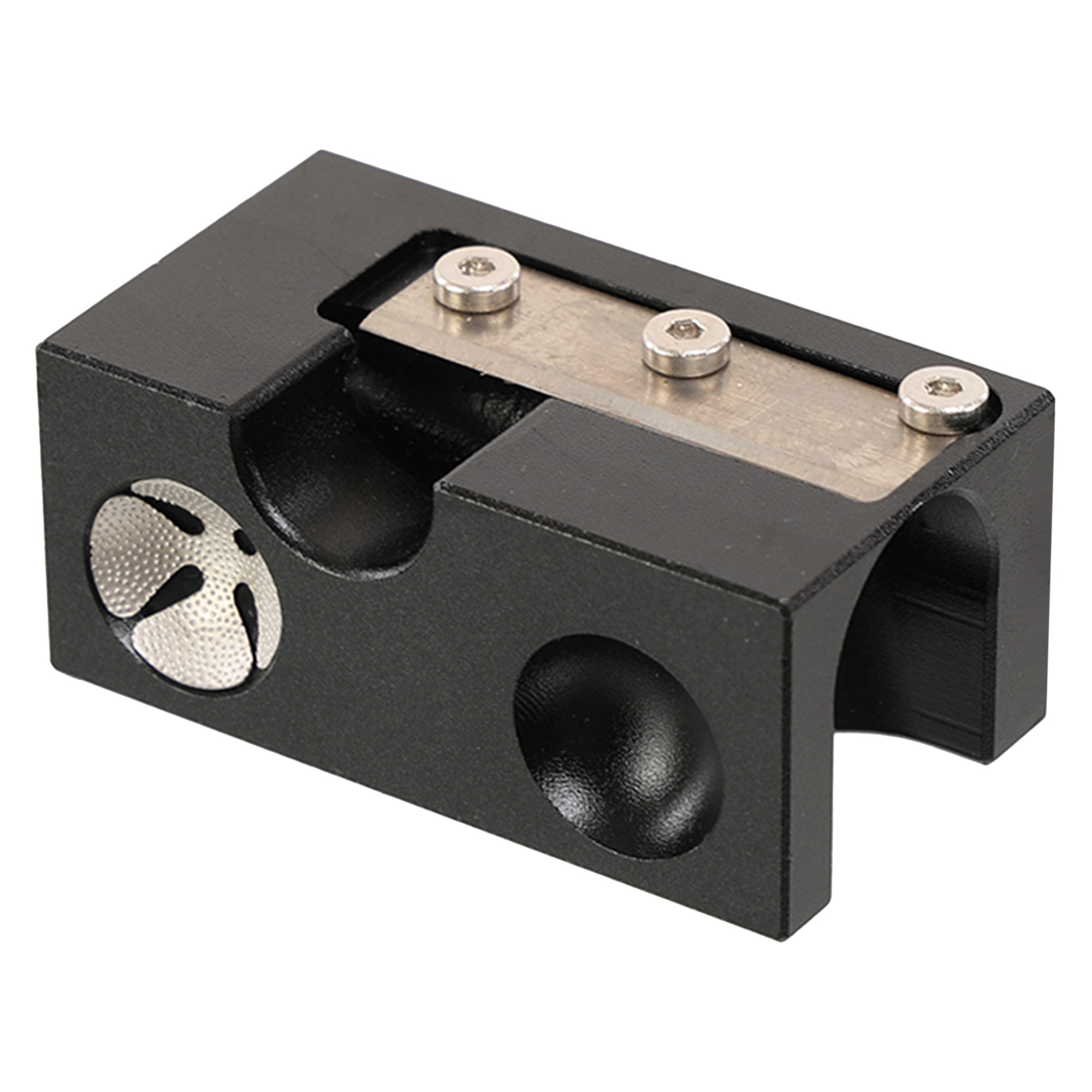 Станок для замены наклейки бильярдного кия SP-Sport KS-9913 - это универсальное приспособление компактного размера. Его длина составляет всего 5,5 см, а высота - 3 см. Изделие объединяет в себе 8 различных функций. В небольшой корпус заключены нож для подрезки, шейпер для сферы, пресс-зажим и боковой триммер. Благодаря использованию такого компактного инструмента вы сможете с высокой точностью отцентровать наклейку относительно шафта. При этом вам не нужно использовать целый набор инструментов - достаточно лишь одного компактного станка.