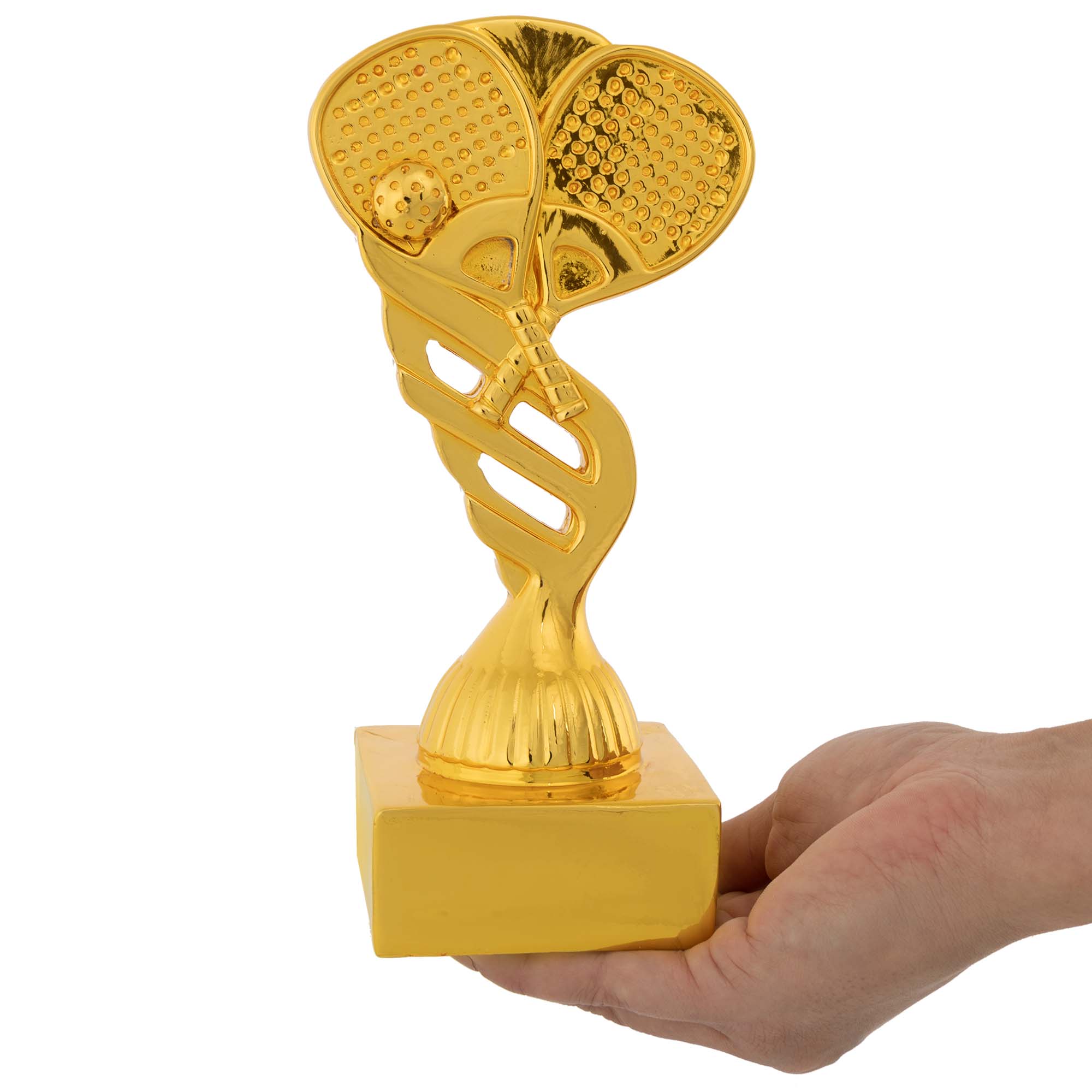 Наградная статуэтка SP-Sport HX6024-B2 с тематическим дизайном — яркий символ спортивных достижений и побед в падел-теннисе! Изящная композиция включает две игровые ракетки и мяч на фигурном постаменте. Точная детализация и аккуратное золотое покрытие придают изделию выразительности и делают достойным элементом любой наградной коллекции.