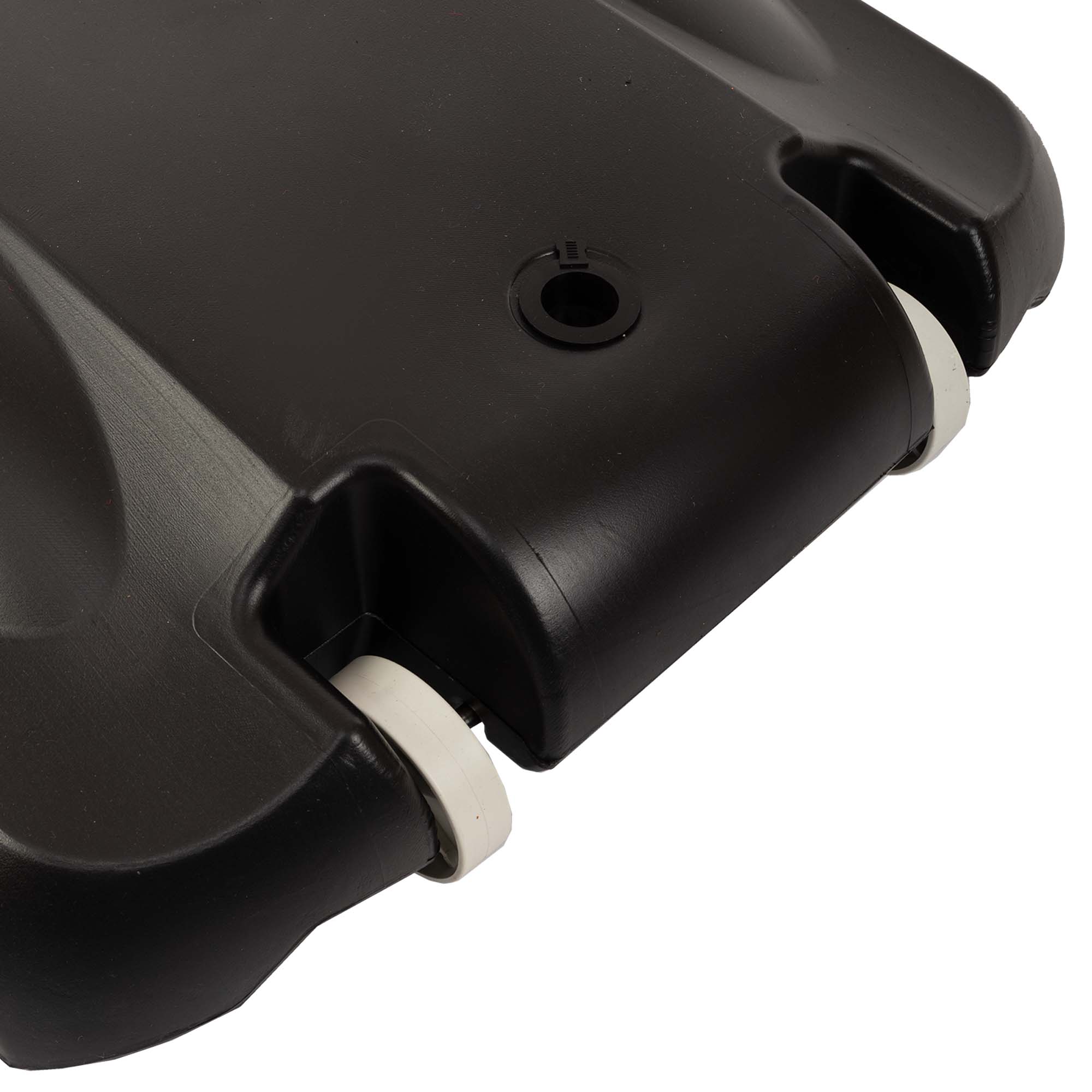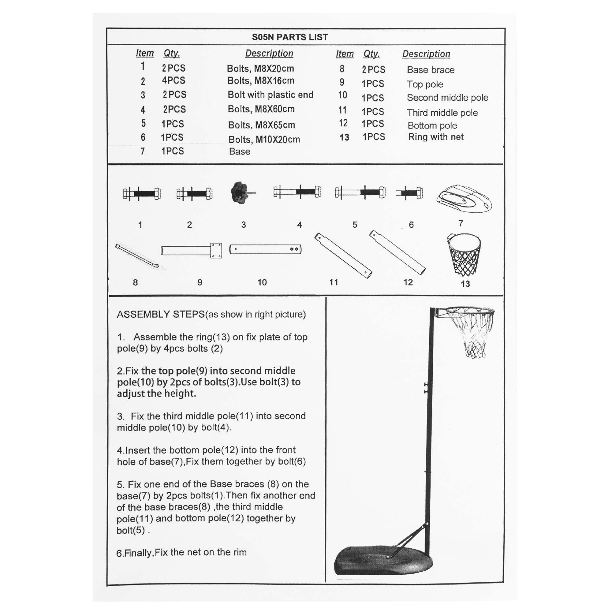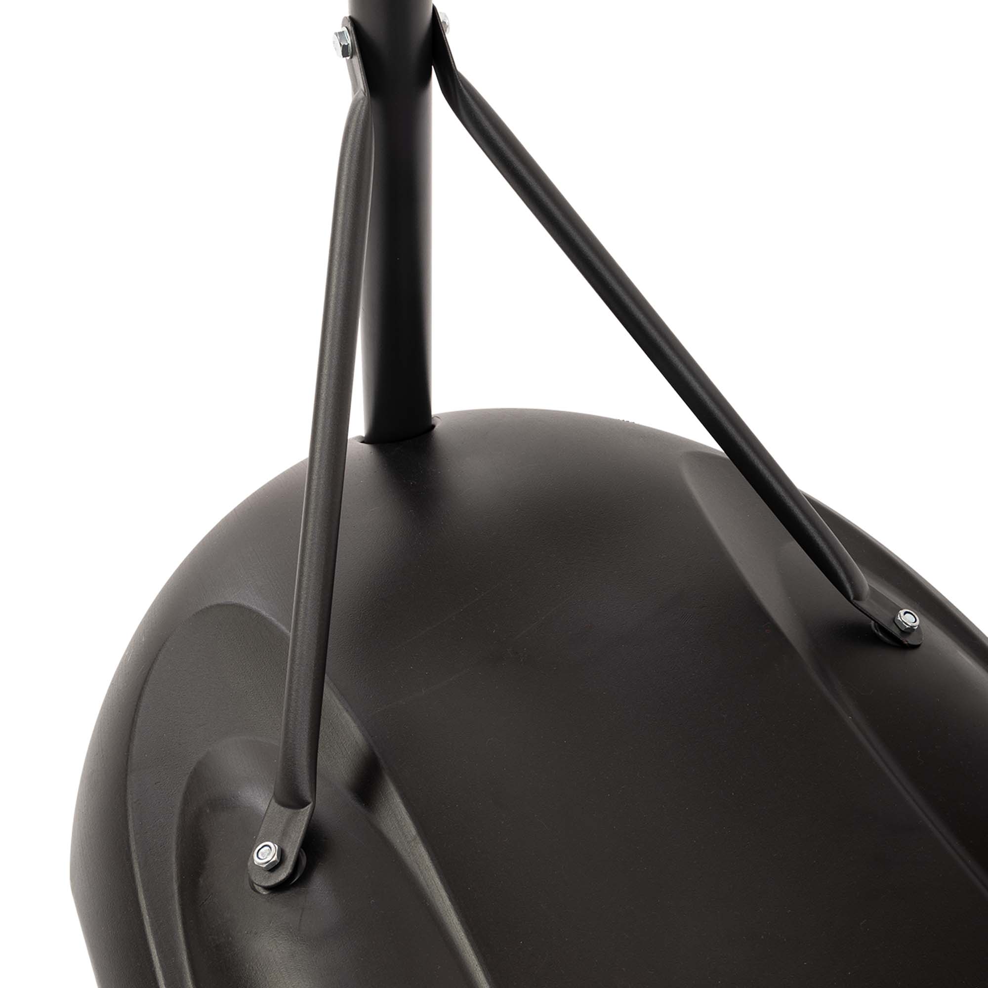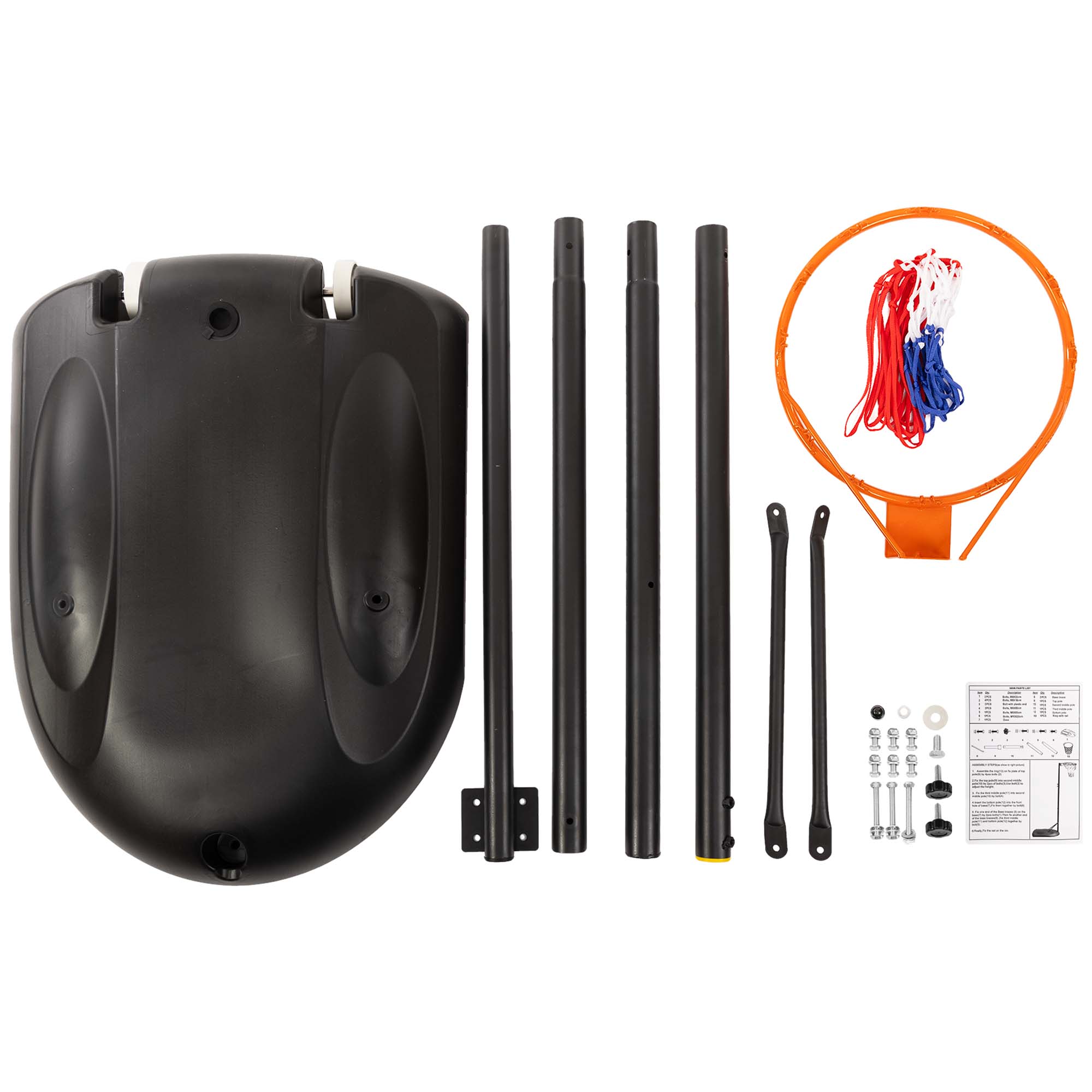 Мобильная стойка для нетбола подойдет для игр и тренировок, может использоваться как взрослыми, так и детьми. Стойка имеет возможность регулировки по высоте в диапазоне от 240 до 305 см. В конструкции предусмотрен винтовой механизм регулировки, который позволяет с небольшим шагом регулировать высоту. Основание изготовлено из формованного полиэтилена и имеет размер 80 см на 56 см. Чтобы конструкция была максимально устойчивой, ее основание можно наполнить песком или водой. Не утяжеленная конструкция имеет вес 9 кг. Стойку можно легко перемещать по площадке благодаря установленным на ее основании колесам. Кольцо изготовлено из металла, как и сама стойка, и имеет диаметр 38 см. Такой диаметр кольца полностью соответствует требованиям правил игры. Кольцо комплектуется сеткой.