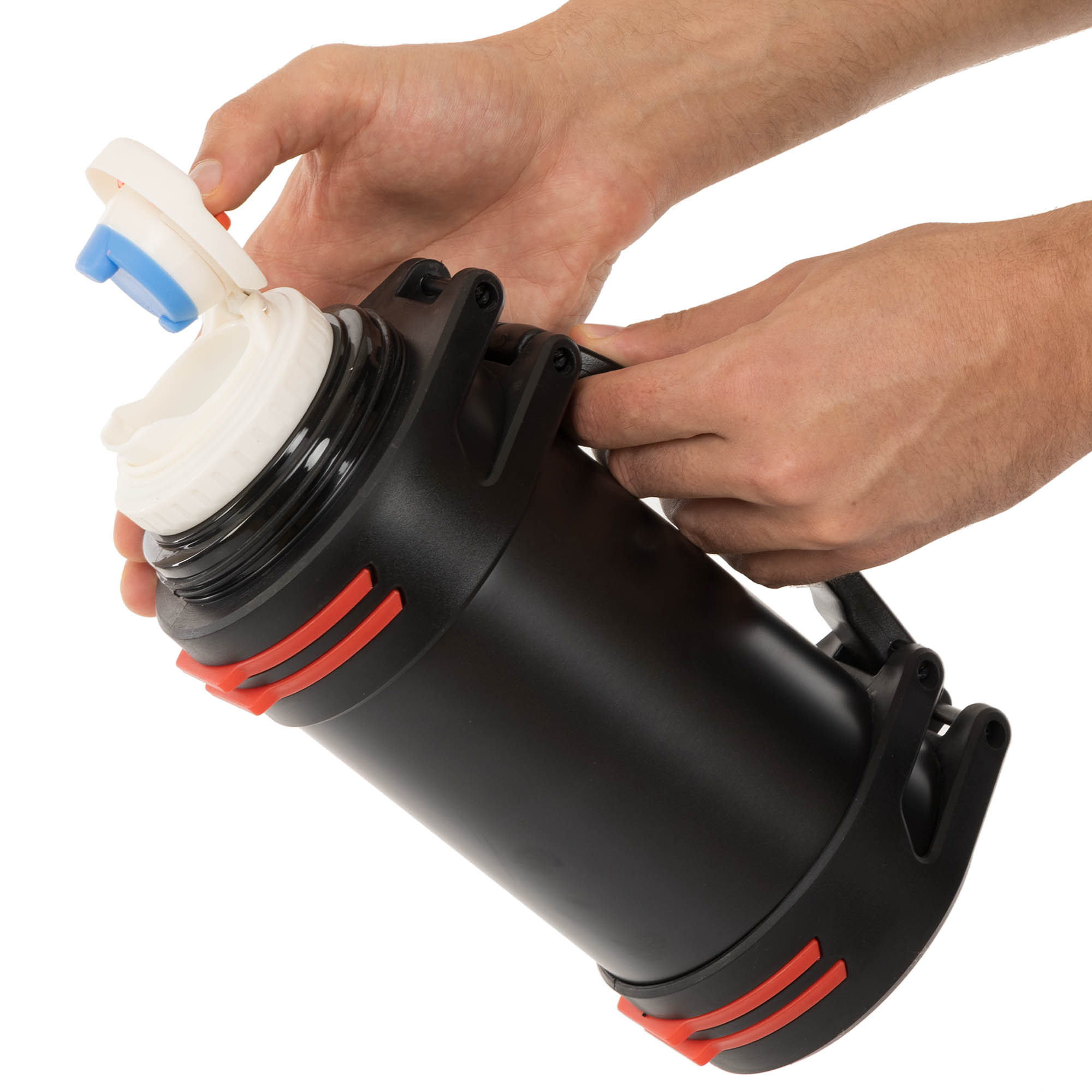 Стильный и надежный термос большого объема может использоваться для хранения холодных и горячих напитков в путешествиях, кемпинге, во время спортивных тренировок и длительных прогулок. Аксессуар понравится спортсменам, занимающимся зимними видами спорта, рыбалкой, охотой и спортивным туризмом.