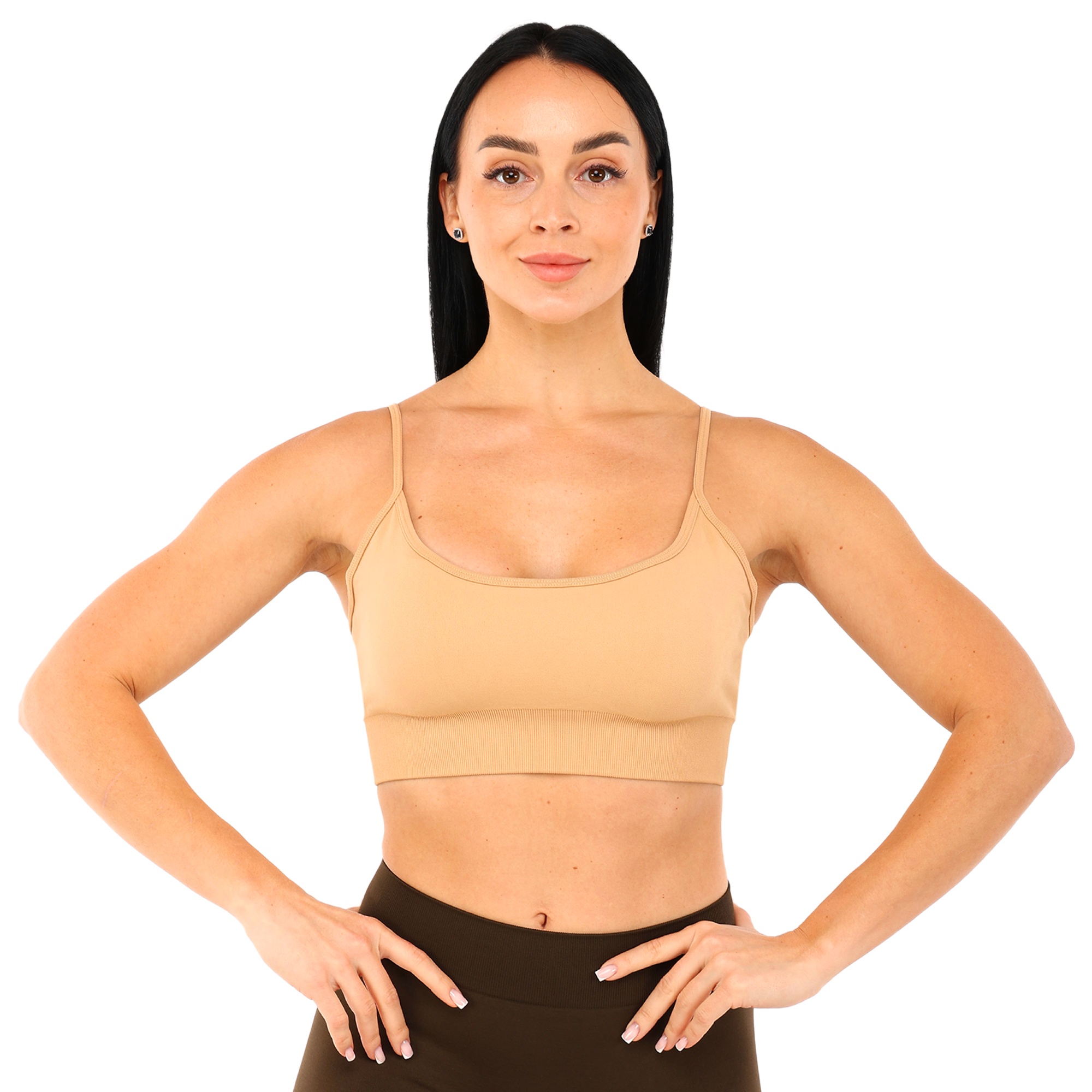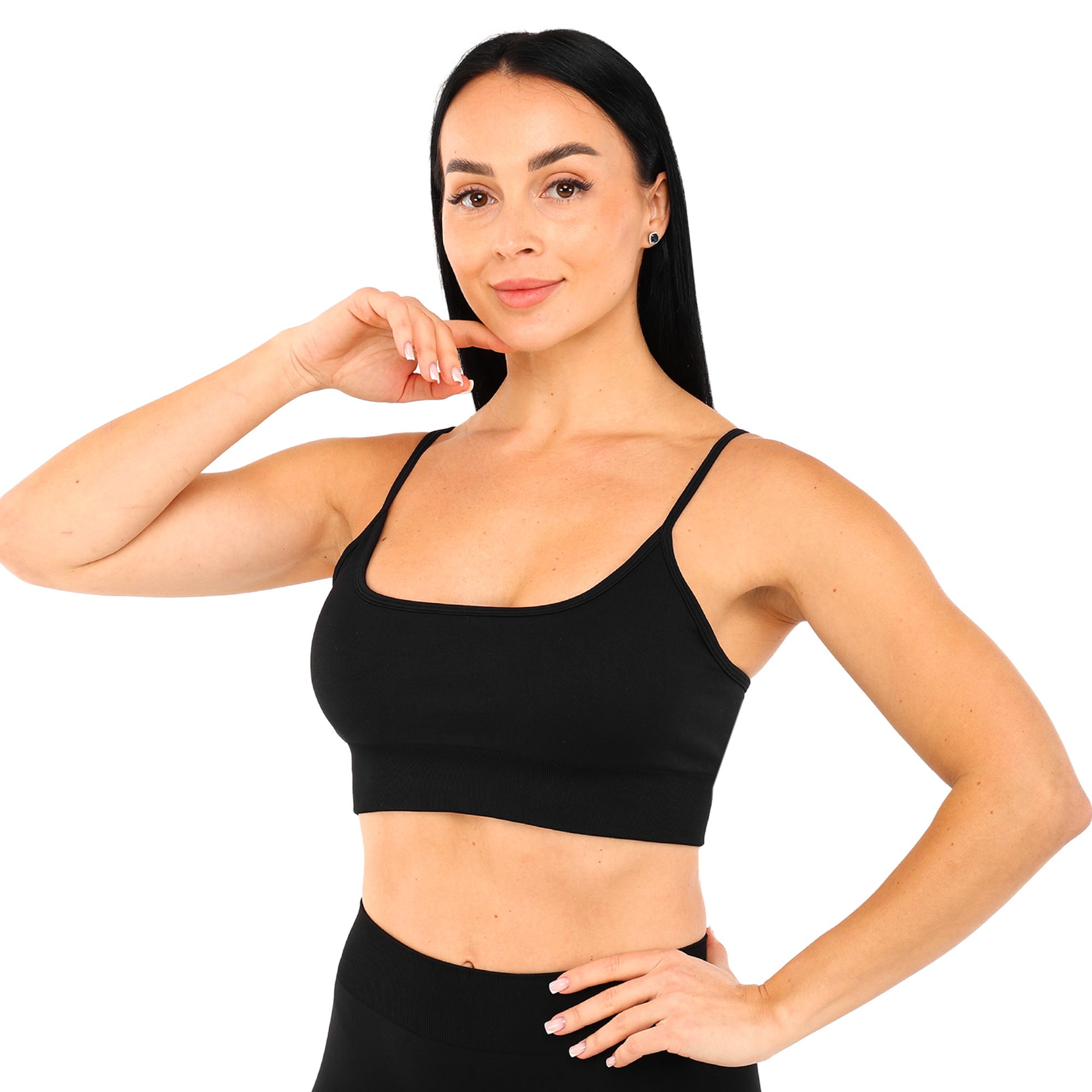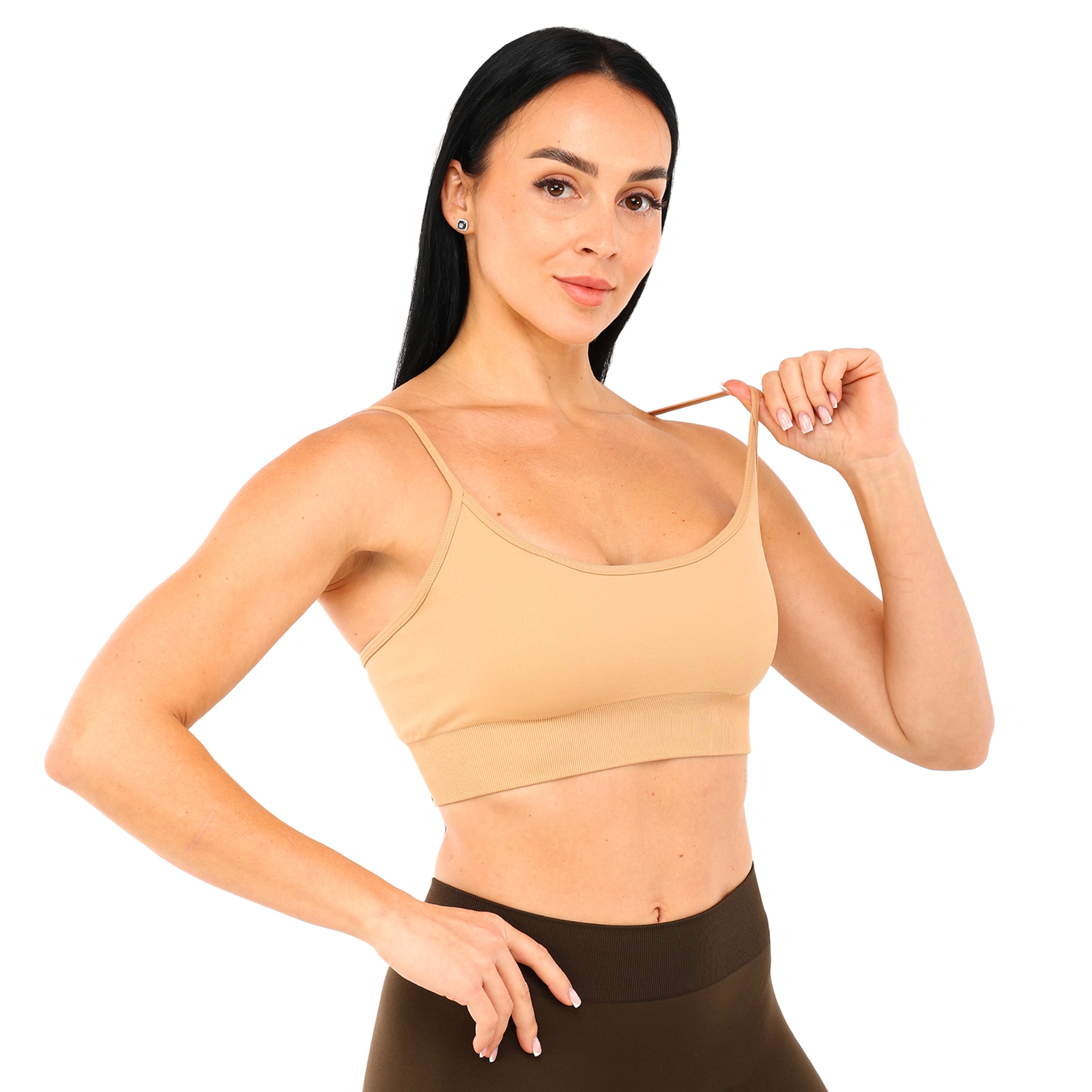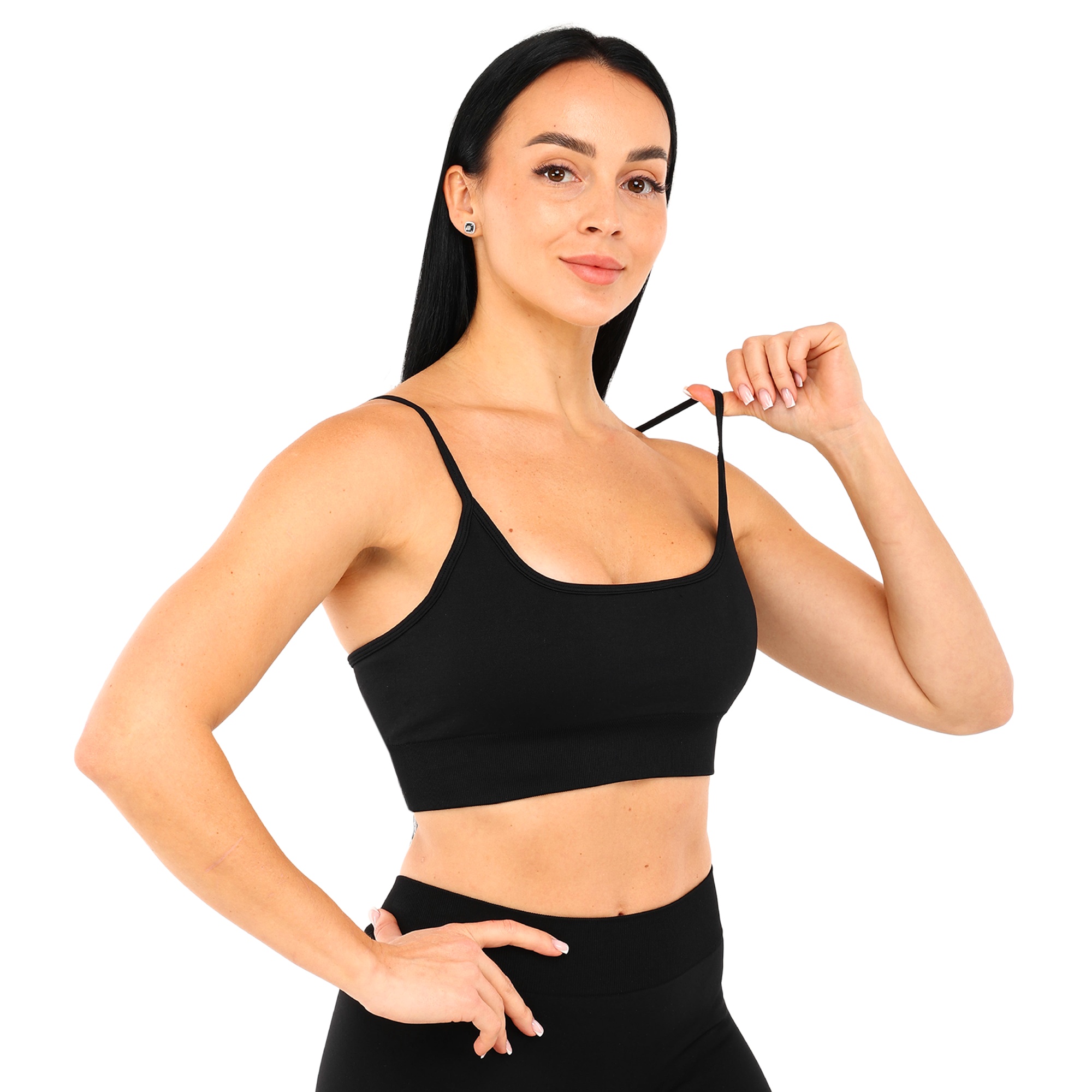 Женский спортивный топ отлично подходит для фитнеса, йоги, пилатеса, спортивных тренировок и активного отдыха. Одежда с хорошей поддержкой придает уверенности и повышает комфорт, а также помогает снизить нагрузку на позвоночник и грудной отдел. Носить топ можно как самостоятельный элемент одежды или надевать его под майку.