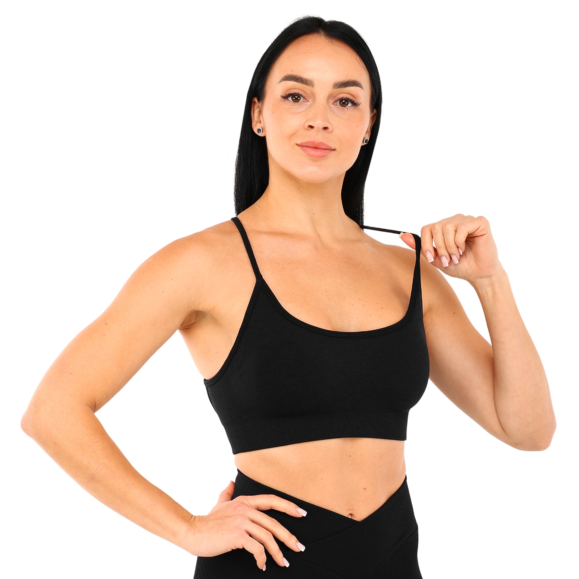 Женский спортивный топ отлично подходит для фитнеса, йоги, пилатеса, спортивных тренировок и активного отдыха. Одежда с хорошей поддержкой придает уверенности и повышает комфорт, а также помогает снизить нагрузку на позвоночник и грудной отдел. Носить топ можно как самостоятельный элемент одежды или надевать его под майку.