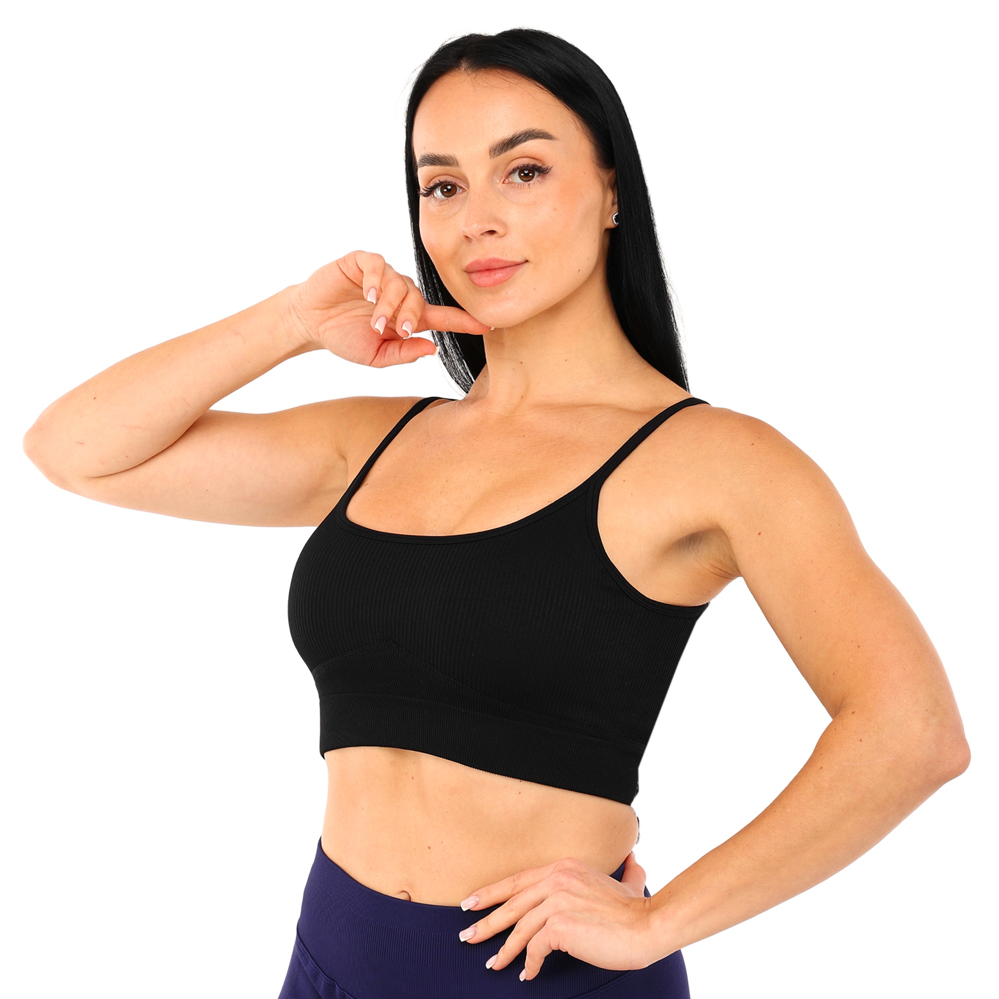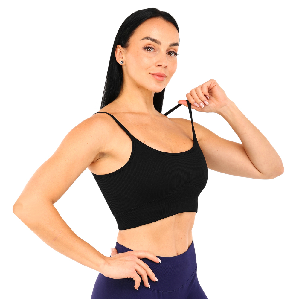 Женский спортивный топ отлично подходит для фитнеса, йоги, пилатеса, спортивных тренировок и активного отдыха. Одежда с хорошей поддержкой придает уверенности и повышает комфорт, а также помогает снизить нагрузку на позвоночник и грудной отдел. Носить топ можно как самостоятельный элемент одежды или надевать его под майку.