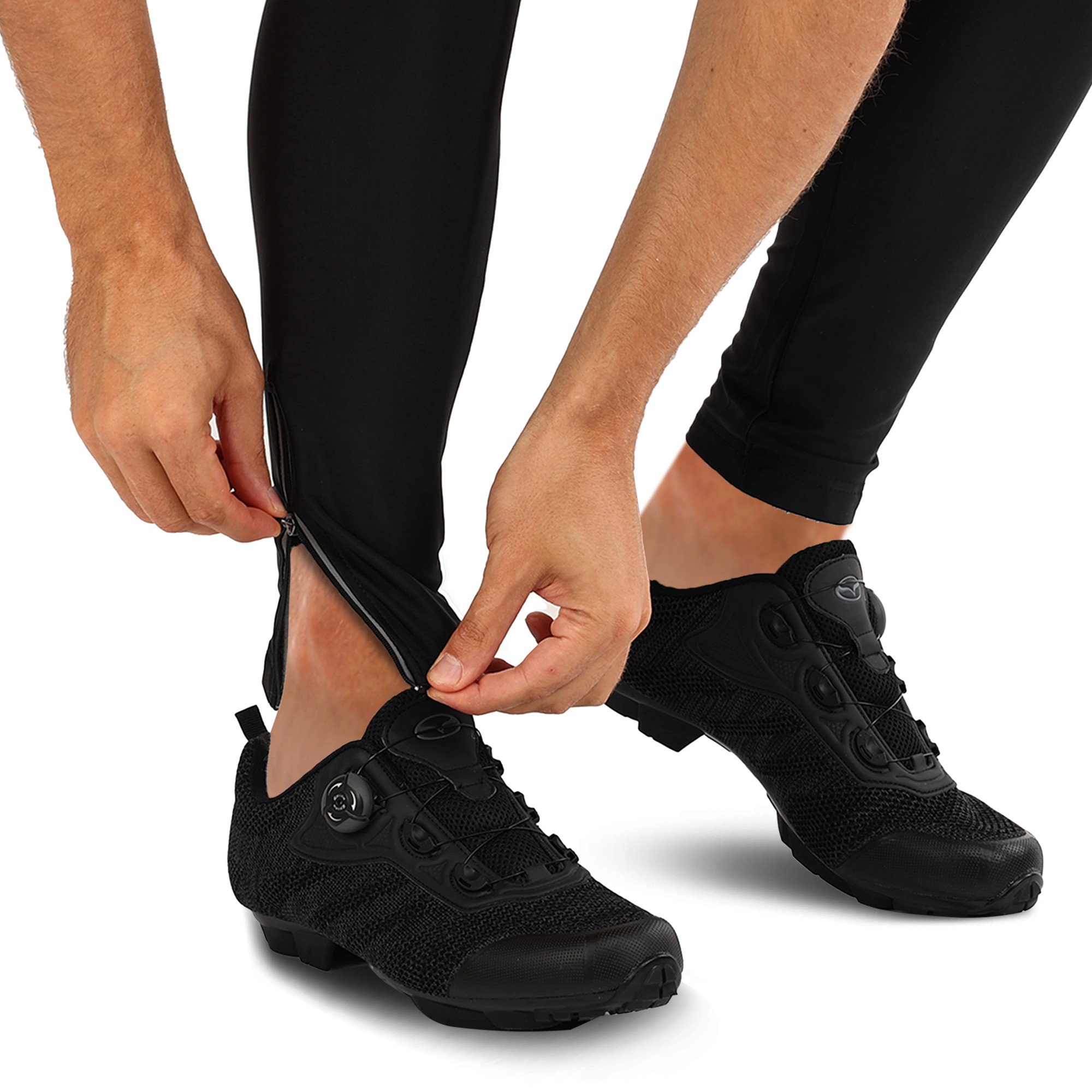 В штанах предусмотрен удобный анатомический памперс для максимального удобства и минимизации трения во время езды. Функциональные молнии внизу штанов позволяют легко одевать и снимать форму, а также регулировать вентиляцию и комфортность подгонки к обуви.