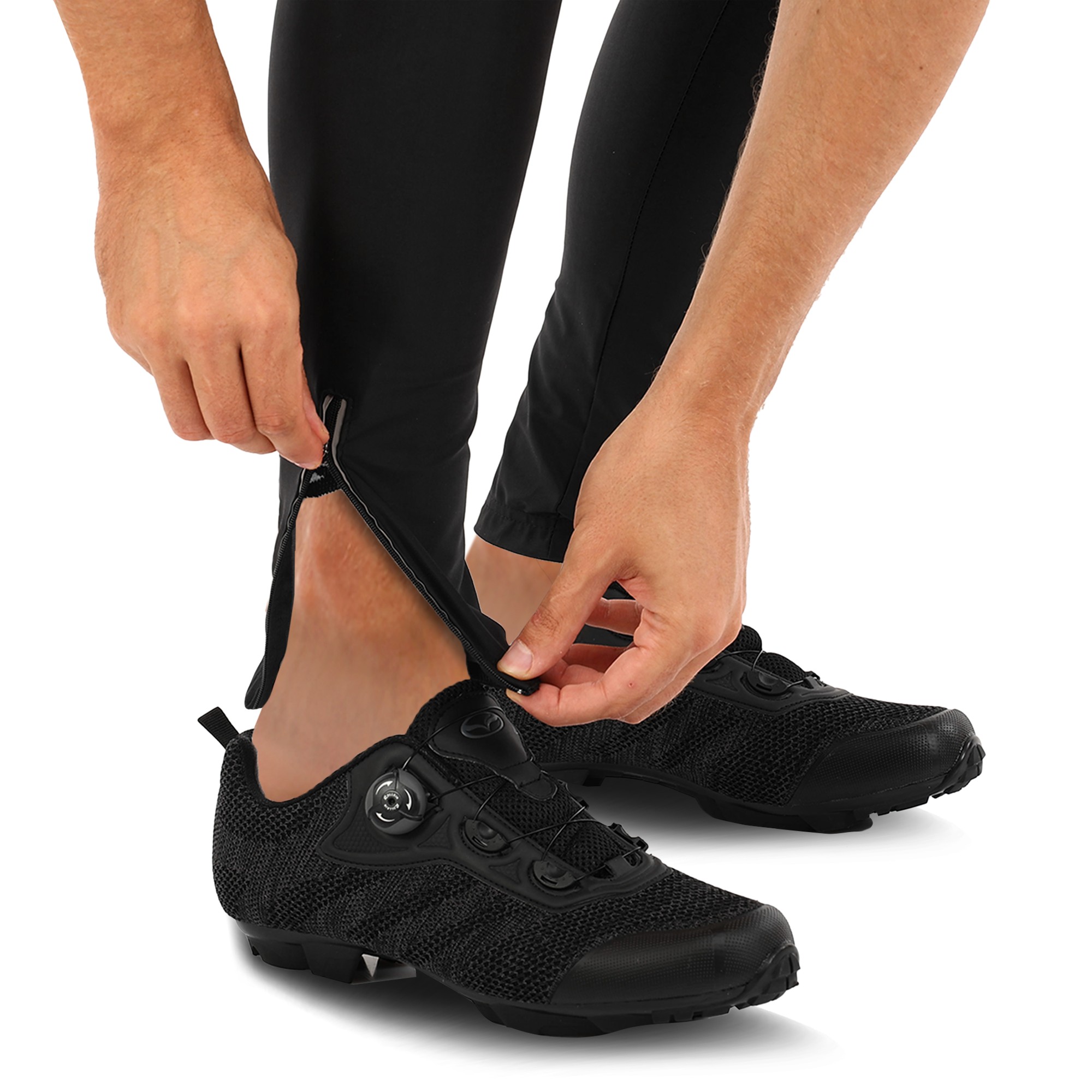 В штанах предусмотрен удобный анатомический памперс для максимального удобства и минимизации трения во время езды. Функциональные молнии внизу штанов позволяют легко одевать и снимать форму, а также регулировать вентиляцию и комфортность подгонки к обуви.