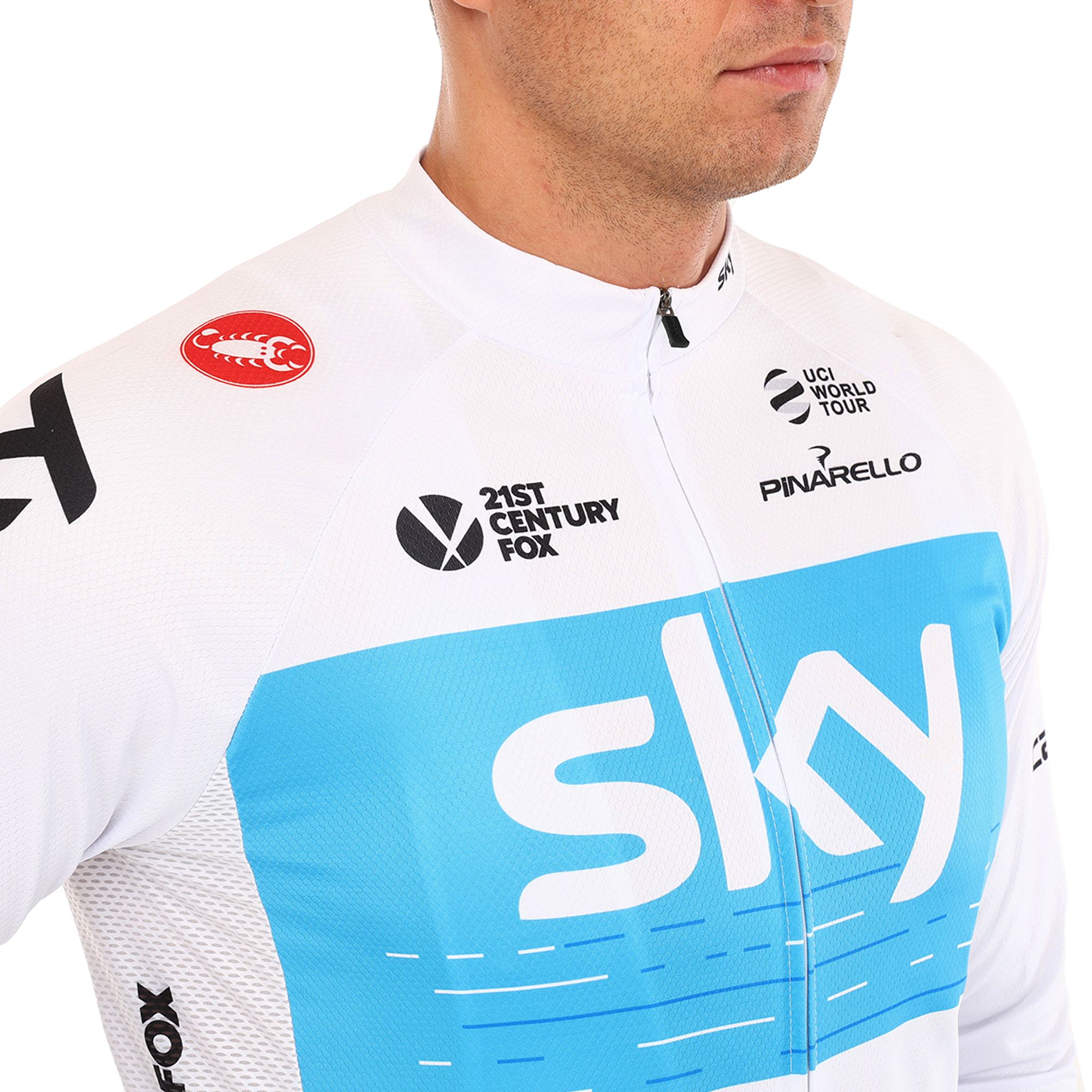 Велоформа демисезонная джерси с длинным рукавом и штаны с лямками SPOINT SKY Y-13 M-3XL белый-черный-голубой