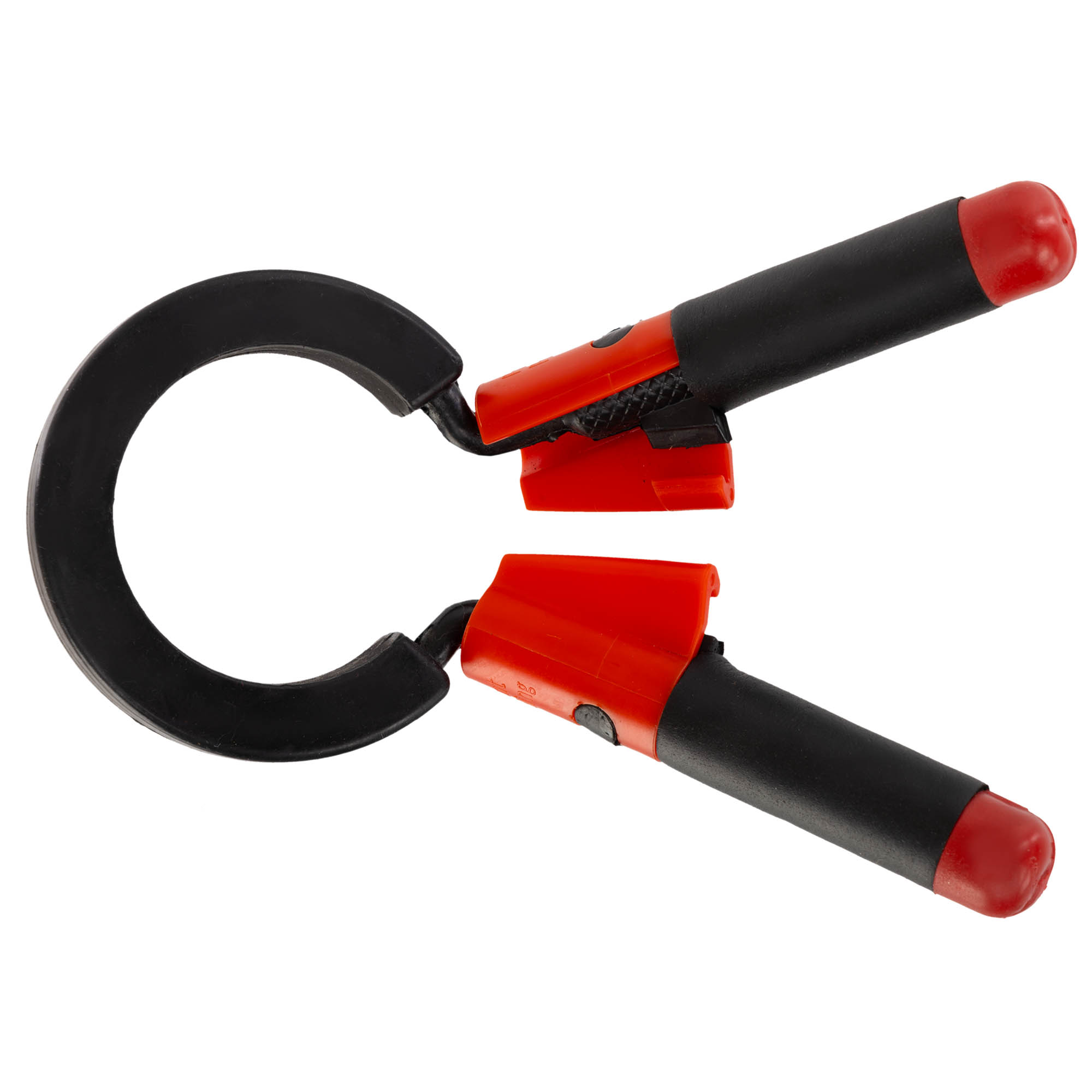 Во время выполнения силовых упражнений со штангой важно использовать качественные замки, которые позволят зафиксировать вес на штанге и безопасно выполнять упражнения. Пружинный замок позволяет быстро выполнить фиксацию груза на штанге. Пружинный замок изготовлен из металла, ручки покрыты пластиком. В комплекте 1 замок диаметром 50 мм. Это позволяет использовать его на олимпийских грифах. Конструкция пружинного замка очень простая, но она обеспечивает быструю и надежную фиксацию дисков на штанге. В металлической конструкции имеется кольцо и две ручки: зажимая ручки, вы увеличиваете диаметр кольца и можете надеть его на штангу. Как только вы отпустите ручки, кольцо сожмётся и уже не сможет соскользнуть с грифа.