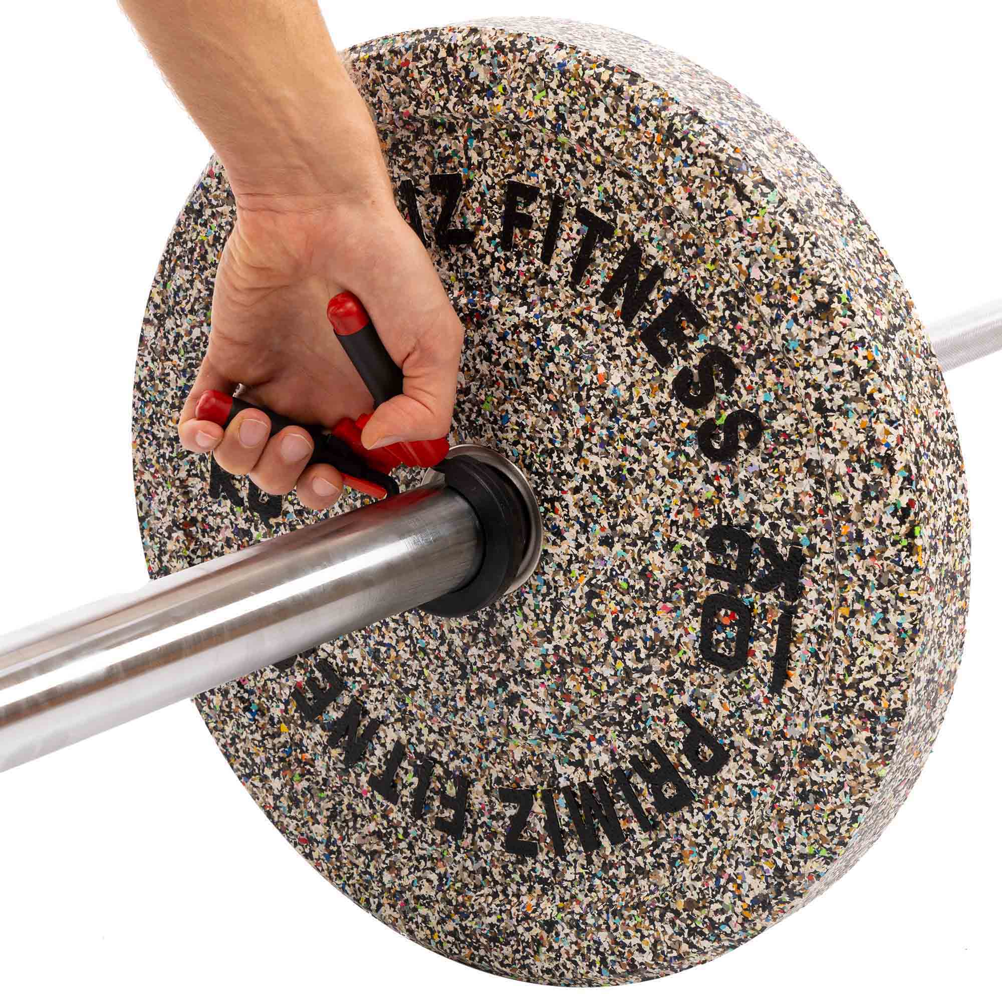 - Фиксация блинов на грифе, предотвращает соскальзывание во время упражнений и обеспечивает безопасность при тренировках