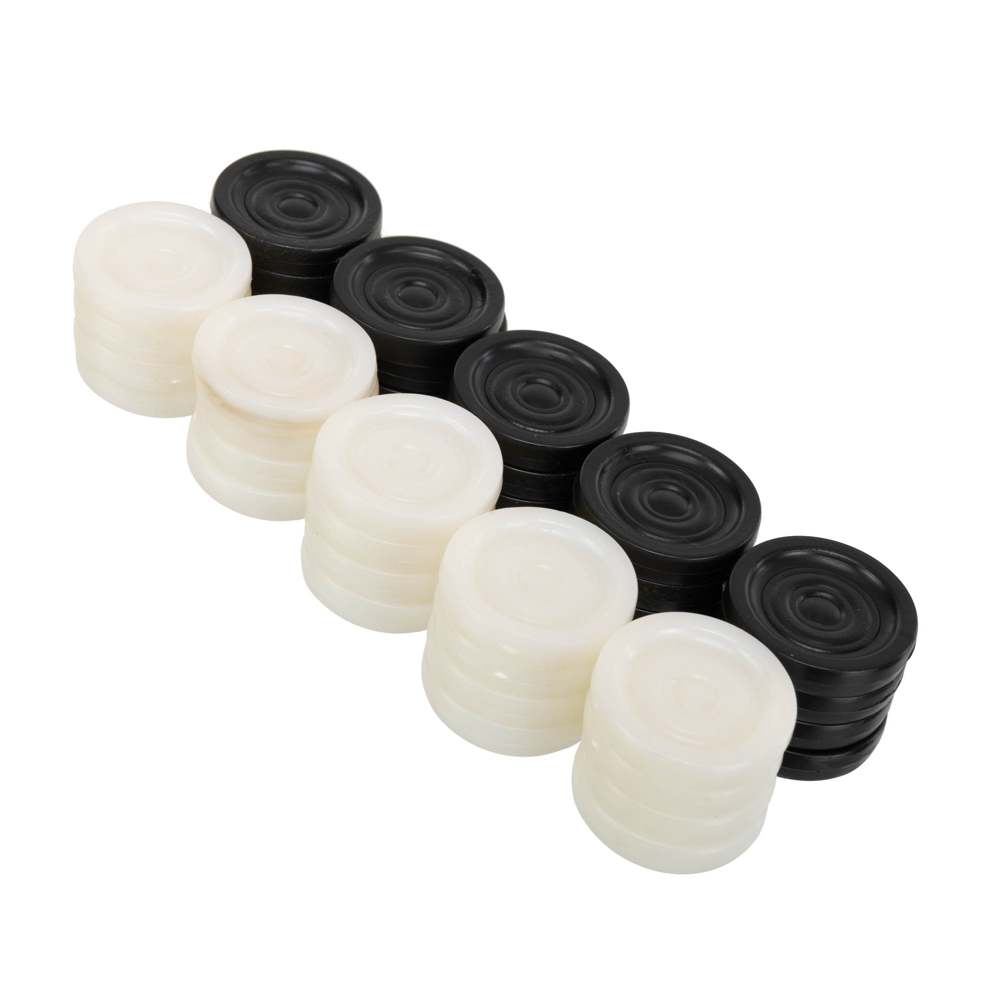Игра делает процесс игры в шашки максимально удобным и приятным. Фигурки выполнены из пластика в классическом стиле и имеют правильную форму утолщенного диска, что обеспечивает их удобство при взятии и перемещении по доске. Каждая фишка откалибрована по размеру (имеет диаметр 3,2 см), поэтому игровой процесс проходит без помех и с полной концентрацией на стратегии.Игровое поле выполнено из мягкого, но прочного винила, что позволяет использовать его не только дома, но и в поездках или на отдыхе. Мягкая поверхность предотвращает скольжение фишек и обеспечивает комфорт во время игры.
