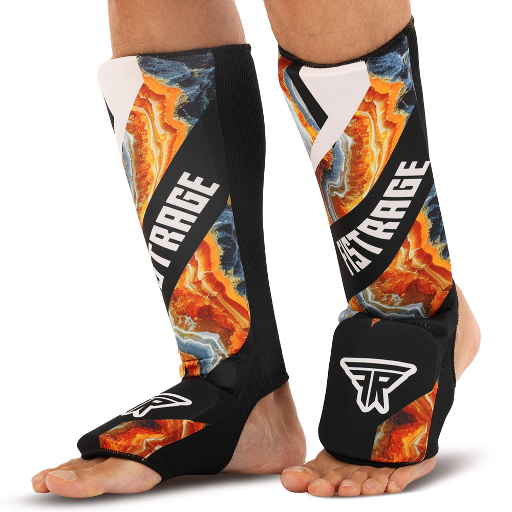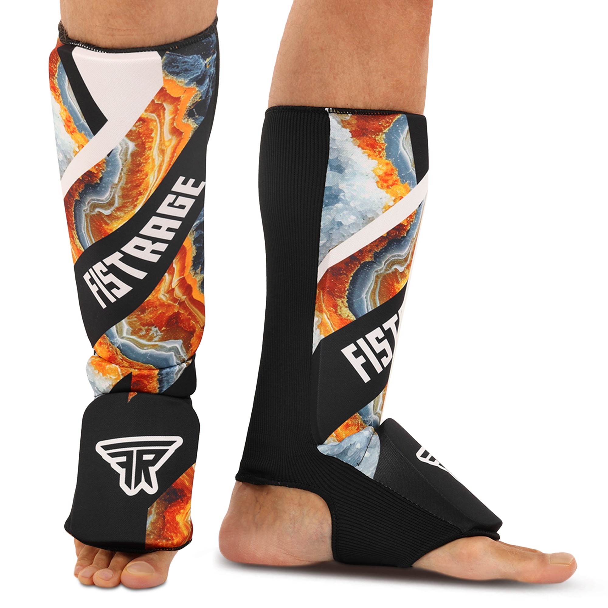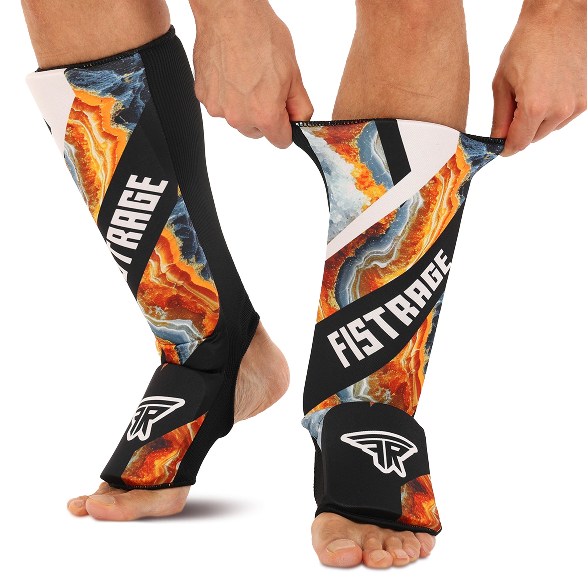 Чтобы во время тренировки по единоборствам получить максимальную защиту стопы и голени и при этом сохранить свободу движений, стоит использовать качественную защиту чулочного типа от бренда FISTRAGE. Защита чулочного типа плотно облегает ногу, обеспечивая надёжную фиксацию экипировки. Чулок препятствует смещению вкладыша во время активных движений. Защита изготовлена из полиэстера и эластана, синтетические ткани не препятствуют естественному воздухообмену и охлаждению ног. Внутри содержится наполнитель, который представляет собой литой вкладыш. Он амортизирует ударную нагрузку и позволяет защитить голень и стопу от последствий ударов.