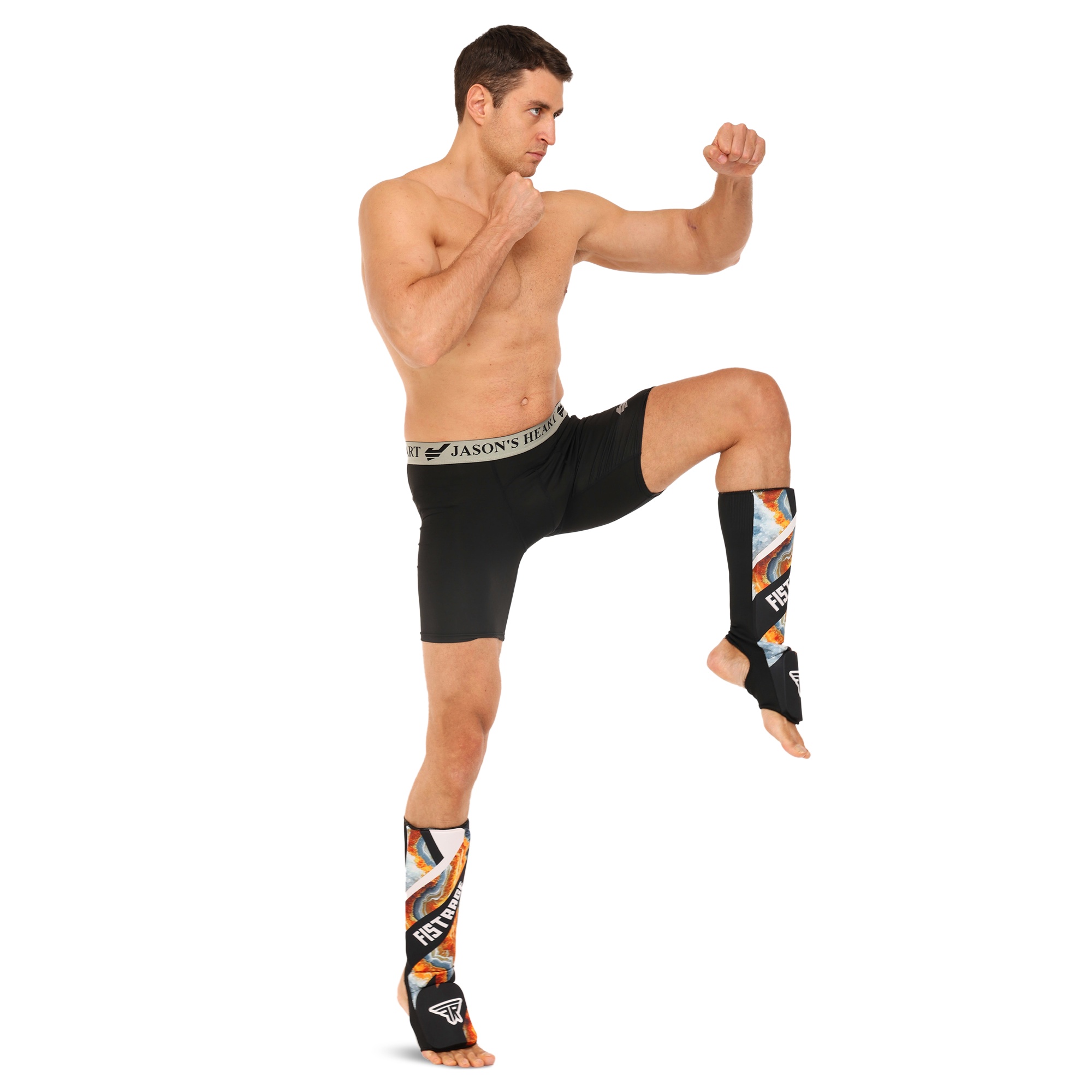 Защита голени и стопы для единоборств чулочного типа FISTRAGE VL-7924 S-XL черный-оранжевый Код VL-7924