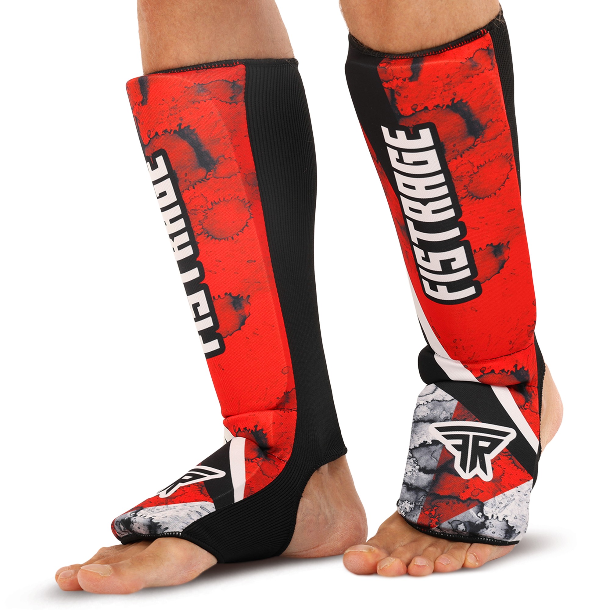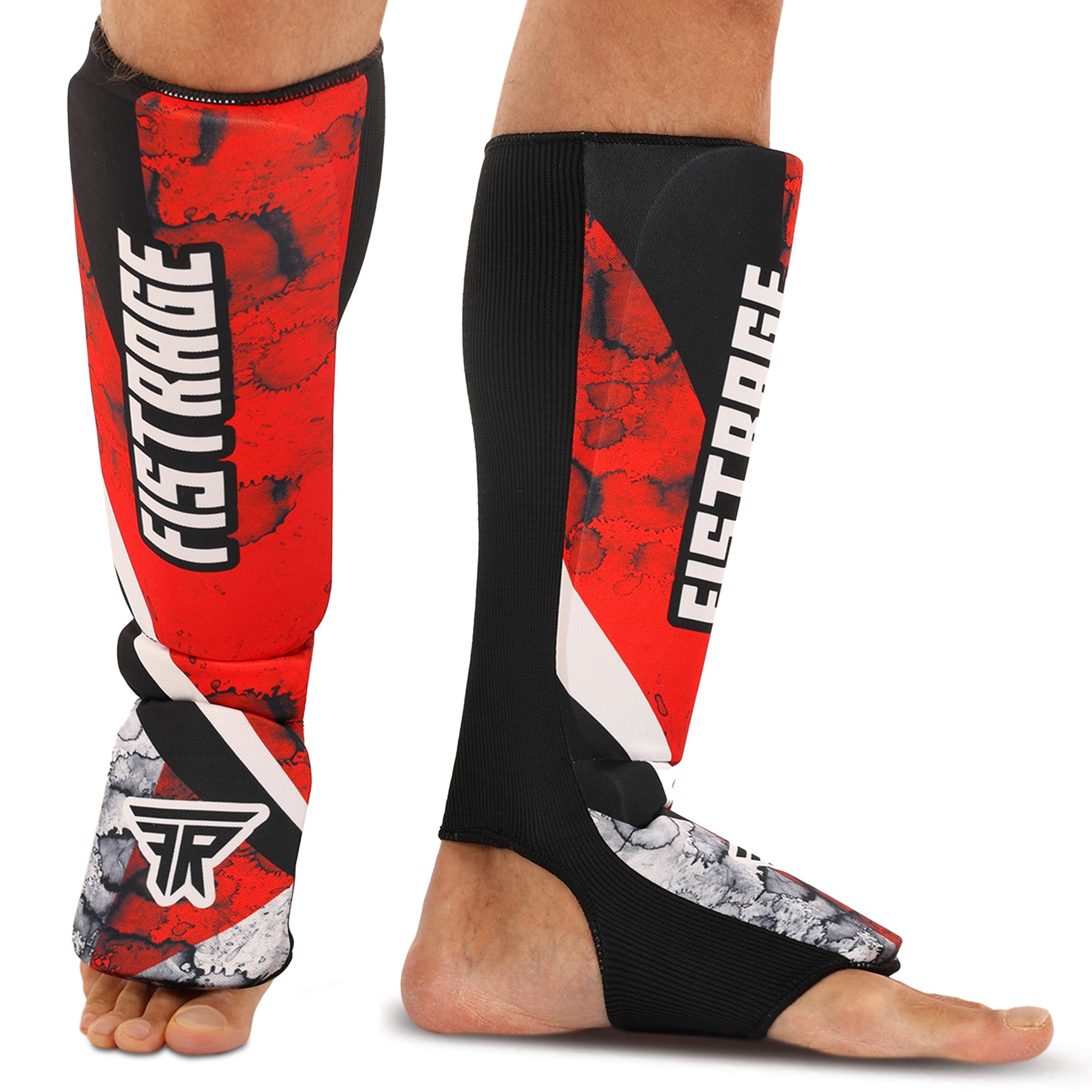 Защита голени и стопы для единоборств чулочного типа FISTRAGE VL-7925 S-XL красный-черный Код VL-7925