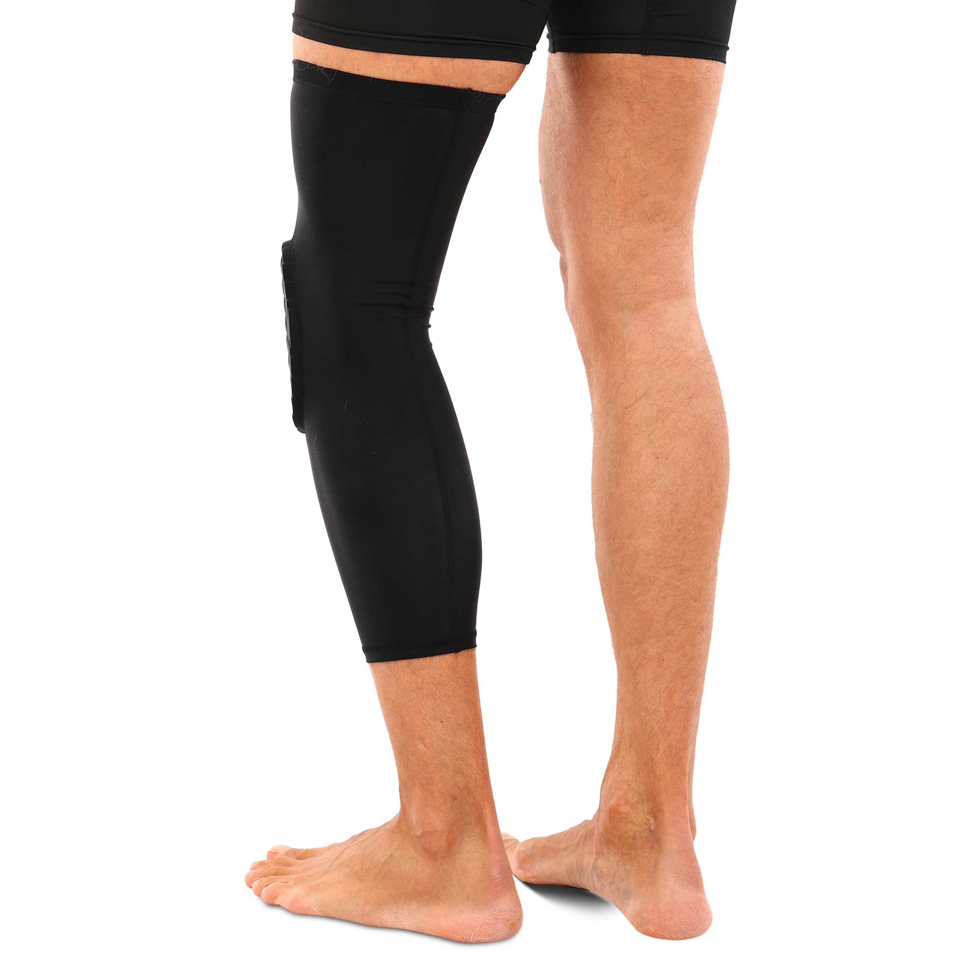 Компресійний наколінник слугує не тільки надійним захистом під час падінь, він відмінно підтримує суглоб, зв'язки та м'язи, що його оточують. На нозі екіпірування фіксується завдяки компресійним властивостям тканини. Накладка на колінній чашечці в разі падіння пом'якшить удар.