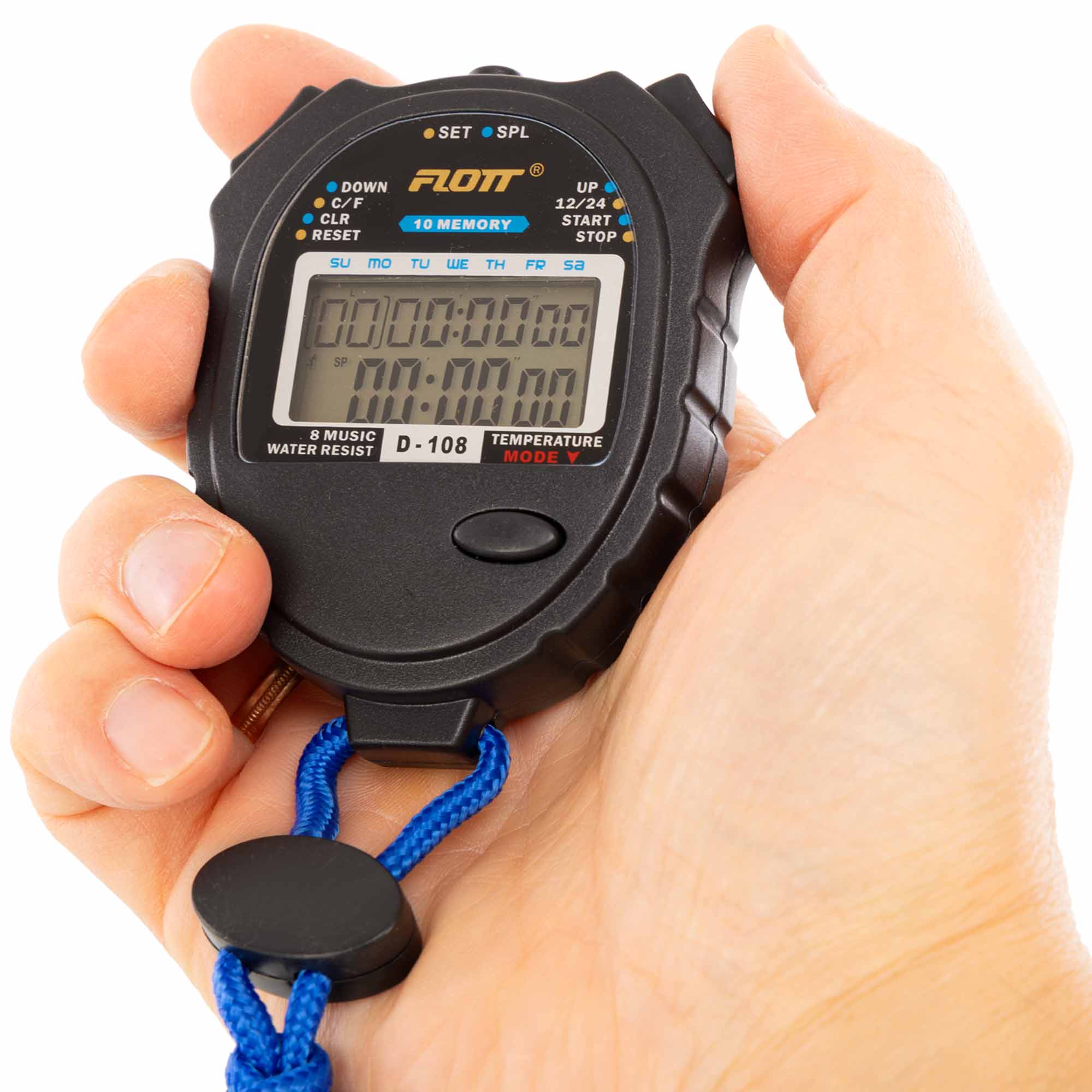 Прихильникам точного контролю, учням і високоорганізованим тренерам FLOTT F-108 запропонує все необхідне: 10 записів пам’яті, універсальні функції годинника та таймера, надійний корпус і легендарну німецьку точність. Цей пристрій полегшить організацію тренувань, заощадить час і дозволить зосередитися на головному — результаті.