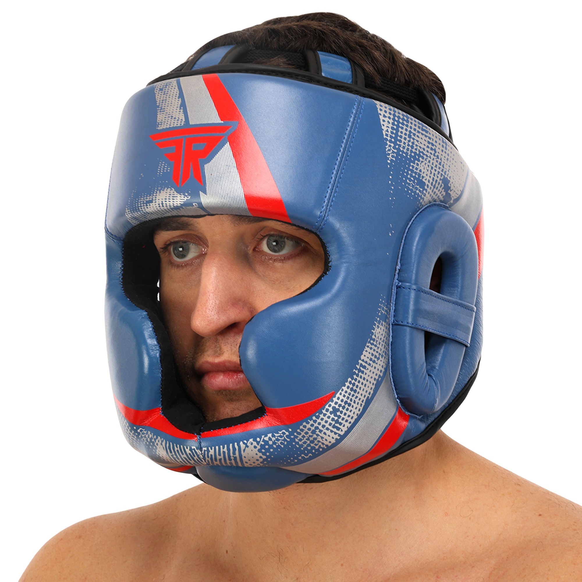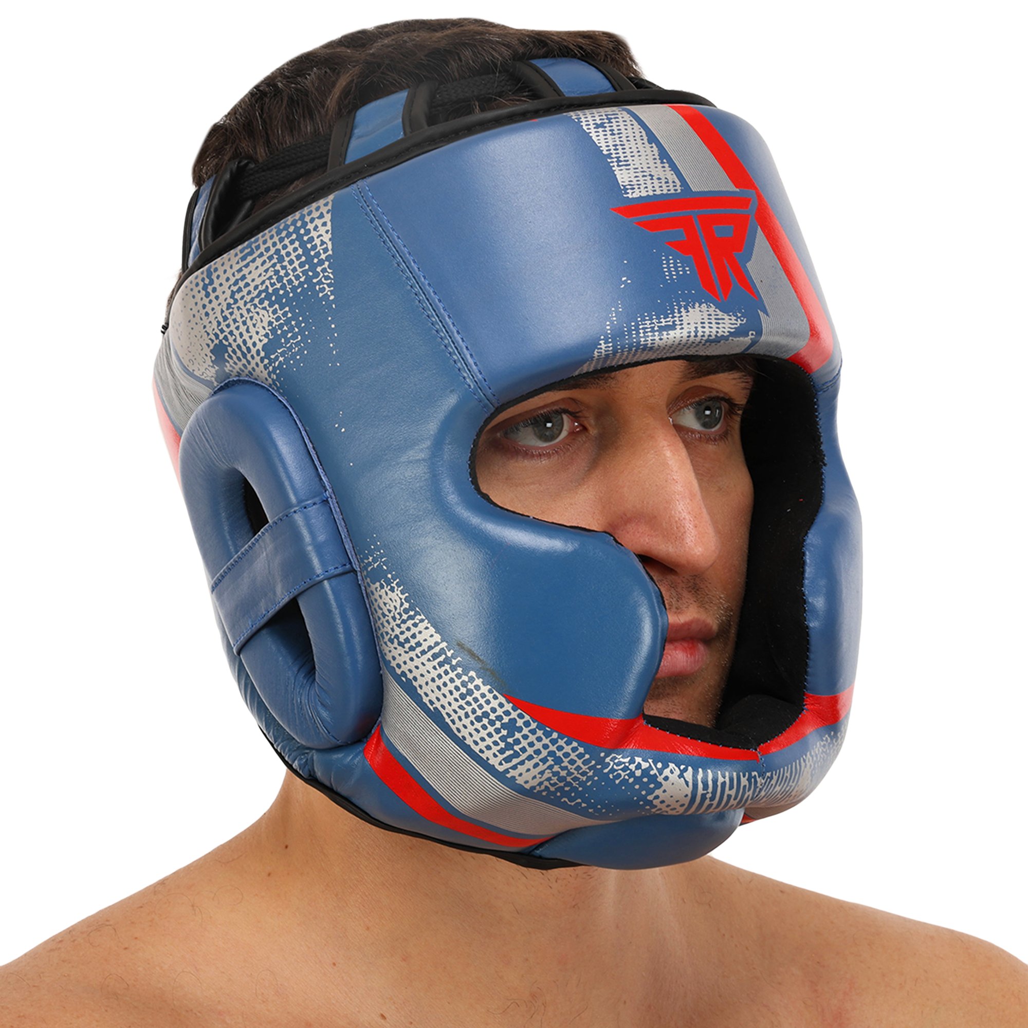 Шолом боксерський з повним захистом шкіряний FISTRAGE VL-7810 S-XL синій Код VL-7810