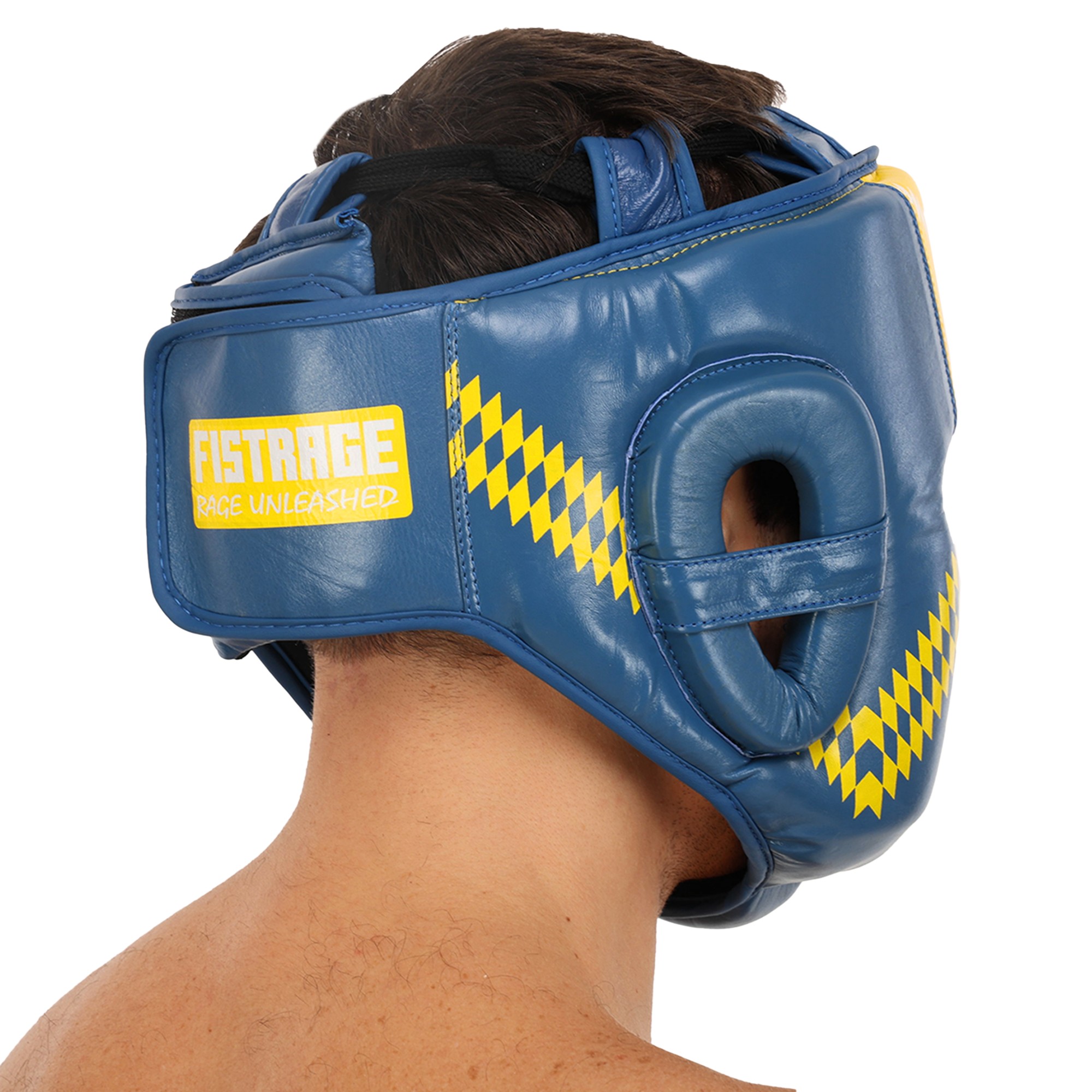 Закритий боксерський шолом від популярного бренду FISTRAGE забезпечує максимальний захист під час тренувальних спарингів і змагань. Такий шолом підійде дорослим і дітям. Шолом виготовлений з натуральної шкіри і містить спеціальний наповнювач, який амортизує і гасить силу удару. Це дозволяє зменшити ймовірність серйозних травм навіть у випадку, якщо спортсмен пропустить удар. Шолом при цьому має невелику вагу. Конструкція закритого шолома передбачає наявність захисту для чола, скронь, вушних раковин, підборіддя і носа. Попри максимальний рівень захисту в такому шоломі, спортсмен отримує досить хороший огляд і можливість чути завдяки отворам в області слухового проходу.
