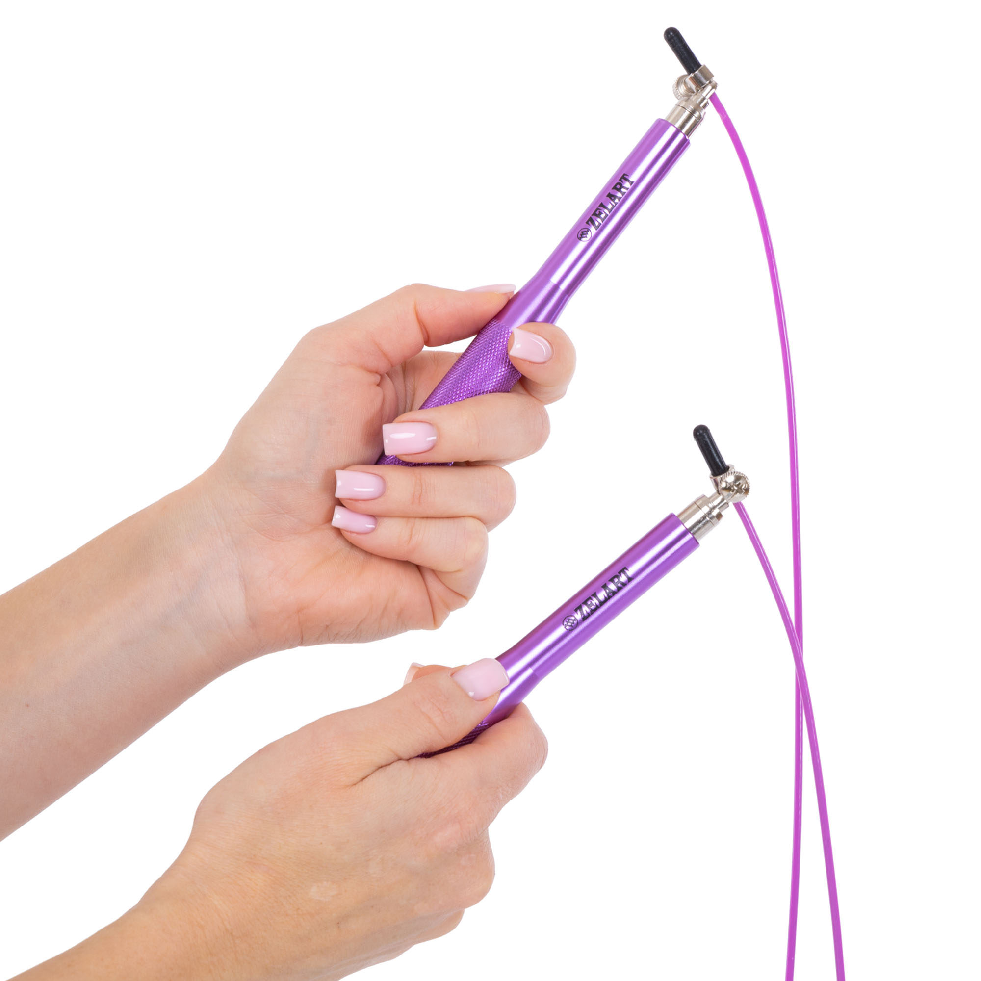 Металеві ручки скакалки мають насічки на поверхні, які дають змогу значно поліпшити зчеплення з руками. Вони легкі, але міцні. У ручки встановлені підшипники, які забезпечують легке і безперешкодне обертання троса. Ви зможете розвивати високу швидкість і виконувати дуже інтенсивні тренування з цією скакалкою.