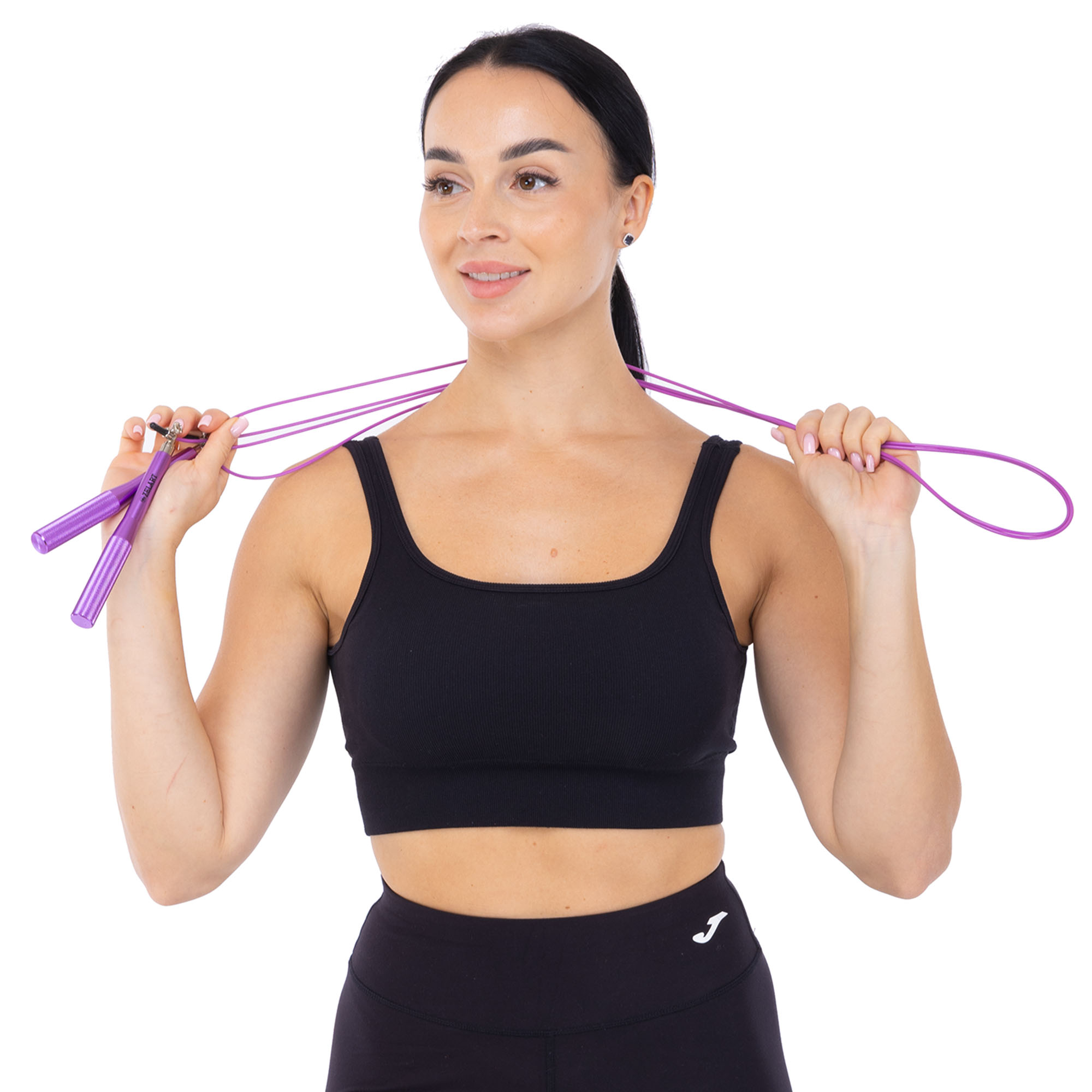 Швидкісна скакалка з тросом довжиною 2,8 м підійде для дорослих. Можливість регулювання по довжині дасть змогу її використовувати дітям. Скакалка використовується під час тренувань із боксу, єдиноборств, футболу, кросфіту та фітнесу. Це ефективний інструмент для розвитку витривалості, тренування швидкості та координації рухів.