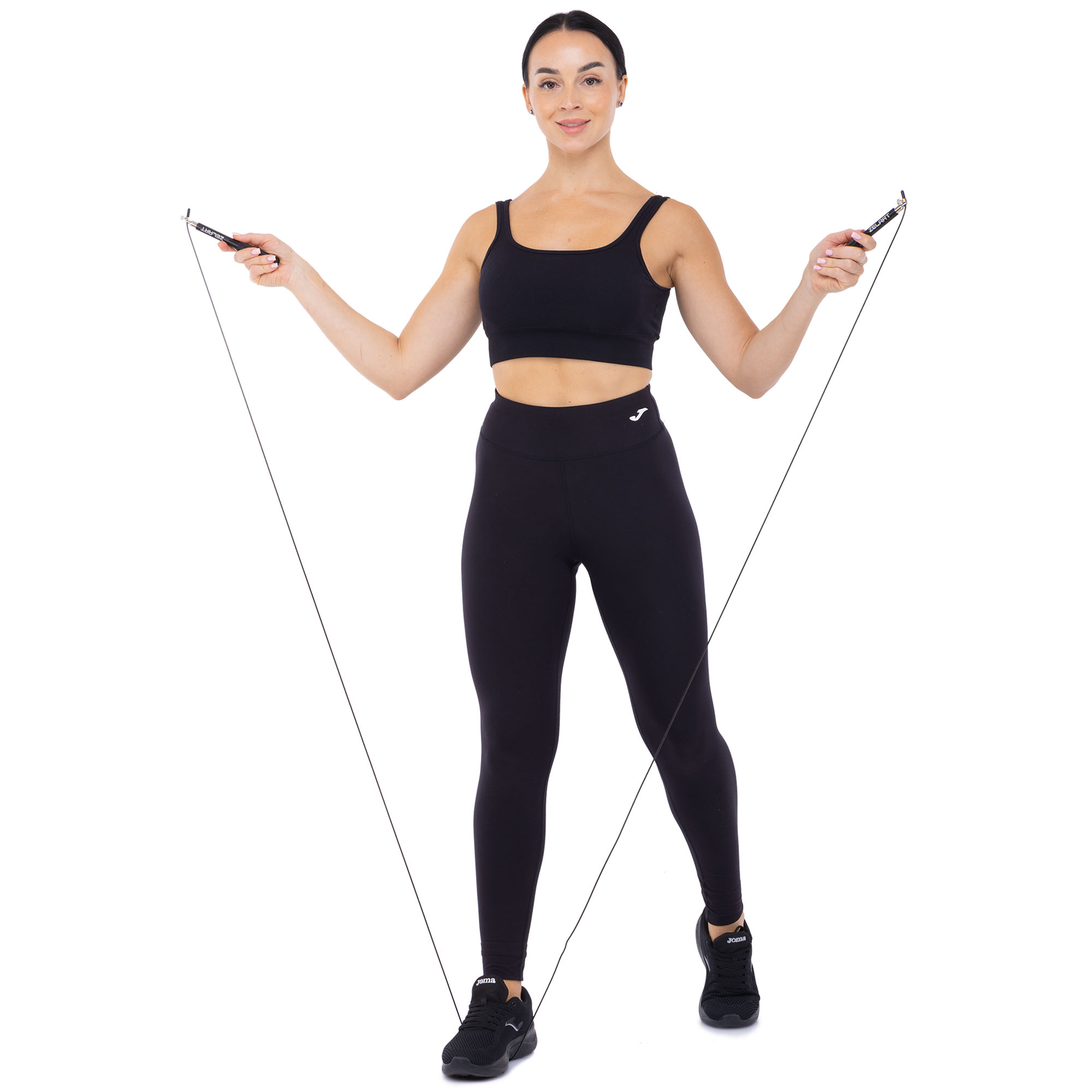 Діаметр джгута скакалки становить 2,5 мм. А його довжина - 3 м. Це максимально можлива довжина скакалки. Зменшити її дасть змогу пара гвинтів, розташованих по краях джгута. Джгут виконаний з металу і покритий обплетенням.