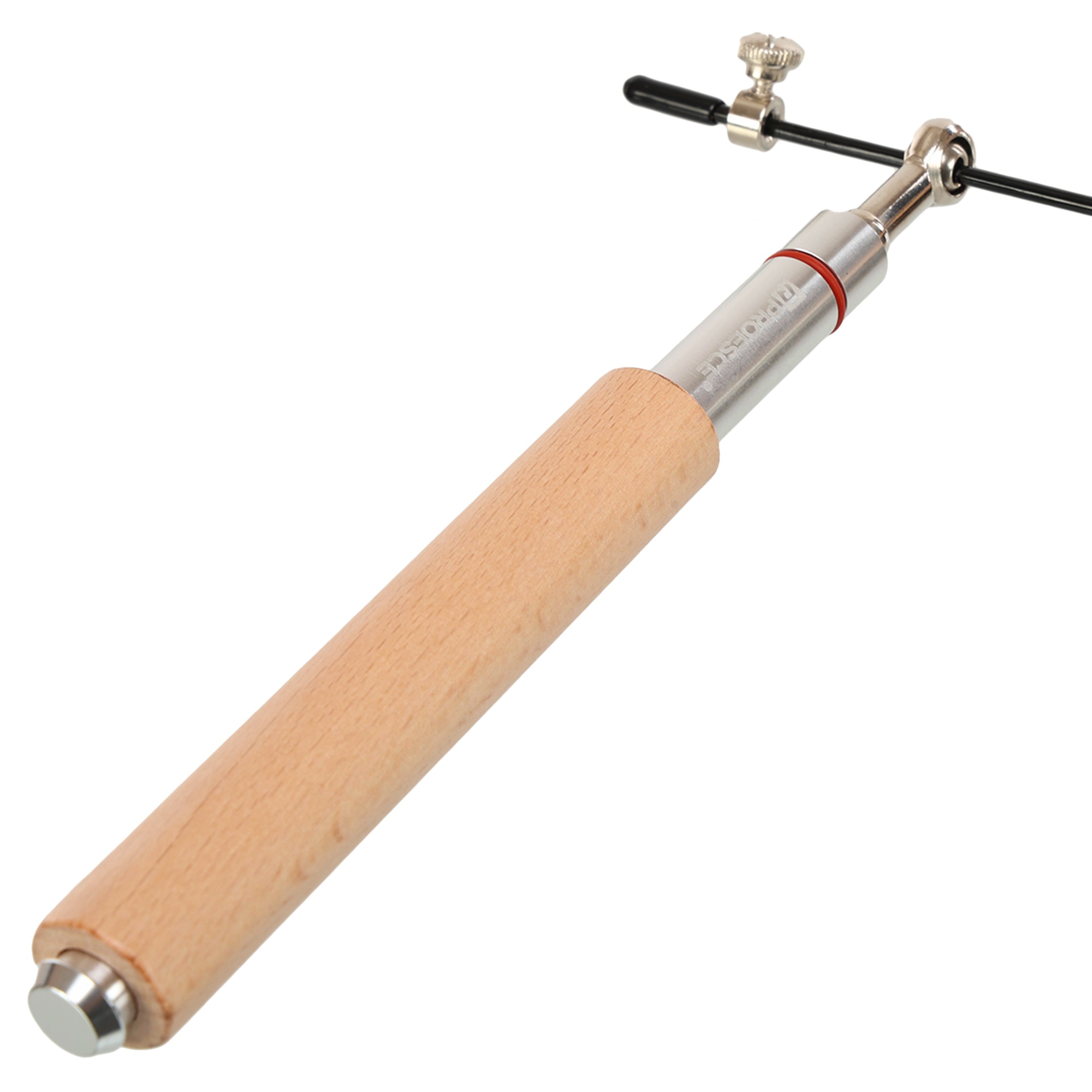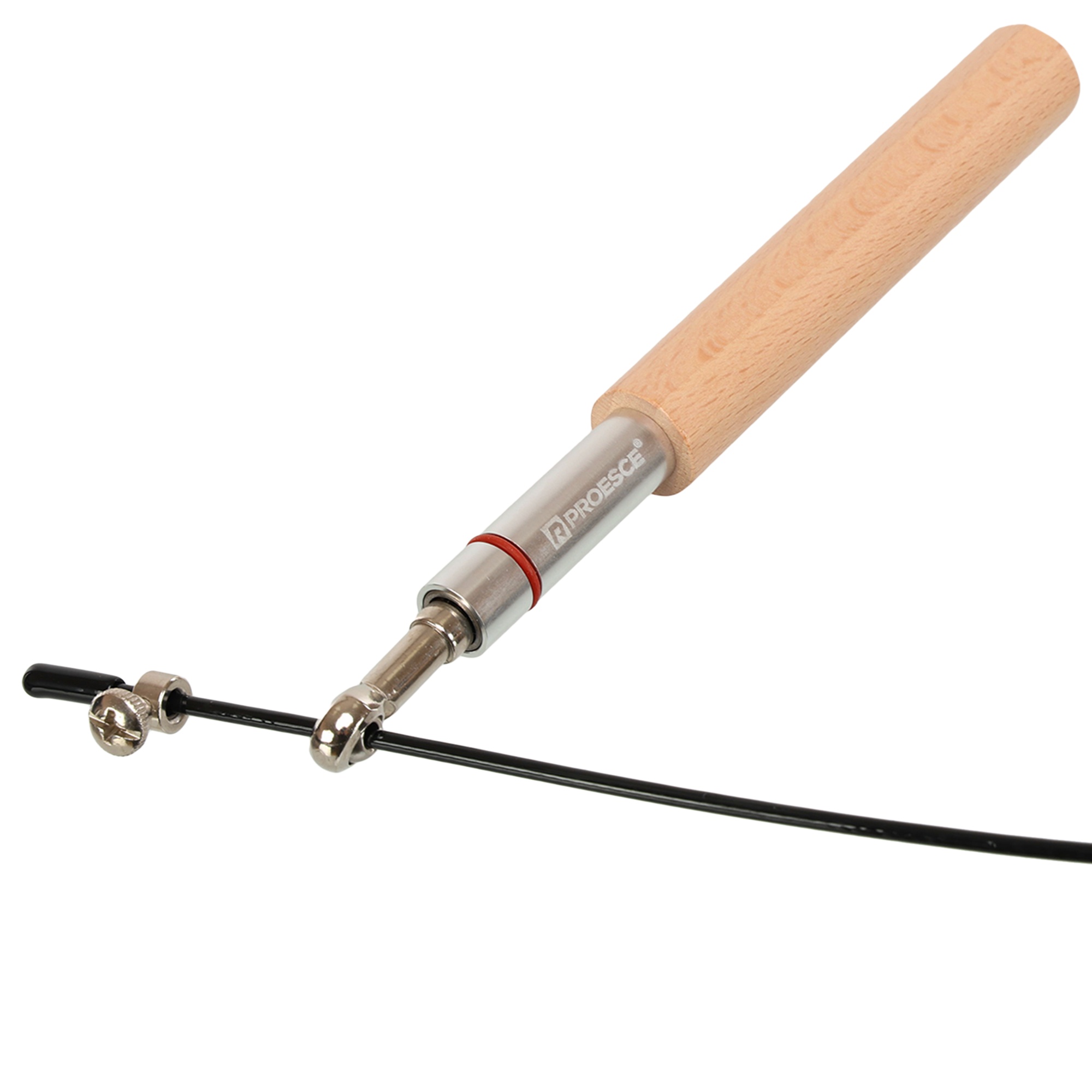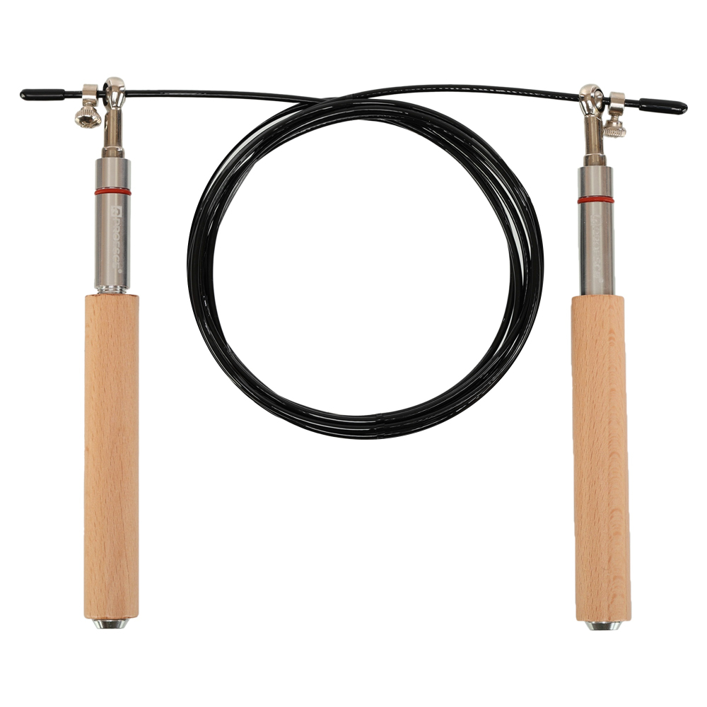 PROESCE FI-4874 - компактна і легка скакалка для швидкісних стрибків. Дана скакалка має вбудовані підшипники, які дозволяють швидко обертати джгут. Він не плутається навколо ручок. Ручки скакалки виконані з деревини, а джгут - з міцного і легкого полівінілхлориду.
