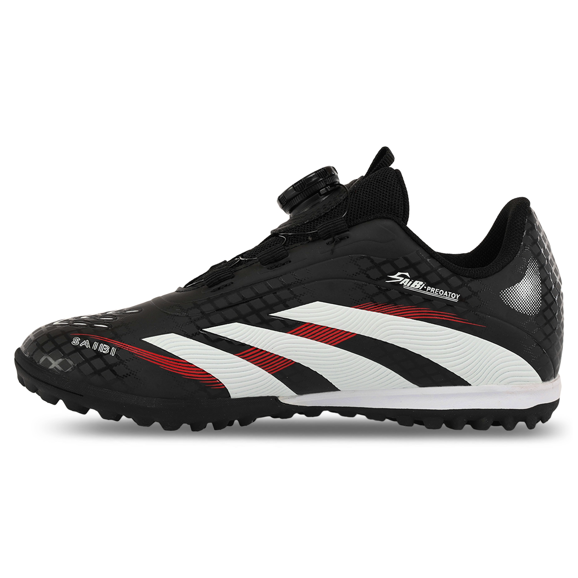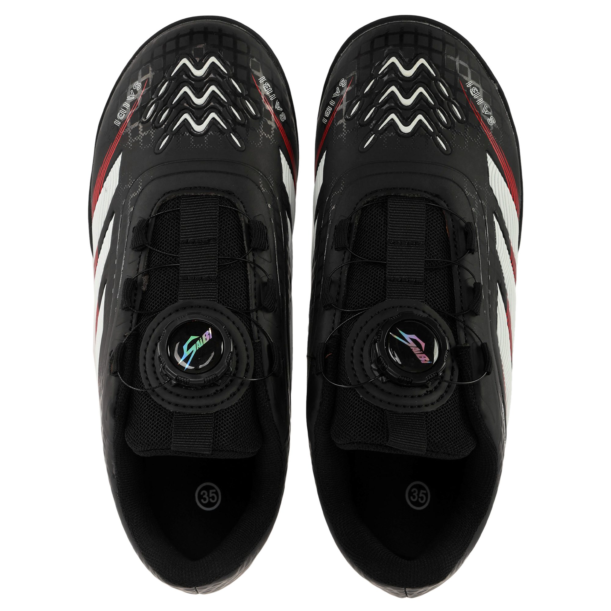 Футбольні сороконіжки SP-Sport 3550S-1 оснащені дисковою системою шнурівки BOA-type, яка дозволяє з високою точністю відрегулювати посадку взуття і домогтися максимального комфорту під час тренувань. Сороконіжки виконані з високоякісних матеріалів і підходять для тренувань різної інтенсивності. Щоб забезпечити зручну посадку і оптимальний контроль м'яча, виробник використовував для виготовлення верху взуття поліуретан. Взуття сидить як влита, не обтяжує ноги. Підошва виготовлена з гуми, має безліч невеликих шипів, які розташовані особливим чином і сприяють хорошому зчепленню з покриттям.